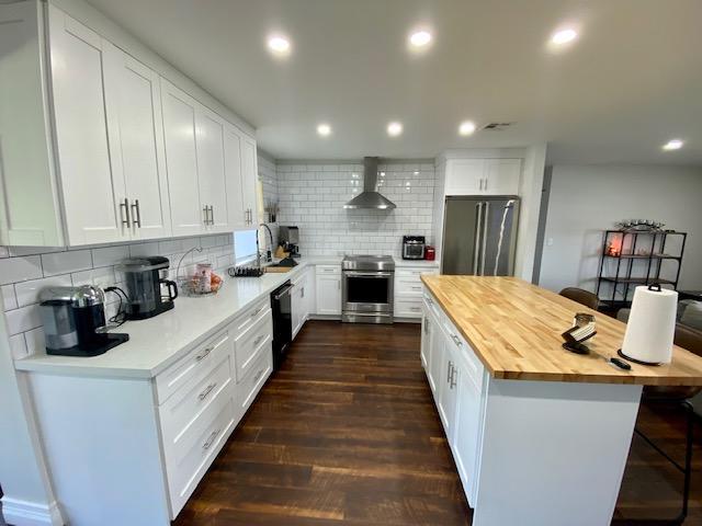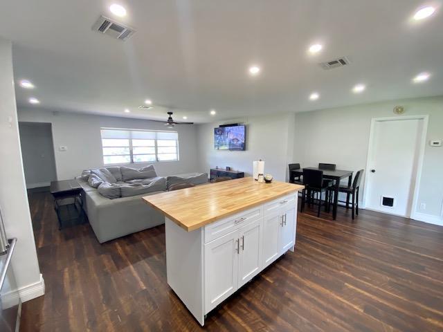Welcome to this beautifully updated 3 bedroom /2 bath home! Re-designed with an open concept floorplan with loads of upgrades. kitchen has a gorgeous quartz countertop, complimented with a white subway tile backsplash. New stainless steel appliances, including stylish stainless stove-top vent, and wood-block center island make this a Chef's dream come true! A large meticulously maintained back yard with a covered patio make this the perfect place for family fun and entertaining! One of the bathrooms has been completely updated as well. This home also has a new A/C! High hat recessed lighting really makes the house up to date! You will love the split floorplan. One of the bedrooms is currently converted to an open den, but can be easily converted back to a 3rd. bedroom.