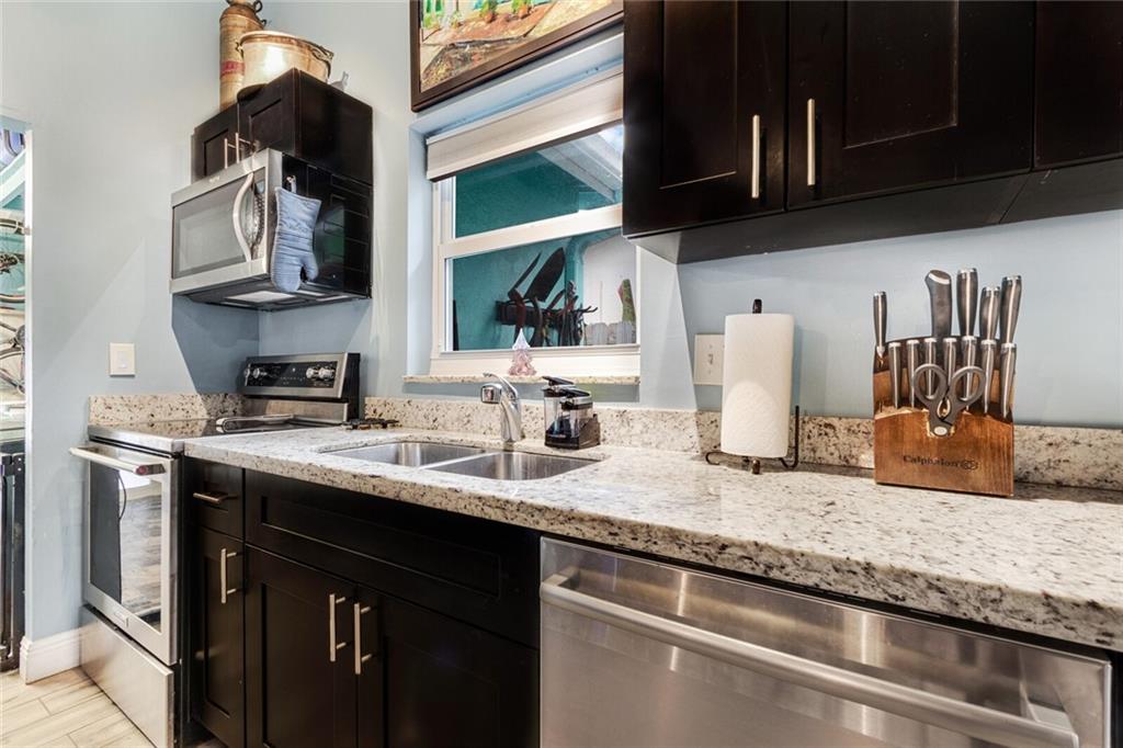 Amazing water front home in Gill Isles with 65" dock & no fixed bridges! This wonderful home has a flexible layout of 3 Bedrooms & 3 Baths plus in-law/rental suite with separate living and kitchen area (could be 4th bedroom). The interior has an open living space, vaulted ceilings, wood & tile flooring, granite and stainless kitchens, pantry, large laundry/utility room. Many new components including one of the AC systems, stove, dishwasher, disposal, and irrigation. Exterior of the house has a tile roof, all impact windows/doors, carport w/ extra storage, beautiful landscaping, circular driveway, new 65" dock w/ power and water. Come check out this boaters dream home today.