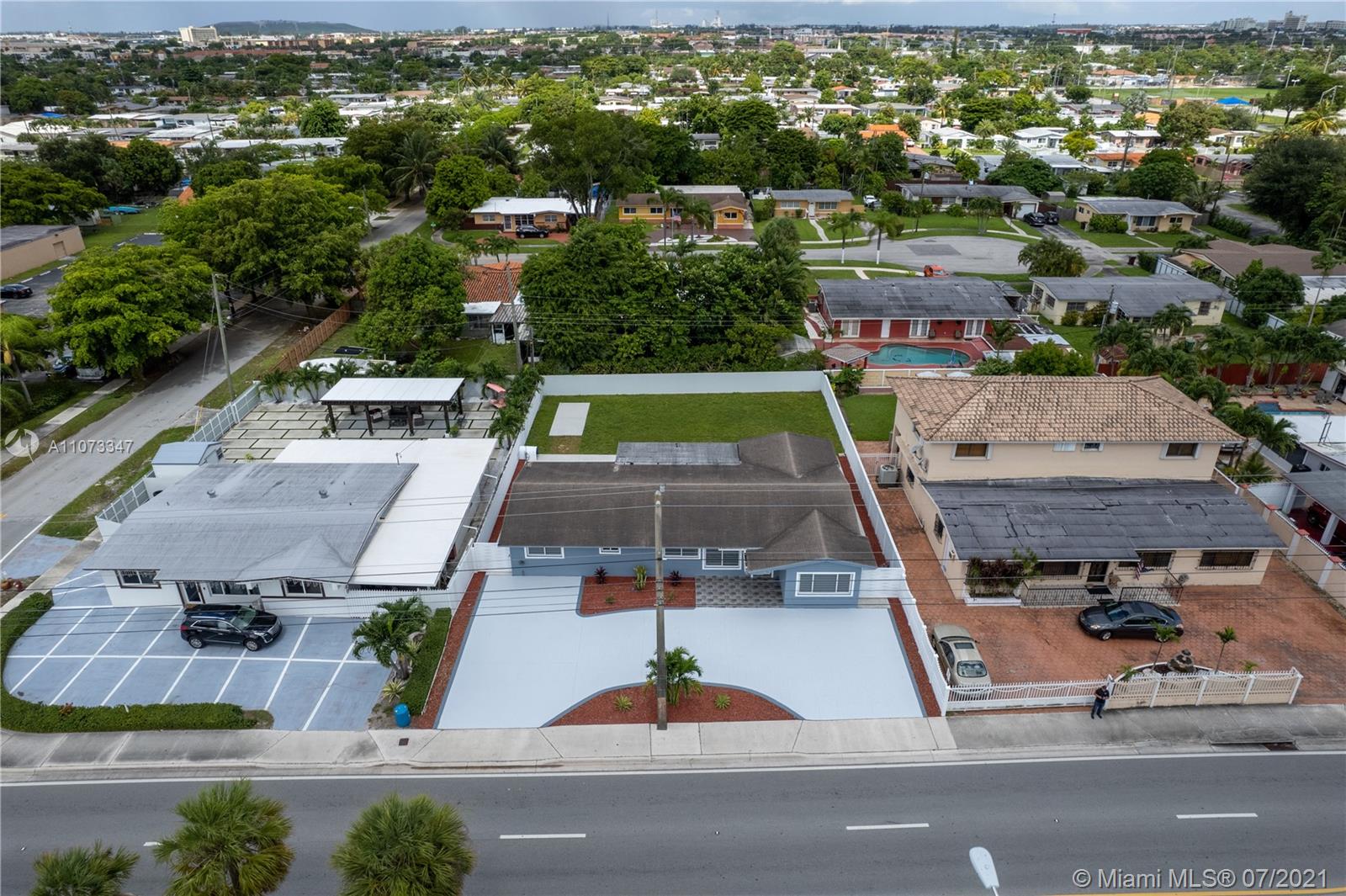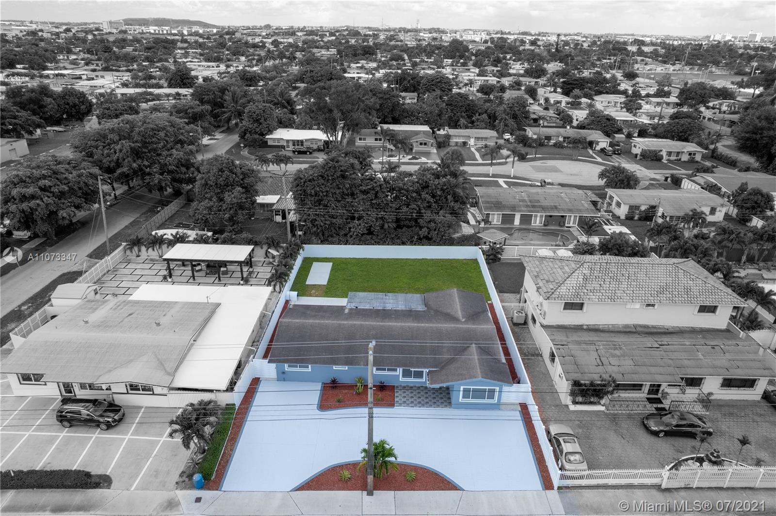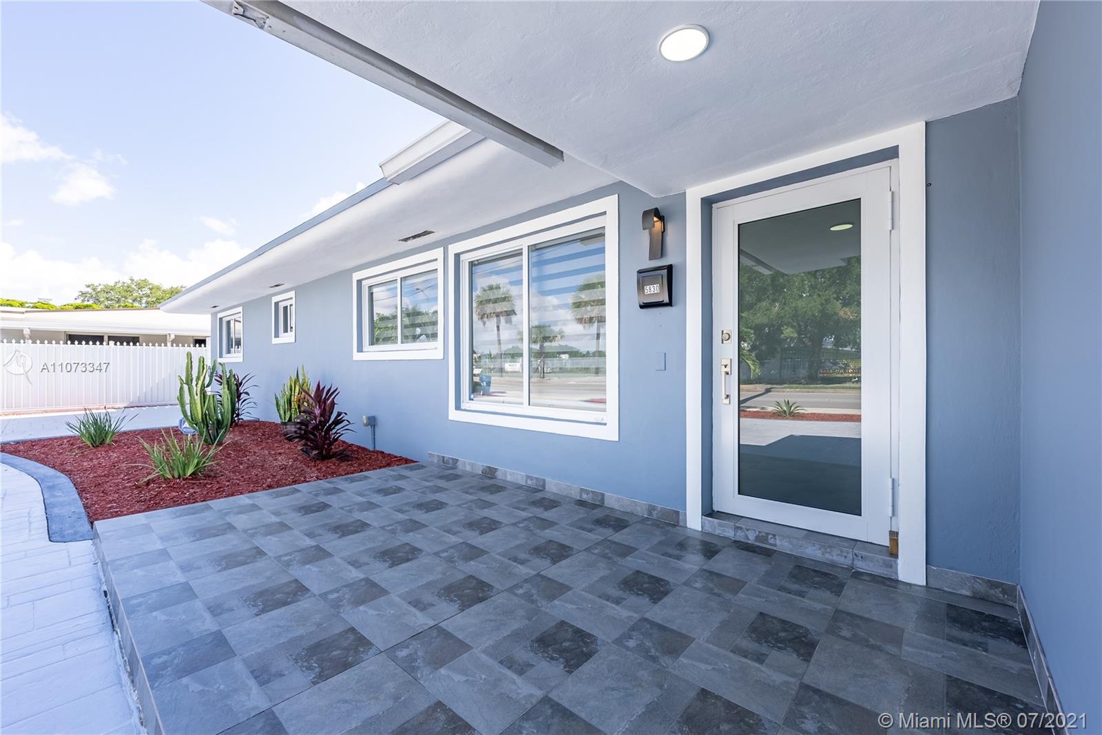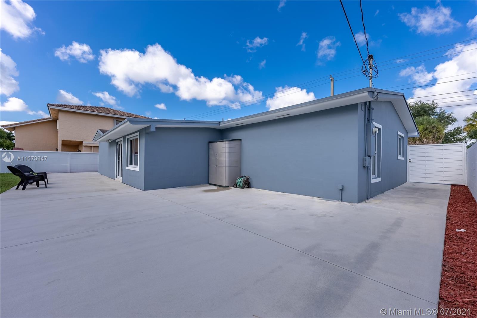 No expense was spared on this spacious 4 bedroom 2 bathroom home in the wonderful neighborhood of Palm Springs Estates. The owners were thoughtful and precise in choosing every feature in this home. From the beautiful impact windows and doors, large circular driveway, large tile floors throughout, recessed lighting, a modern style kitchen with high gloss cabinetry and stainless steel appliances, beautifully designed bathrooms with granite vanity tops, an office space with a backyard view, and a big backyard with an open patio great for entertaining. Garage was converted into a laundry room and another space for a gym or an extra office space. A 5-ton A/C unit inside and outside were upgraded in 2018, Roof was done 7 yrs ago. Close to schools, shopping, restaurants, and major highways.
