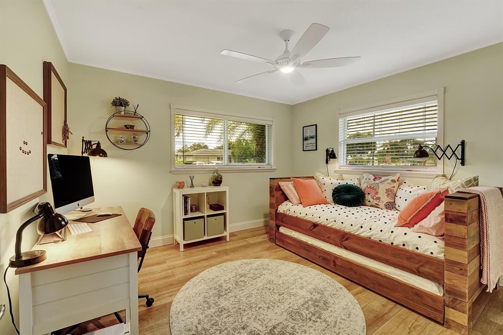 Welcome to Paradise! You will love this 3/2/2 corner lot home with a pool in the highly sought-after Boca Square neighborhood. Take a stroll to the brand new Addison Mizner Elementary or bike to downtown Boca and the beach! Beautifully remodeled home with an updated kitchen, stainless steel appliances, and pull-out cabinet drawers. Nicely updated spa-like bathrooms/cabana bath and jacuzzi tub. Full impact protection throughout. Whole-home generator with tank installed in 2020-no more power outages! Beautiful backyard pergola with sun shades. Smart Home features include Nest thermostat, Ring video doorbell, blue-tooth sprinklers, alarm system, and smart locks. Other updates include, window treatments, Elfa Closets in all bedrooms and garage, recessed lights, new Minka fans, and more!