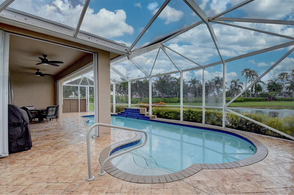A sense of peace washes over you as soon as you set foot in this home. A rare find in one of the area's most beautiful 55+ community! Quietly situated on a cul de sac with private pool and water views this meticulously maintained 3-Bedroom 2-Bath home has many recent upgrades. New AC, new lighting and ceiling fans, new flooring, new epoxy coated garage floor, complete accordion shutters, screened heated pool and patio. Neutral color pallet that works with any decor. 19 minutes to Palm Beach International Airport, 22 minutes to Downtown West Palm Beach, 12 minutes to Wellington Mall, 18 minutes to Kravis Center for the Performing Arts and Palm Beach County Convention Center.