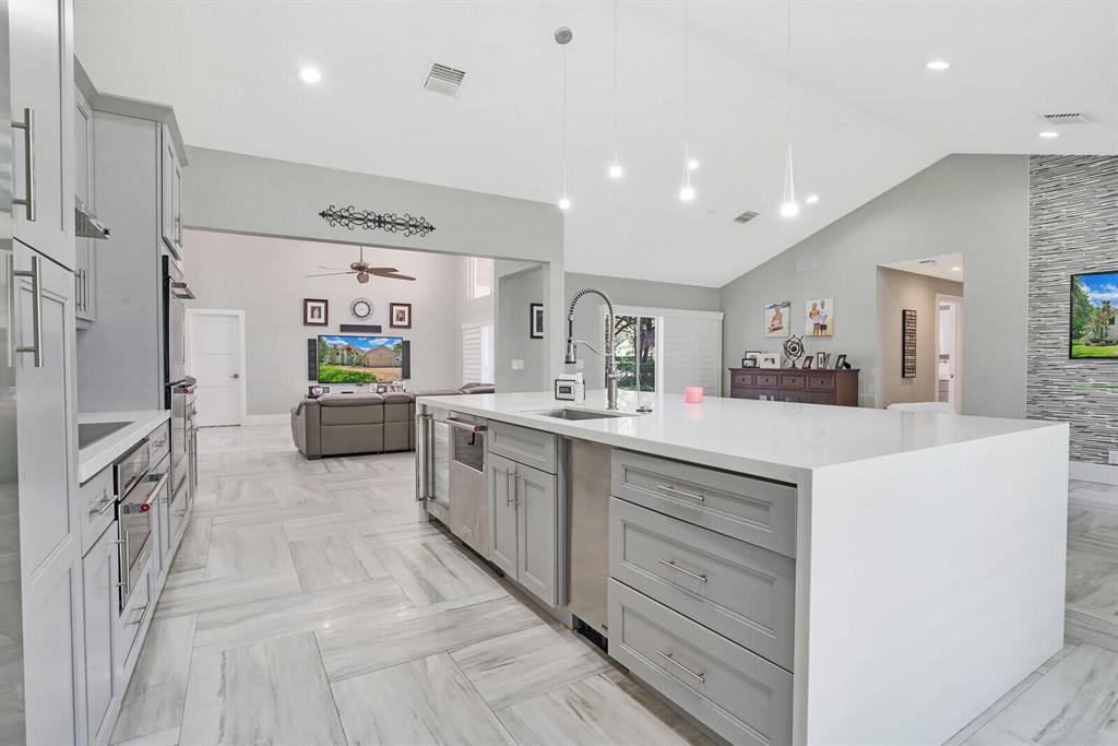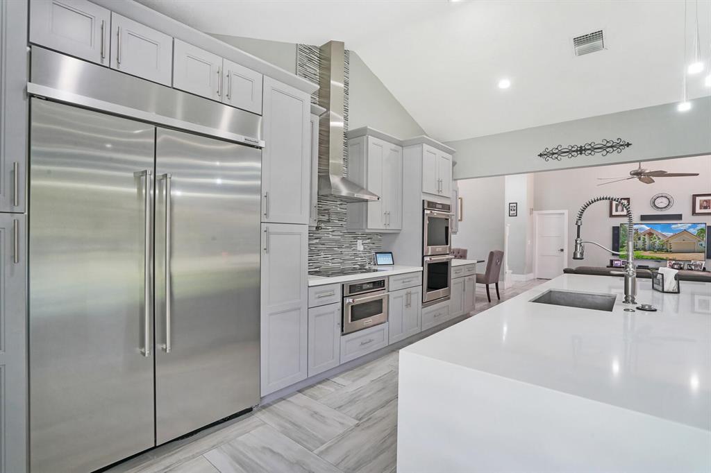Beautiful 4/2 TURN-KEY home on a large CORNER lot! FULL IMPACT WINDOWS, 2006 ROOF, high end porcelain flooring throughout, large master suite, completely remodeled chefs kitchen with top of the line cabinetry, QUARTZ countertops, SS appliances a large island & wine fridge. Both bathrooms have been fully remodeled with top of the line finishes, waterfall shower heads, even a STEAM ROOM SHOWER! Extra large backyard with plenty of room to entertain, a tranquil marble pool deck, outdoor entertainment area and Tiki Hut that has a built in bar and grill. Highly desirable neighborhood in a great school district and perfect for raising a family. This home is a true Gem. DO NOT MISS OUT, THIS HOME WILL NOT LAST! Open House 7/31/21 1230pm-3pm.