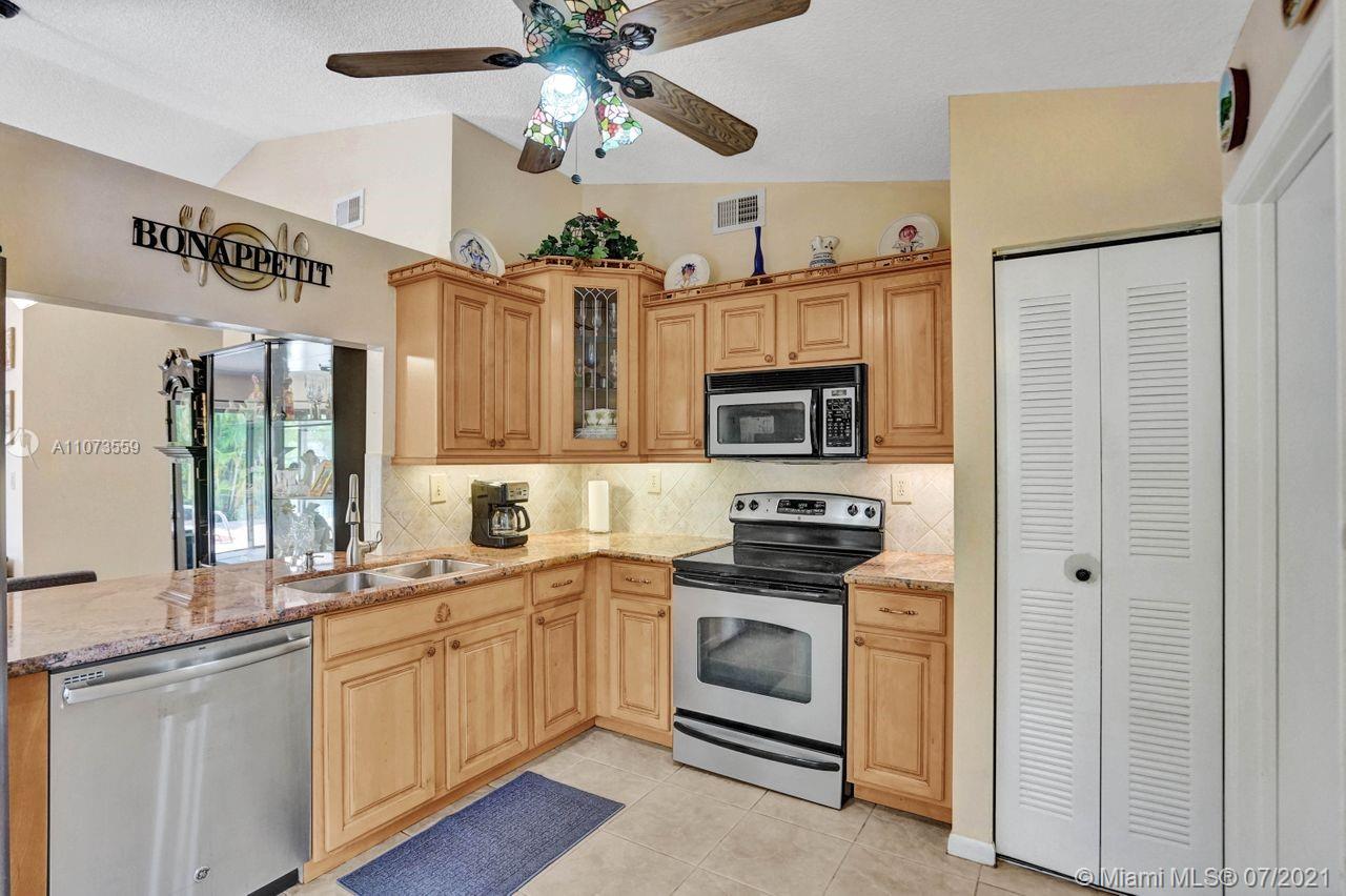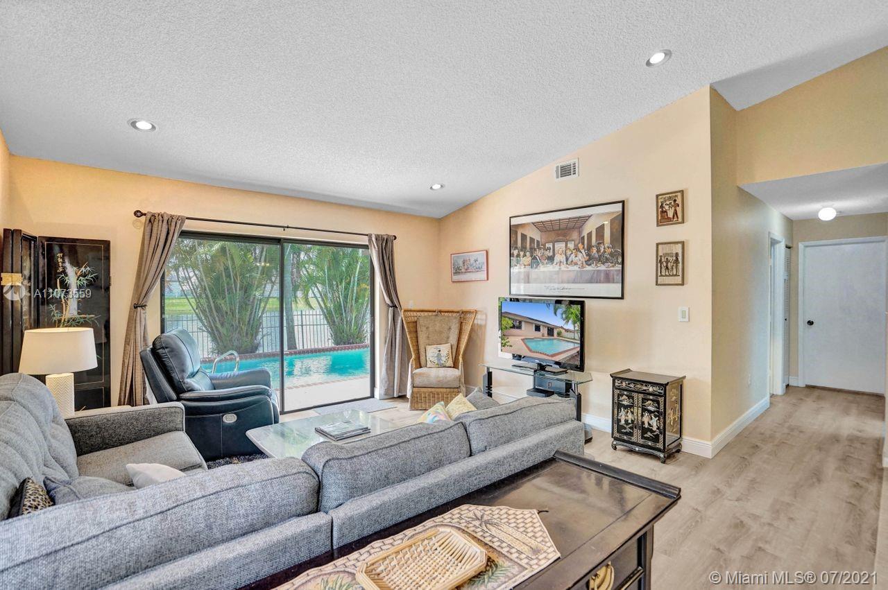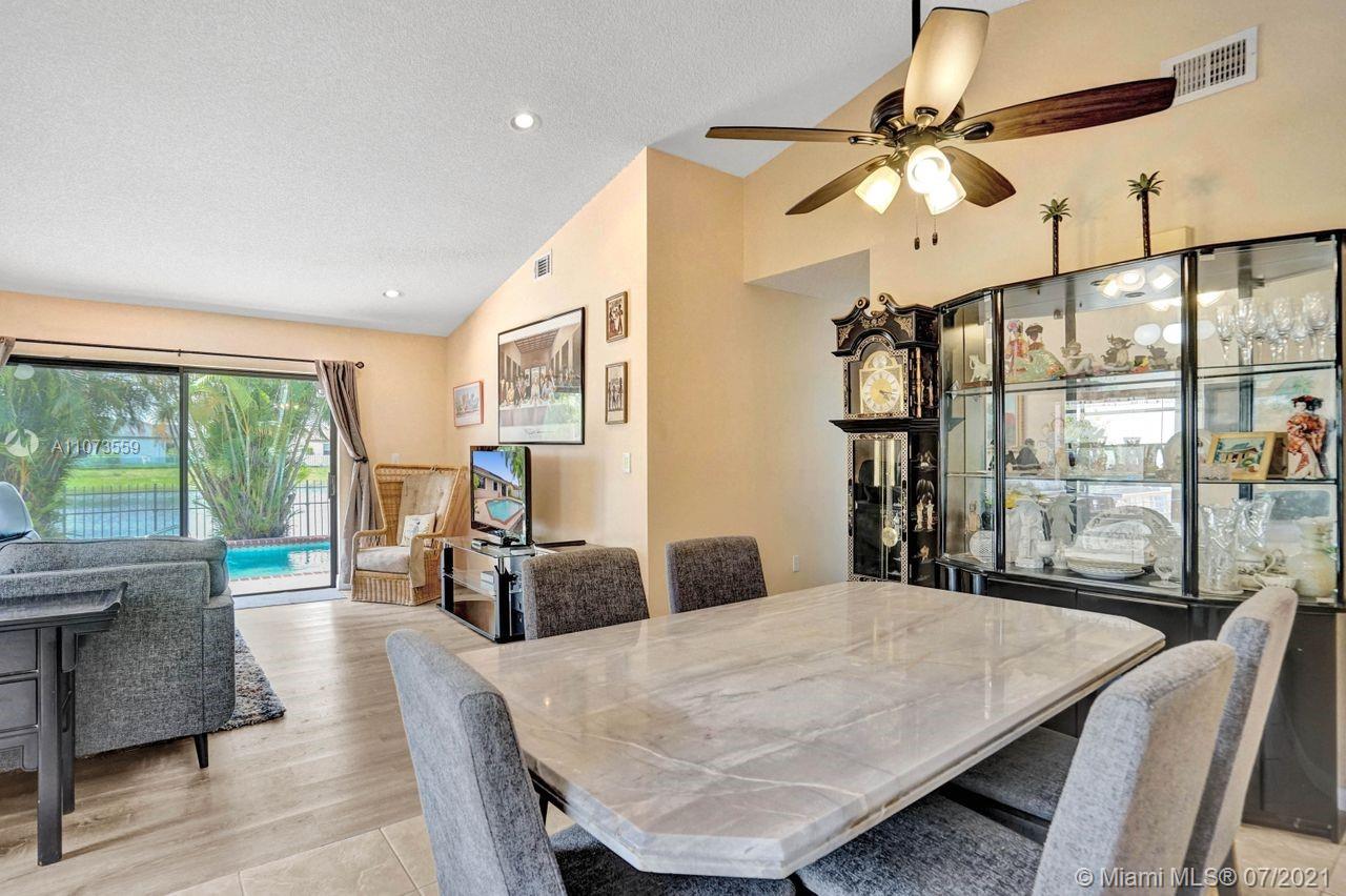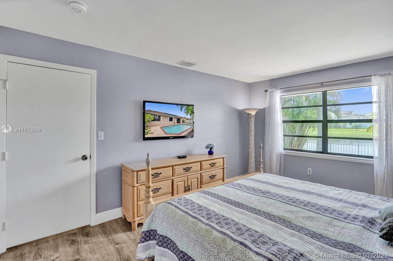 Come and see Shenandoah's latest neighborhood gem! Boasting a beautiful sparkling pool overlooking a pristine lake filled with wildlife. The kitchen, updated with beautiful cabinetry, granite countertops, and SS appliances. Updates to this gorgeous 3-bed 2-baths home include wood laminate flooring in the living room, master bedroom, and hallway, a recently updated hallway bathroom, and a permitted 150-amp electrical panel added in 2020. Outdoors, enjoy South FL living year-round. The large primary bedroom offers an ensuite bath w/walk-in closet & views of the sun-kissed lake from the window. Ample driveway parking, 1-car garage, & hurricane shutters add more value. Enjoy tree-lined streets, community park, & amenities. Close to businesses, A+ schools, shopping, dining, & highways.