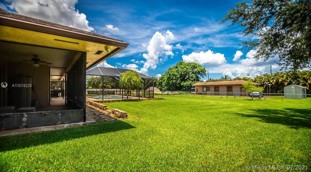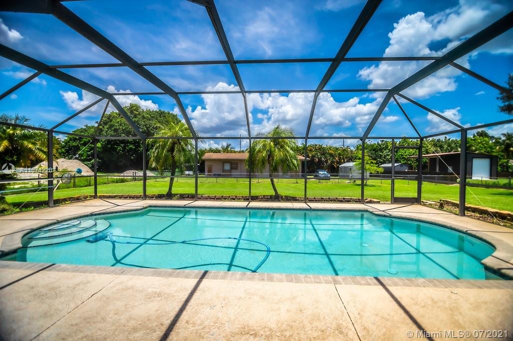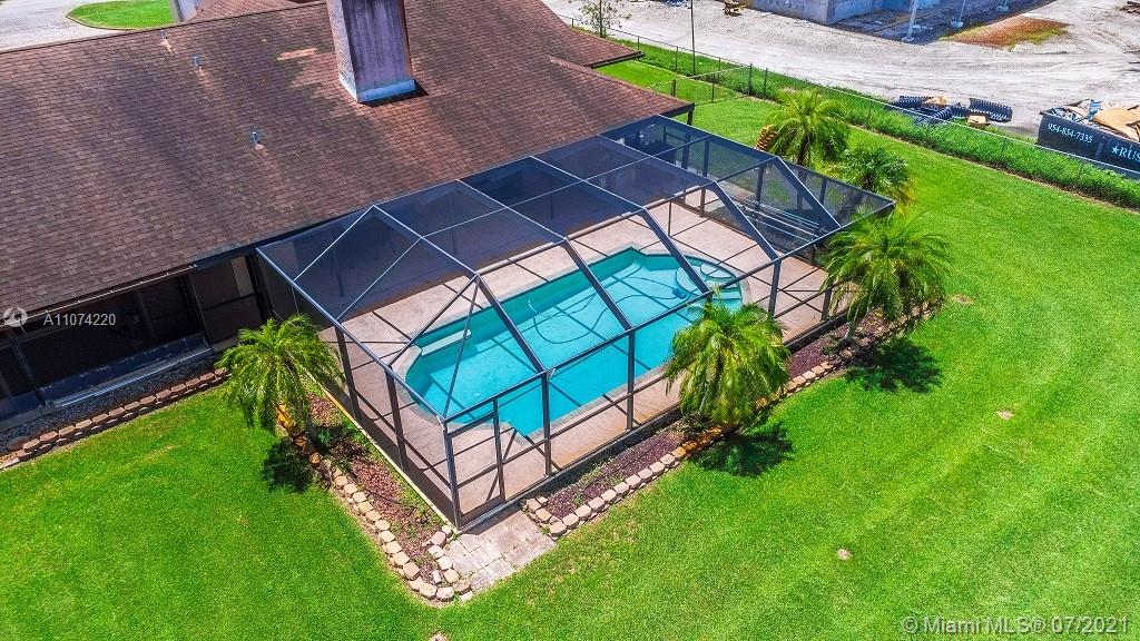 Opportunity Knocking! Ranch Style. Own your green acre of paradise in Davie. Bring your Horse, RV, Boat. MAIN HOUSE features: 3 beds 2baths. 9 foot Ceilings. Formal Dining area. Bright & open living room w/ceiling to floor windows to enjoy pool view & manicure backyard. Impact windows, except on one back sliding door, shutters for the entire home. Spacious Kitchen w/ Granite Countertops, impeccable wood cabinetry. Huge Master bedroom 19x20, Walk-in closets. Wood floors thru-out. The other bedrooms are carpeted. Screened back patio. Heated pool w/salted water system. 3 car garage. BONUS *Spacious APARTMENT*: 2beds 1bath also 9 Foot Ceilings, Huge closets! Solid Buildings! Built to last. Tons of natural light. NO HOA! Quiet Dead End. MATURE landscape. Also huge Barn!!