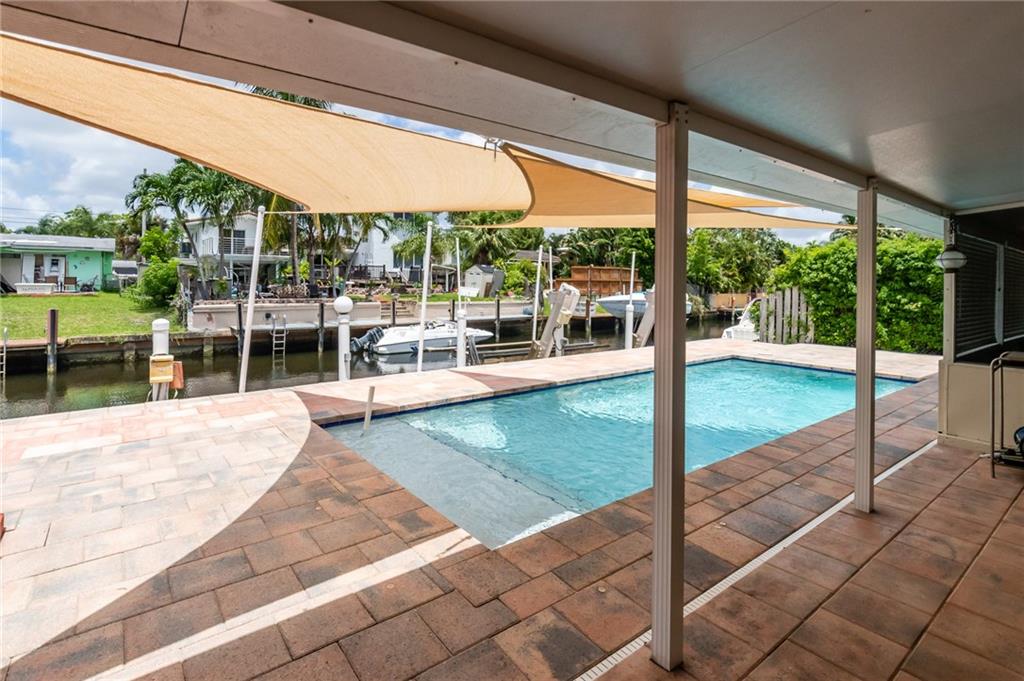 3/2 Pool Home on 65' of DEEP water in Lauderdale Isles. This house was built for entertaining with the beautiful pool, covered bar and party area plus a screened in porch with jacuzzi off the master. The whole 65' is covered in dock with electricity, lights, water and a 13,000 lb boat lift. All impact windows and doors throughout in 2017. Completely fenced in front and back yard, huge canopy to keep your cars out of the weather. Mini split ACs to run your house super efficient. Upgraded electric in 2015, New roof in 2015, New Pool in 2010. All with permits. Convenient boat ramp just one street down for easy access to pull boat if needed. Super convenient access to 95 / Tpke & 595. Great house in a great neighborhood, No HOA