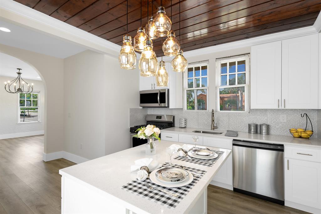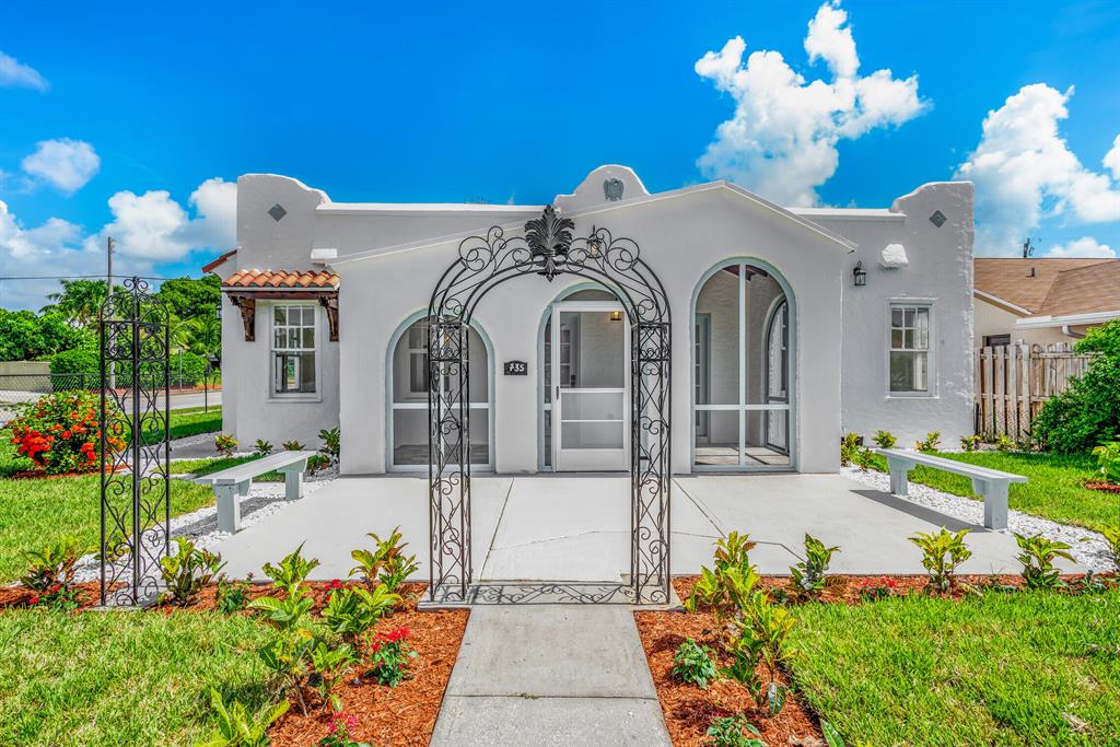 HELLO GORGEOUS!!! Run to view this beautiful 1927 West Palm Beach Beauty that was just completely renovated. Every detail was thought of when considering the best way to restore her. The home features NEW plumbing, NEW electrical, NEW A/C system, Hurricane Impact Windows and Doors (window install 2-3 weeks) all NEW Finishes throughout the interior and exterior of the home. This home sits on a large corner lot that features a spacious courtyard and separate garage. The garage has electricity and could easily be converted into a guesthouse to be used for family or extra rental income or maybe a ''she shed'' or ''man cave'' the possibilities are endless! Lets talk about the WOW factor of this home. You will love the front entry with new landscaping, benches and large screened in front porch.