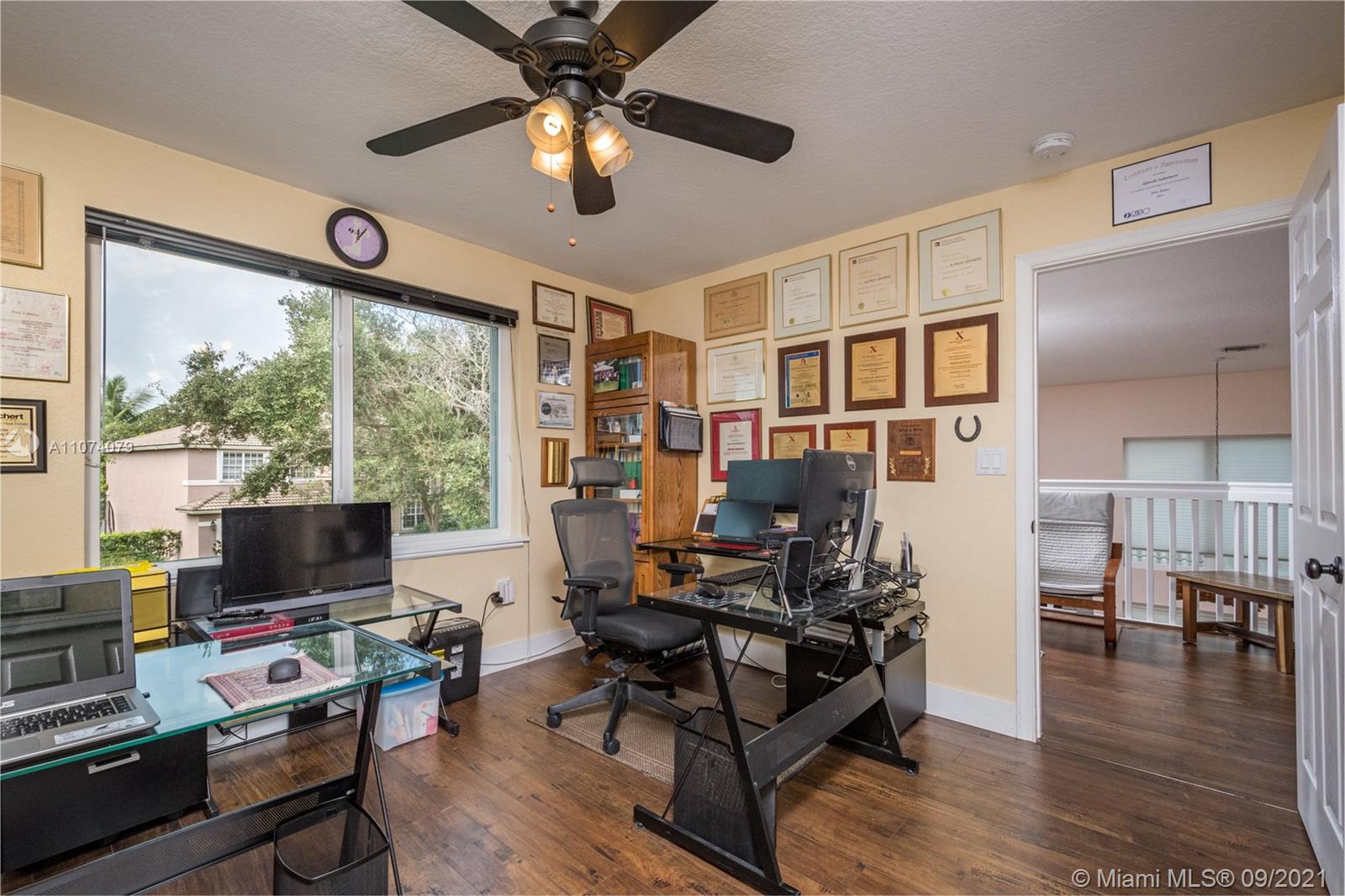 Beautiful single family home with pool and open floor plan, 4 bd, 3bth (1 bd & bth in 1st floor), 2 car garage. IMPACT windows (front & side), IMPACT French door to patio, hurricane proof main & garage doors. Located in a great lot by EE preserve, no immediate neighbors back. Private patio with pool resurfaced and new tile and programmable LED color light. Front, side and back yards redone with new grass, fenced. Vaulted ceilings, open layout w/ eat-in kitchen, cooking range w/ double oven, ultra quiet 3 level dishwasher, breakfast area, and big family room. Upstairs Master and 2 bedrooms with Jack-n-Jill bath. Loft w/space for office. RING cameras included. HOA includes lawn (front and back), sprinkler, cable & internet, ADT alarm. A+ schools. See attachment for items that do not convey.