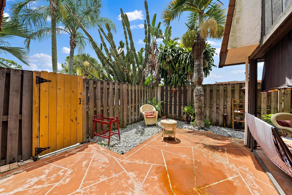 Move-in ready 3/2.1 townhome with fenced in courtyard entrance and an open covered patio. Corner unit located in the back of the community giving more privacy. Well kept & maintained. NEW ROOF 2020. NEW AC 2020 w/10 year warranty. New Refrigerator 2021. Low HOA. Centrally located 10 minutes to i-95 / 15 minutes to Wellington / 15 minutes to Downtown West Palm Beach.
