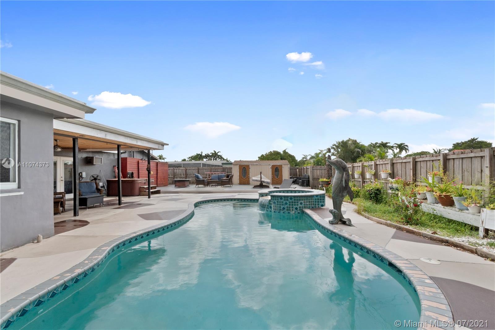This Beautiful and Spacious 4 Bedroom 3 Bath Home with a pool is a Must-See. It has an Open Floor Plan with over 3,000 sq. ft. and has New tile throughout the living and dining room area from 2019. The Kitchen is truly chief's dream with plenty of space. The backyard is perfect for entertaining with Family and Friends with a pool and jacuzzi and a Large space under roof to place a summer kitchen for BBQ'ing. The side of the property is large enough for a boat and/or RV to be parked. Their is an in-law quarters attached to the property in the back and has its own kitchen, bathroom, living and dining room. This could be an Income Producing Property. FACTS: Roof 2016, Windows (Hurricane Impact) 2016, A/C 2016, Refrigerator 2019, New Pool Pumps 2019, Fence 2015