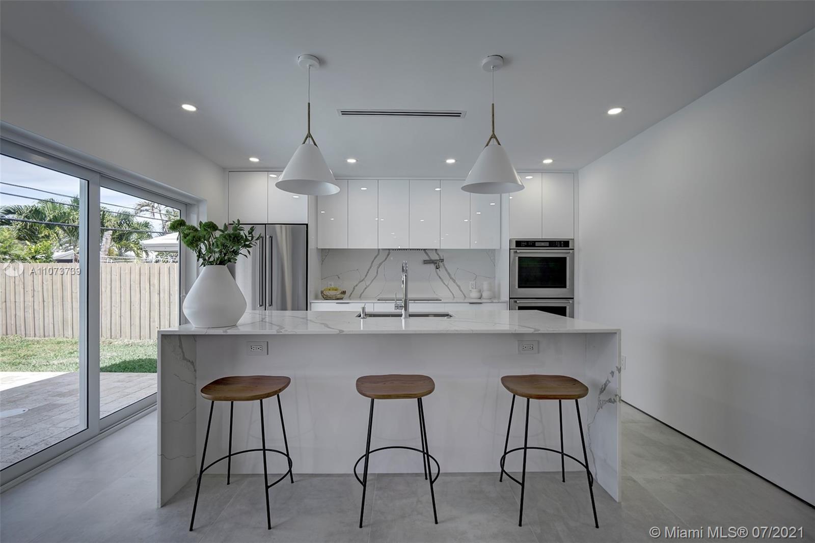 ACCEPTING BACK UP OFFERS. Welcome home to a completely renovated inside and out residence located in highly desirable Imperial Point! This 3 bed 2 bath 2 car garage with a open concept floor plan has a new roof, new underground PVC plumbing, and Impact windows/ doors throughout! The interior boasts modern floating walls, porcelain floors, recessed lighting exterior and interior along with all new A/C ducts and linear diffusers. The kitchen is equipped with custom cabinetry, calacatta countertops with waterfall edge, double ovens, induction cooktop and high end appliances throughout. This home is truly a one-of-a-kind home for the lucky new owner- make an appointment to come and see it for yourself today!