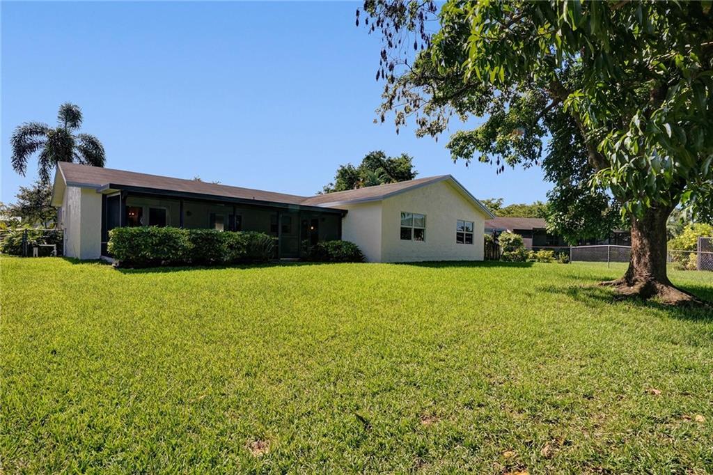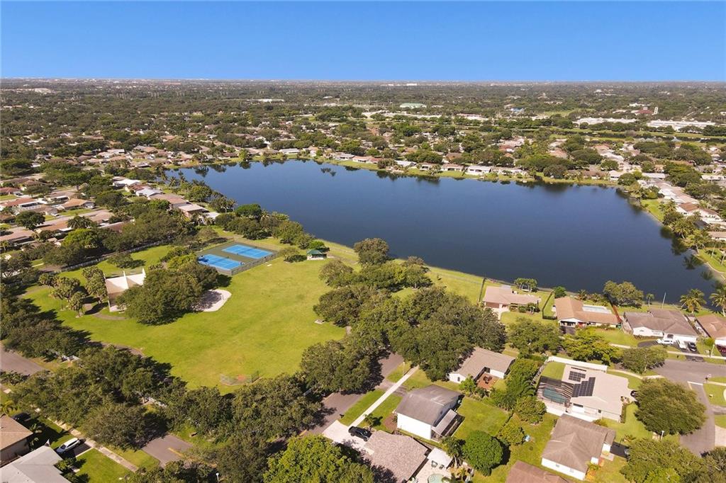 Enjoy stunning sunset lake views in this beautiful three-bedroom home located in Flamingo Gardens in Cooper City. This one-story home features 3 bedrooms, 2 bathrooms, 2 car garage, and a completely paved, screened-in patio overlooking the lake. This gorgeous home is within walking distance to a local park that has a walking trail, calisthenics workout equipment, racquetball courts, a playground, and tennis courts. There is even room for a pool. This home was meticulously maintained and qualifies for a 4-PT WIND/MIT savings on homeowners insurance with impact windows and garage door. Roof 2008. AC 2020. Sunsets on this lake are stunning!