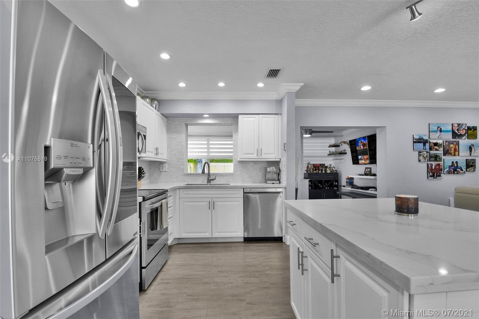 AMAZING CORNER HOME ON CUL-DA-SAC. ENTIRELY FENCED! HOME FEATURES TILE THROUGHOUT , IMPACTED WINDOWS 2020, NEW KITCHEN, QUARTZ COUNTERTOP, STAINLESS STEEL APPLIANCES, CROWN MOLDING, FRESHLY PAINTED INTERIOR, BEAUTIFUL BLINDS INC, SPACIOUS FLORIDA ROOM. COMFORTABLE UTILITY ROOM WITH FRONT LOADER W/D. LARGE MASTER BEDROOM WITH WALK IN CLOSET ,MARBLE BATHROOM WITH ELEGANT GLASS SHOWERDOORS. DECK PATIO GREAT ENTERTAINING AREA, EXTERIOR LIGHTING, MOTION LIGHTING, SECURITY CAMERA. ADDITIONAL FEATURES INCLUDE TANKLESS WATER HEATER, NEWER AC, RUST FREE SPRINKLER SYSTEM. JET TUB , UPDATED CEILING FANS, REINFORCED INSULATION. THIS AMAZING 3 BEDROOM 2 BATH 2CAR GARAGE IS MOVE IN READY!!