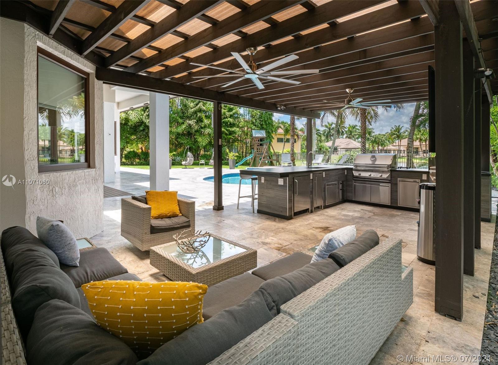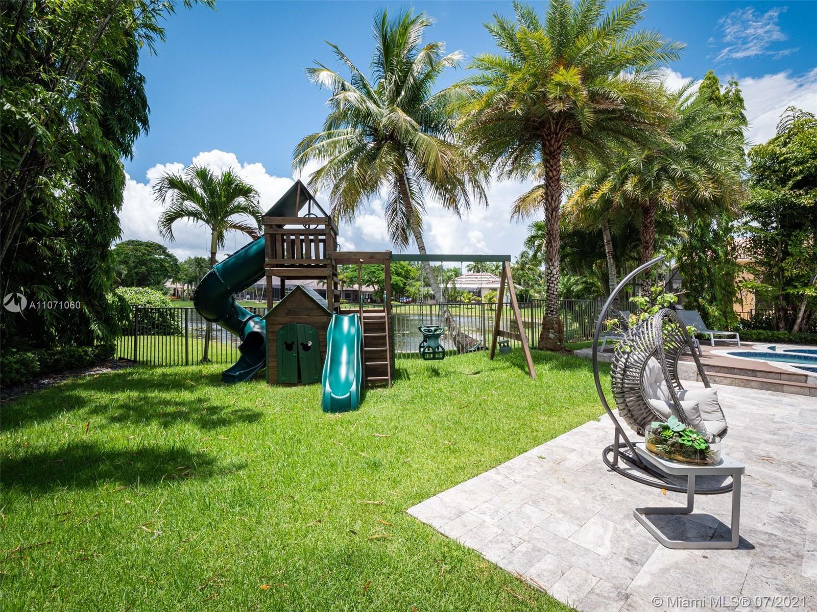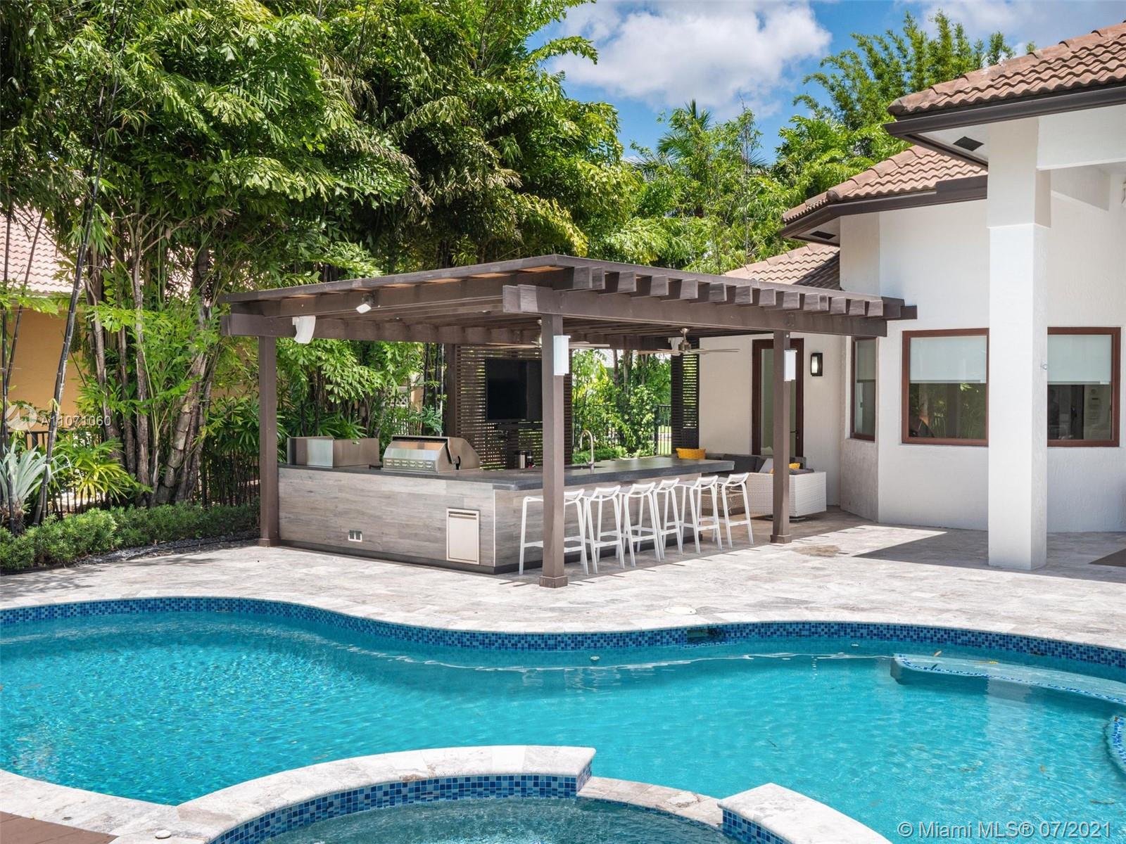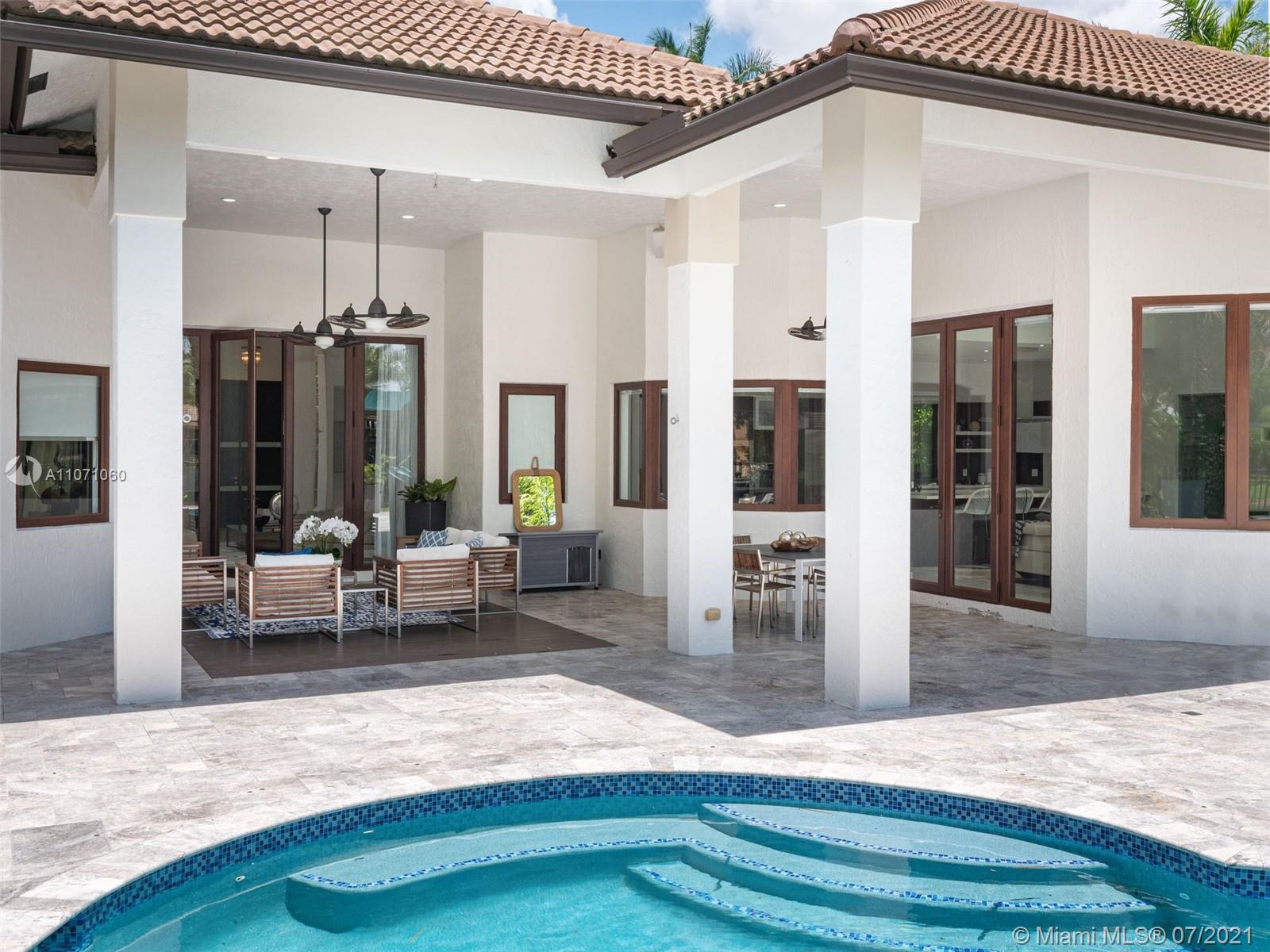 This Smart Home Is Immaculate and Fully Remodeled. Sound System, Cameras and Speakers by SONOS in The Entire Home. Featuring 5 BR/5.5 BA/Office/Gym/Sauna. Perfectly Set on a 1/2+ acres lot. Designer Bathrooms, Top-of-the-line GD Italian Kitchen, MIELE Appliances. Marble Floors, Smooth finish walls, Dry Wall Ceiling Designs with LED Lighting. Custom Closets, Cabinetry and Italian Doors. High-End Motorized Window Treatments. New Fast-Speed Pool Heater Pump, 4 AC units, Double-Pane Impact Windows & Central Vacuum are Some of The Features. Enjoy The Fully Fenced Backyard Perfect for Kids (Playground) & Pets. A Unique Outdoor Living Space With A Custom Designed Wood Pergola Fully Equipped (TV & Appliances). A 3-Car Garage with Cabinets/Storage. Stop by this Majestic Porte-Cochere and Come in!