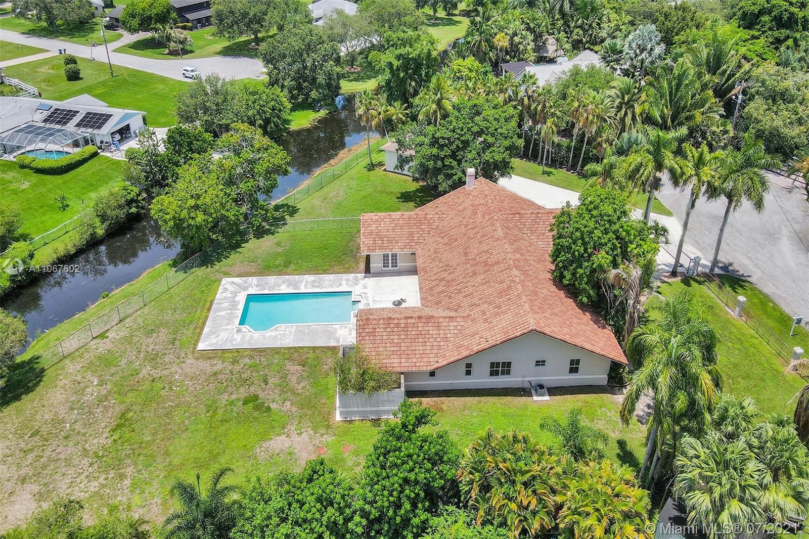 The main house is 4,240 under air with a 1,380 SF detached CBS Garage/Barn. The detached additional 30' X 45' garage is a solid permanent structure that can also be converted into another living area (mother-in-law suite or apartment). This spacious floor plan consists of a large master bedroom suite, plus 3 additional bedrooms (4 bedrooms total). There are 3 bathrooms. There is room to convert some of this extra space into additional bedrooms and/or offices as there are huge common areas.Heavily landscaped with mature trees; large back and side yards with canal frontage. Enjoy your fully fenced vertical pool area.Large, spacious, architecturally attractive Southwest Ranches home on cul de sac