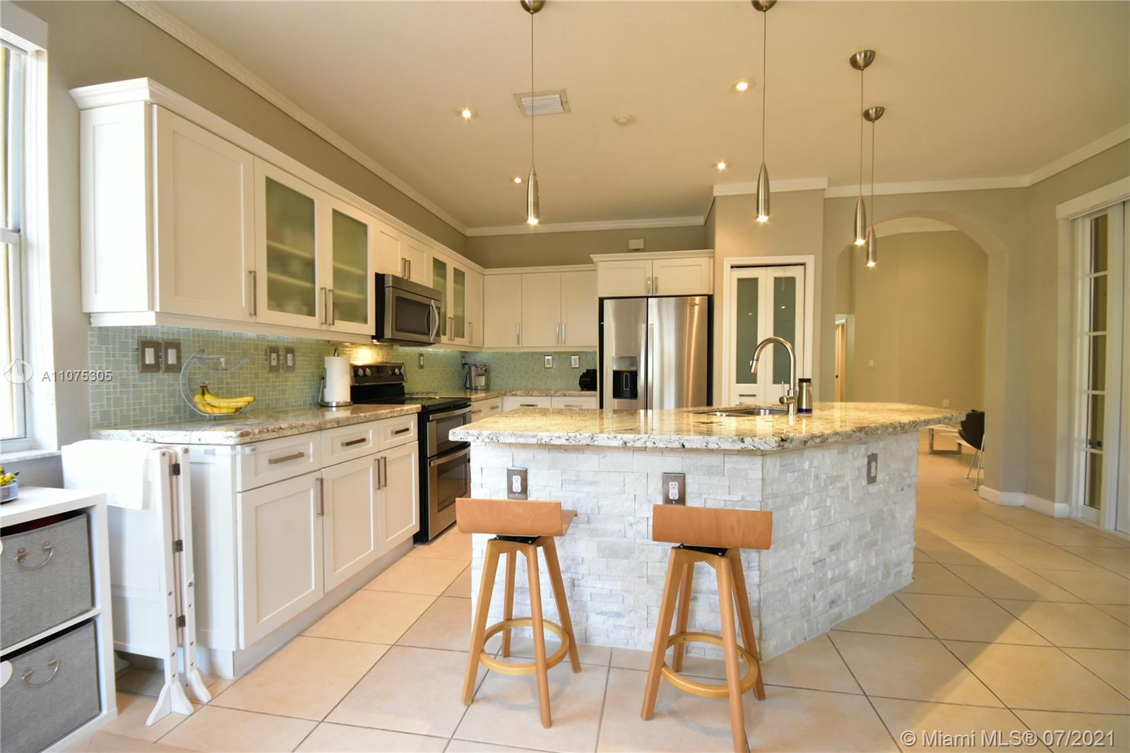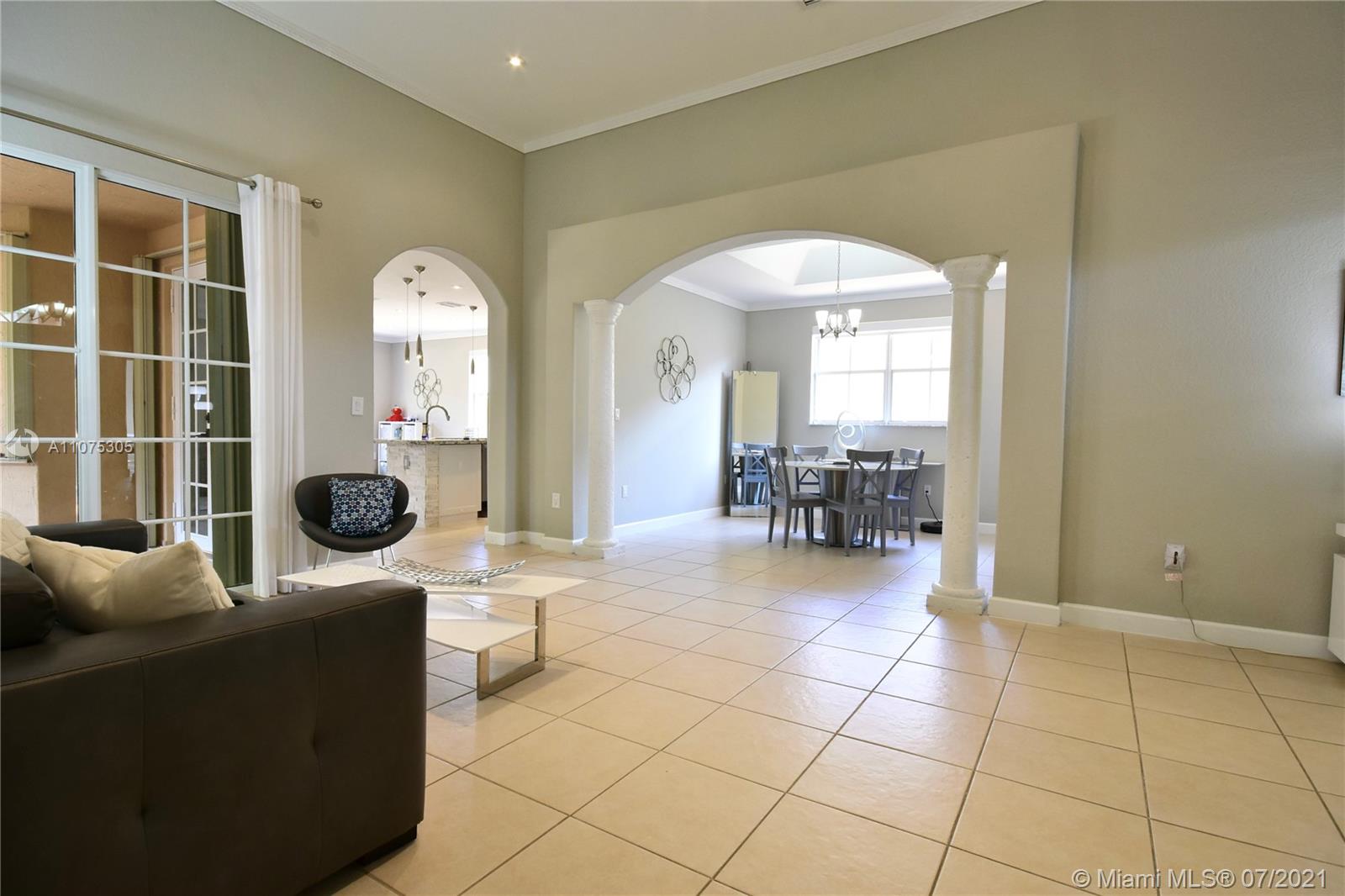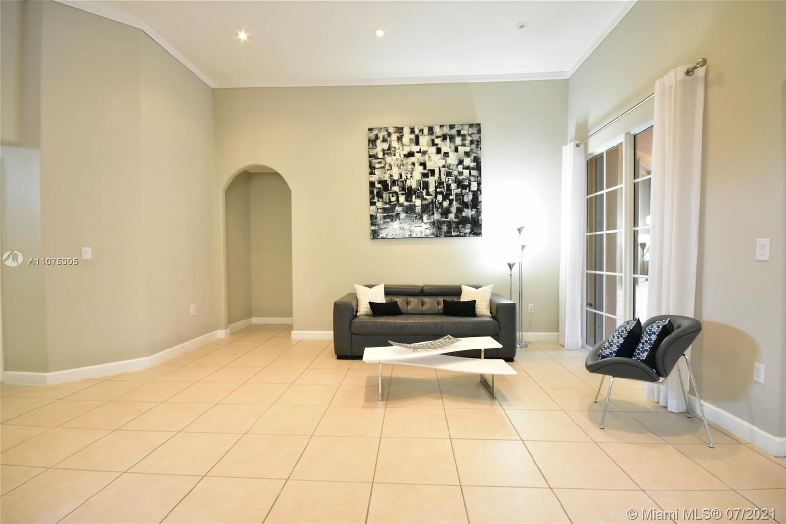 Enjoy this Beautiful and charm one story home in the desirable gated community of Goldvue Estates. Centrally located in Doral. 3 Bedrooms/ 2.5 Baths, exquisitely renovated and perfectly maintenance, it has tile throughout the house, a spacious & comfortable family room, open kitchen with SS appliances, Dining and living room separately, new water heater, new AC, w/Nest control, motion alarm inside, Closets built out. Nice gallery and Jacuzzi on the patio. Accordion Shutters all over the property. Enjoy a comfortable lifestyle, in a very quiet and great neighbor in Doral, community pool, Kids playground, 24 hrs security available. Close to main highways, shopping Malls and great schools. SEE **VIRTUAL TOUR**