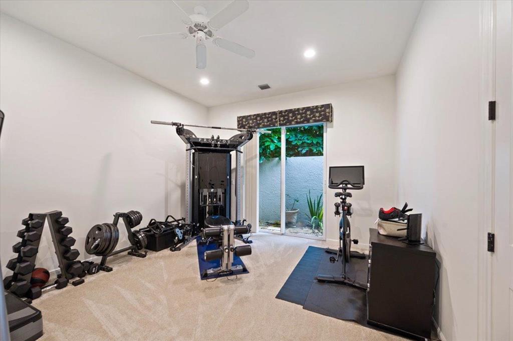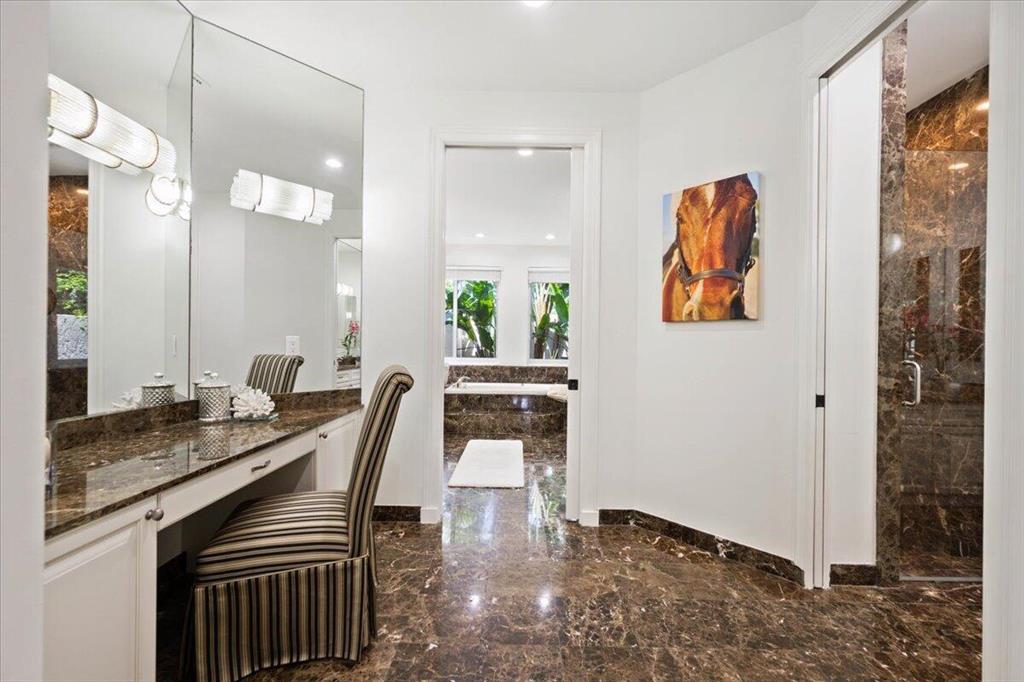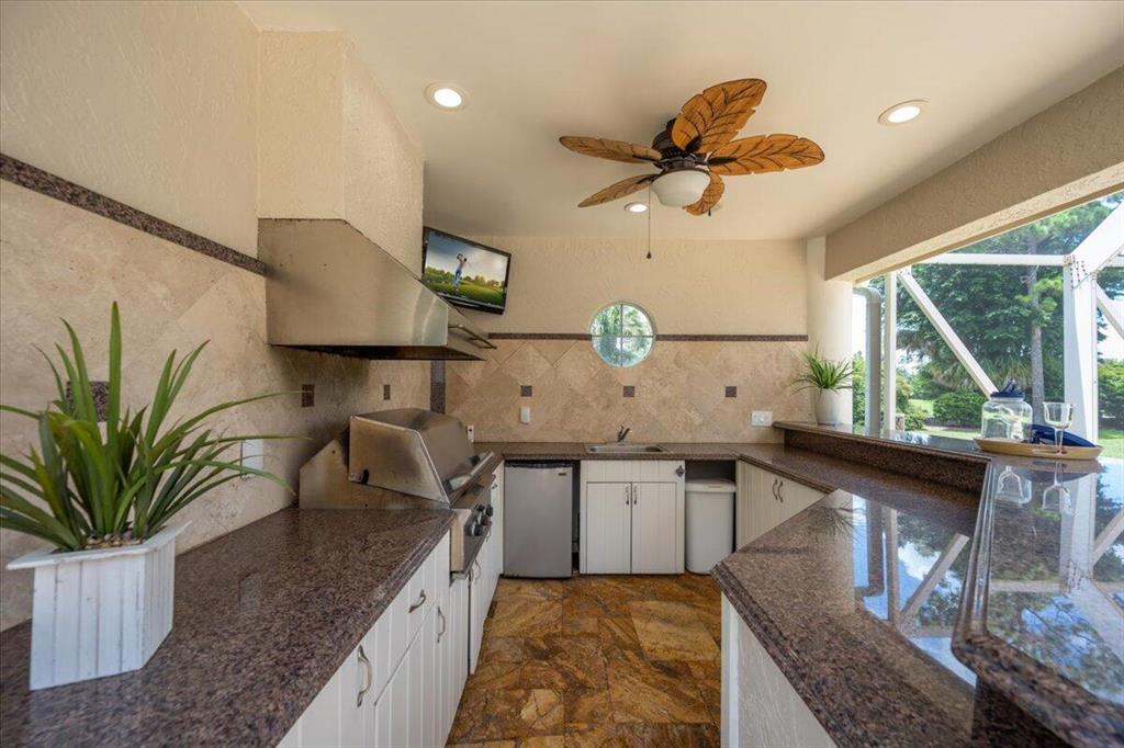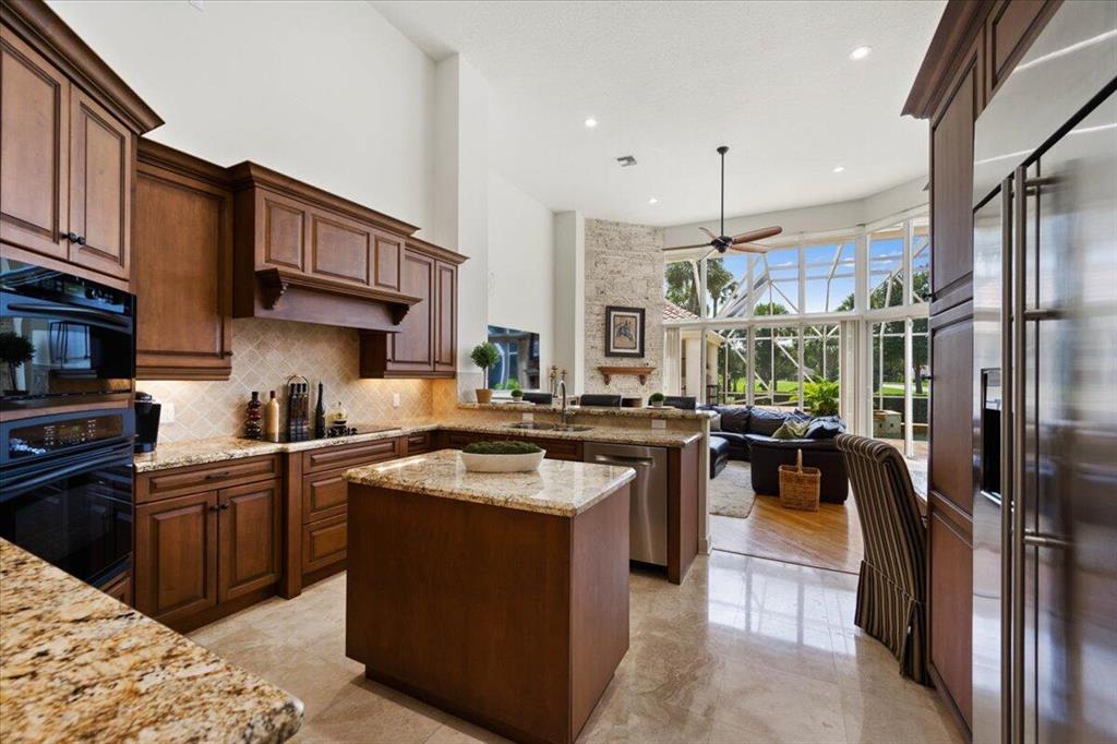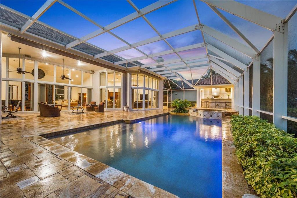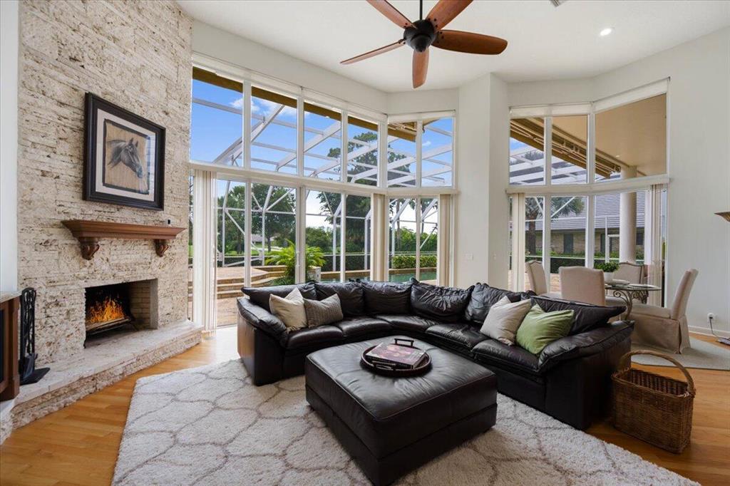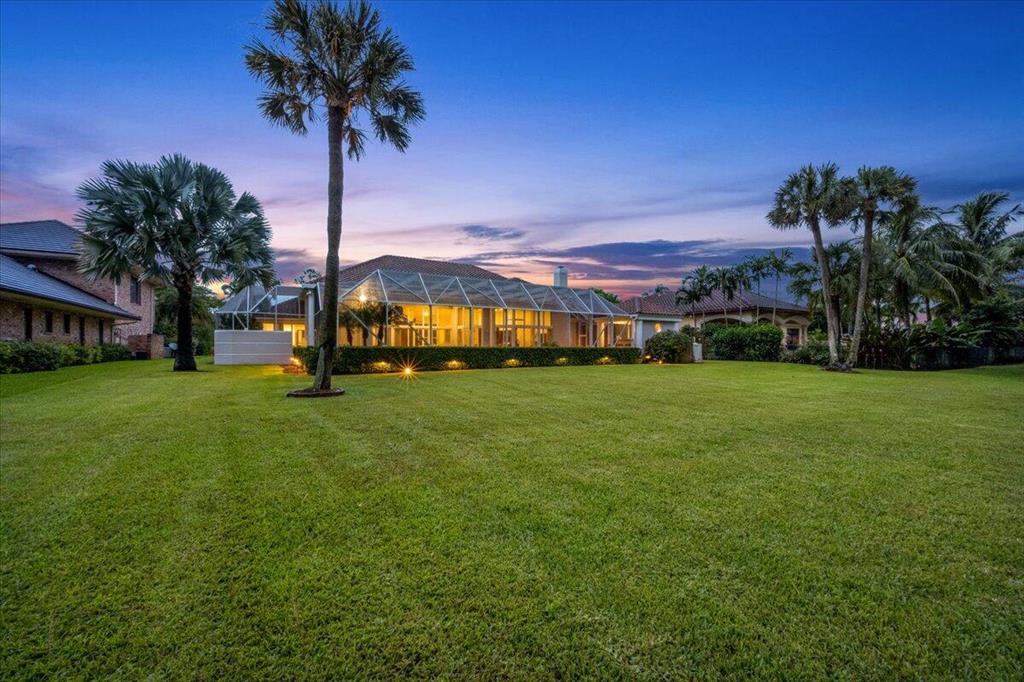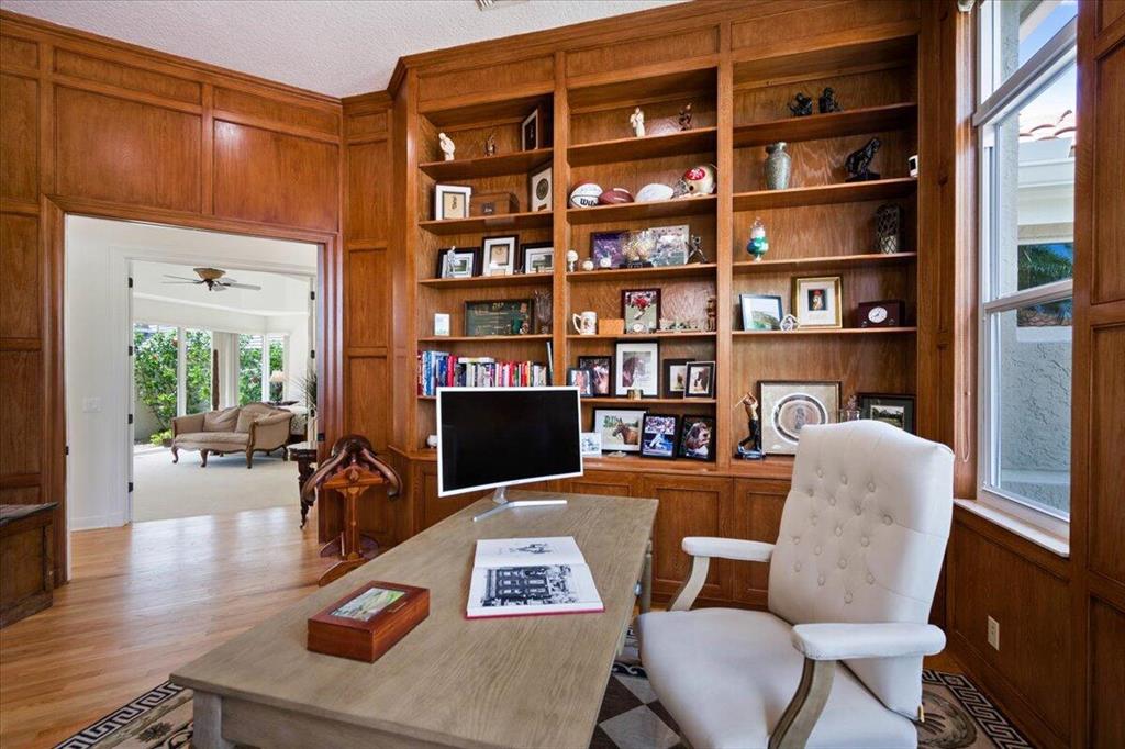 Great Value in Today's Market! Centrally located in West Palm Beach's desirable gated community of Breakers West, this custom home offers almost 4,200SF AC Living Area on lovely 1/2 acre golf course lot. With a blend of contemporary impact windows, high ceilings and freshly painted interior, this home welcomes you with a spacious Great Room and Dining Room with timeless solid hardwood flooring and stunning views of the pool and golf course beyond. Handsome paneled Office is ideal for working from home. Outdoor living space is equally impressive for entertaining with its 1,800 SF screened patio, salt chlorinated pool w/spa, marble pool deck and outdoor bar with granite counters, grill and sink. Beautifully landscaped backyard overlooks the 15th green of acclaimed Mayacoo Lakes golf course