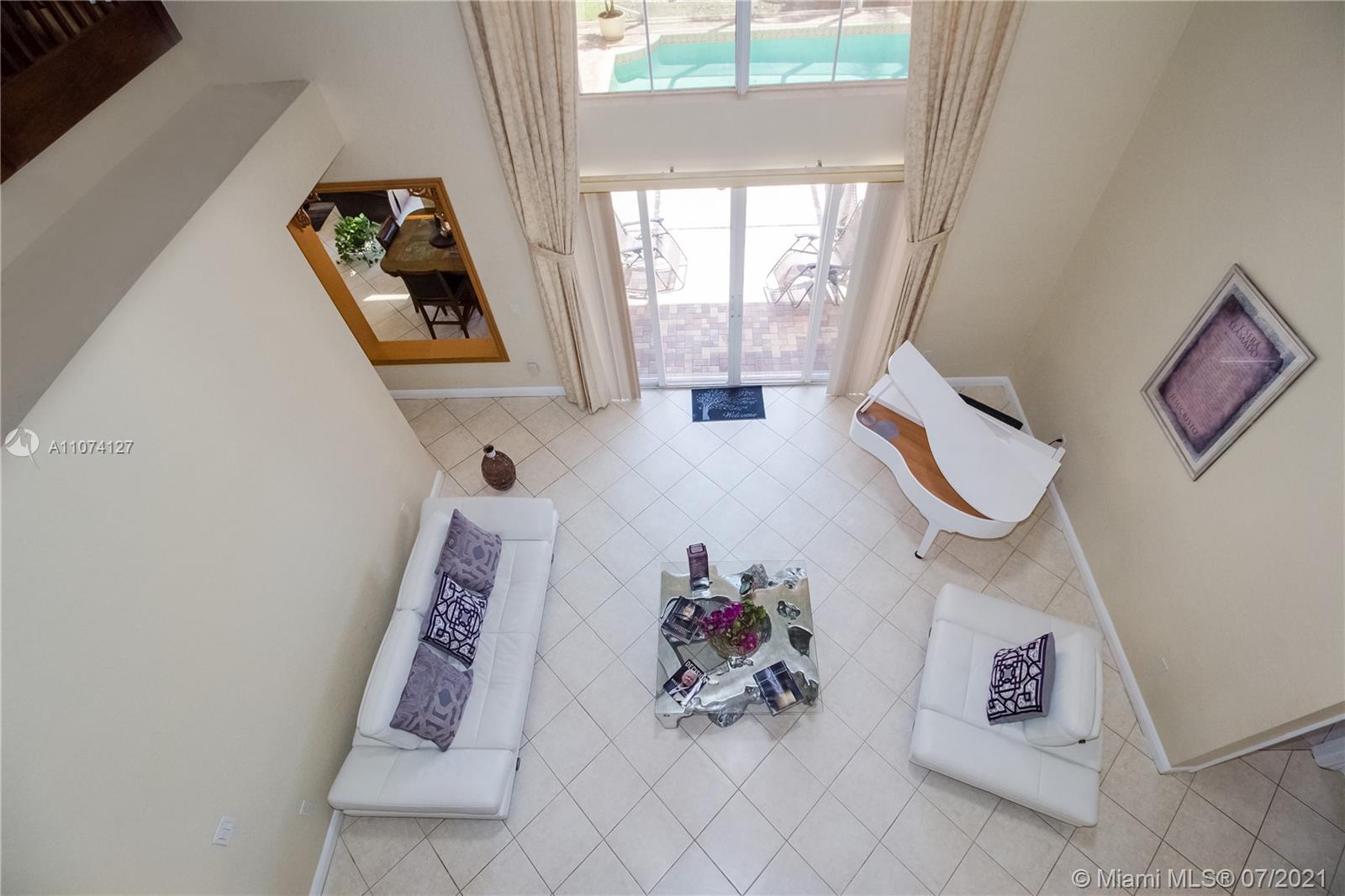 Enjoy the spectacular natural light in this gorgeous home as you enter the 2 story high foyer & formal living room. Mini master on 1st floor with full bath. Beautiful office w custom built-ins is the perfect place to work from home. Kitchen has top notch real wood cabinetry, gorgeous granite countertops & stainless steel appliances. Upper level has beautiful wood flooring. Big open loft is perfect as TV room, pool table, playroom or work out room. Huge screen enclosed custom pool & patio. Accordion shutters and home security system for your protection.