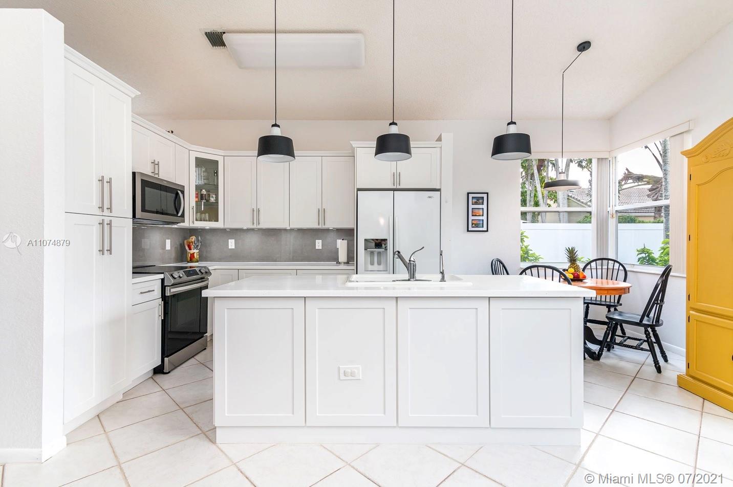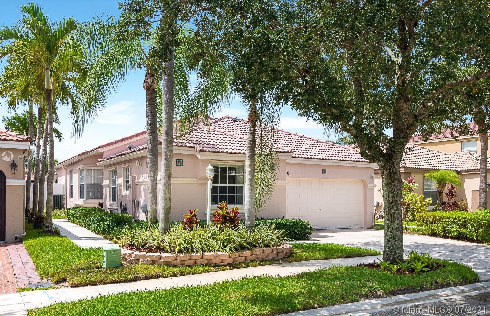 Impeccable 3/2 single family home 2 car garage in prestigious gated community TownGate. Move-in ready with vaulted ceilings. Custom wall mirrors. Newly remodeled kitchen features tall white shaker cabinets, sparkling sleek countertops, Kohler sink, roll-out trays, SS appliances, and reverse-osmosis water filtration system. Walk-in closets in oversized master bedroom overlooking patio oasis. Master bathroom with Roman tub, shower, linen closet, secluded toilet for privacy. Italian porcelain tile main areas; Berber carpet in bedrooms. Laundry room. Energy-efficient AC, hurricane SS panels, HOA $200/month paid quarterly includes cable, internet, 24 hr security. Crystal chandelier not included. Enjoy TownGate’s amenities such as pools, cabanas, playgrounds, gym, parks, tennis/baseball fields.