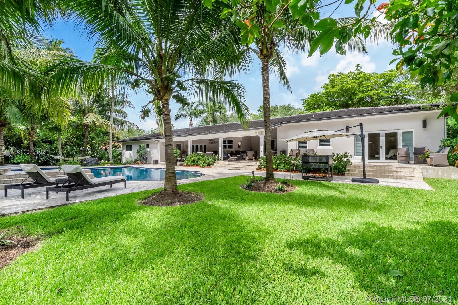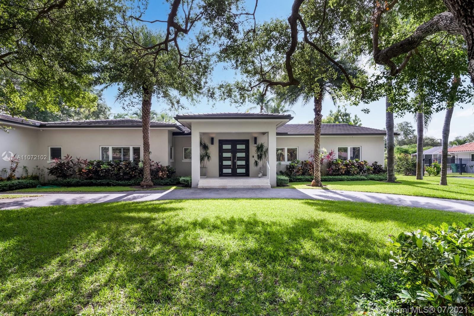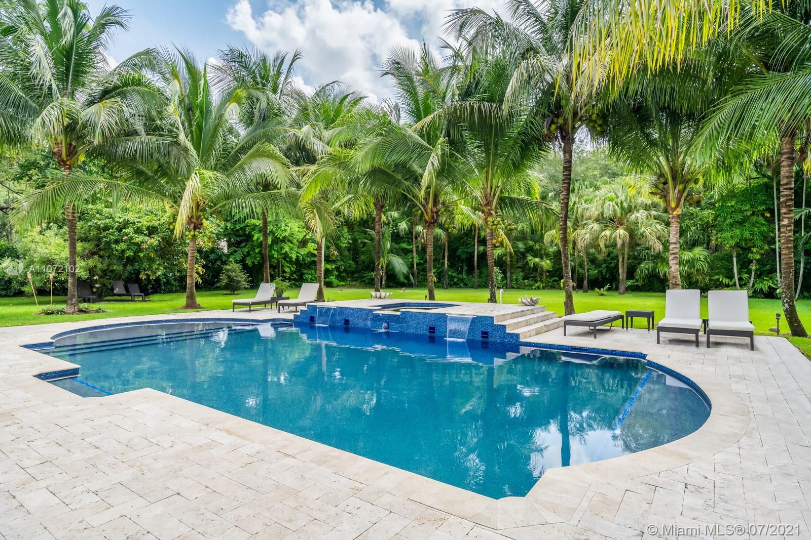 This beautiful home is located on a quiet Pinecrest street offering 4 beds, an office and 4.5 bath. The 4,798 Sf home was renovated in '15 and sits on almost an acre of lot. The property offers wood and marble floors, high ceiling, large en-suite bedrooms, Thermador appliances & gas range. The split floor plan provides for two master bedrooms w/private access to the backyard & pool. The property features a large elegant entrance, a separate living and family room as well as a large kitchen w/island and lots of natural light. The very private exterior of the property provides for a salt water pool, lush landscaping, plenty of green space, 16 types of fruit trees and a coverage terrace. Finally this home comes with 2-car garage and is located in the Pinecrest school district.