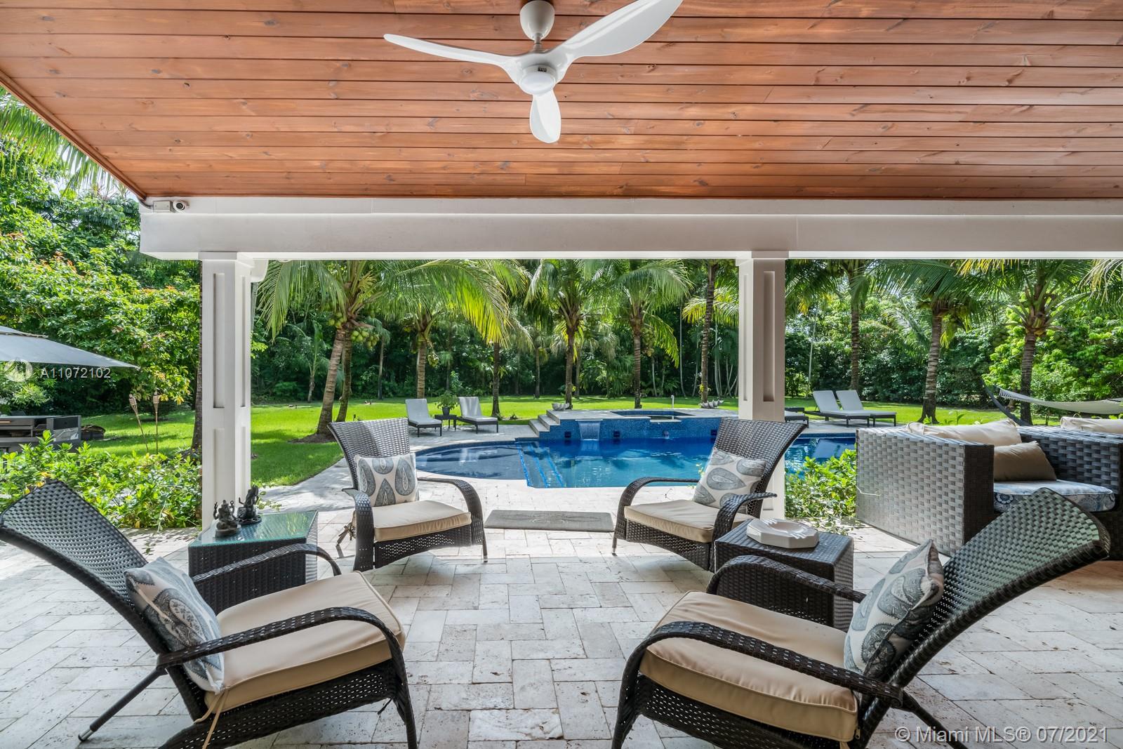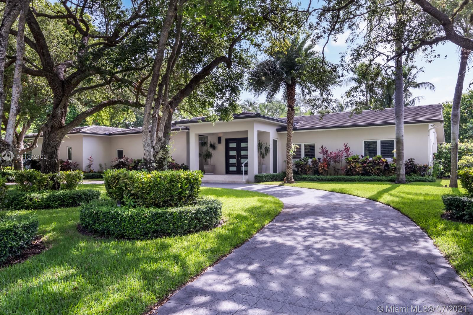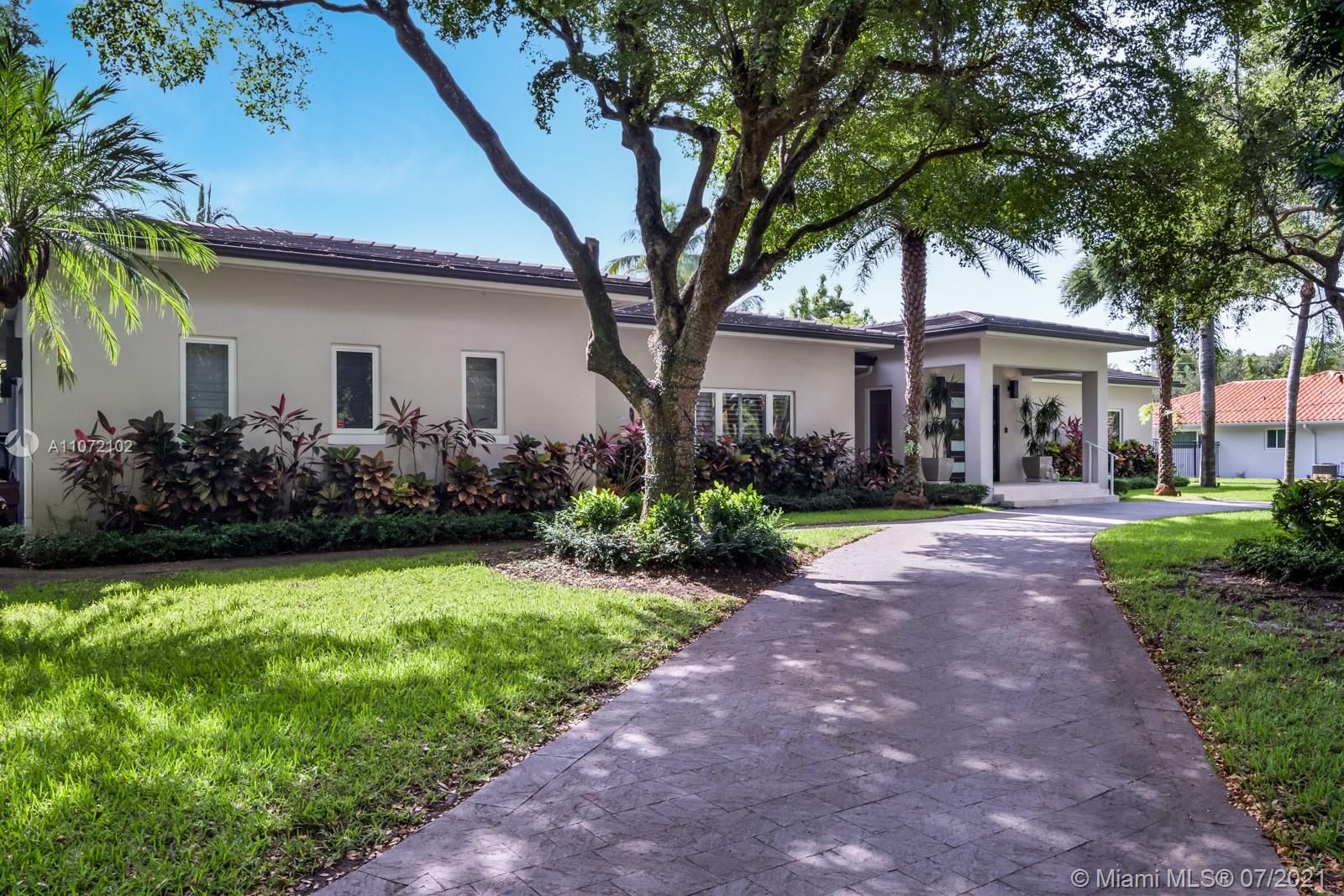 This beautiful home is located on a quiet Pinecrest street offering 4 beds, an office and 4.5 bath. The 4,798 Sf home was renovated in '15 and sits on almost an acre of lot. The property offers wood and marble floors, high ceiling, large en-suite bedrooms, Thermador appliances & gas range. The split floor plan provides for two master bedrooms w/private access to the backyard & pool. The property features a large elegant entrance, a separate living and family room as well as a large kitchen w/island and lots of natural light. The very private exterior of the property provides for a salt water pool, lush landscaping, plenty of green space, 16 types of fruit trees and a coverage terrace. Finally this home comes with 2-car garage and is located in the Pinecrest school district.