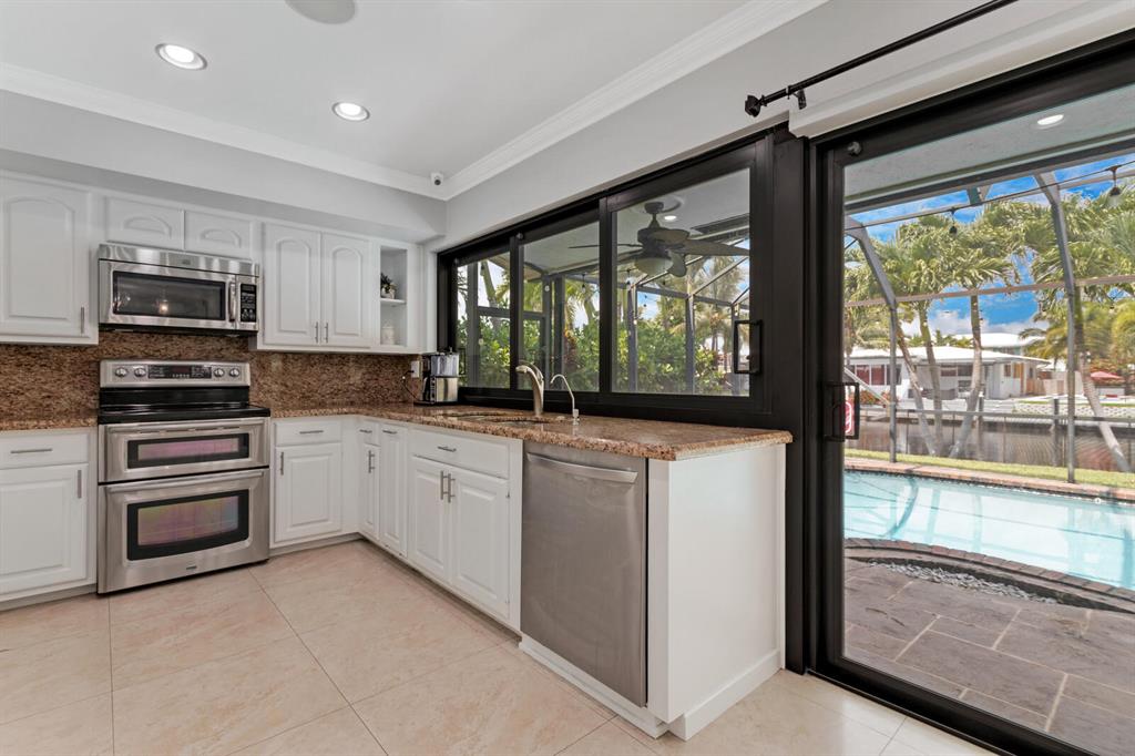 OVER 2500 SFT HOME IN IMPERIAL POINT; 76' WATERFRONT ! OPEN FLOOR PLAN w/ large great room & wall of windows bring in the light ! THREE BEDROOMS PLUS LARGE OFFICE. Custom kitchen, formal dining room, extra sitting area between kitchen and Great Room, inside laundry room. Large Master w/cabana bath, dressing area. Garage converted to air-conditioned office w/6 windows. Multi-speaker surround sound system. Brazilian wood and porcelain flooring, crown molding, IMPACT WINDOWS! Begin your new lifestyle with boating and a golf cart in this spectacular Cul-de-Sac home ! SOLAR PANELED HEATED/SALT WATER POOL and the HUGE OUTDOOR KITCHEN AND DECK offer a gathering area for entertaining and a water view around the curve inviting you to head for the open waters. Newer electric panels, AC, etc. You.