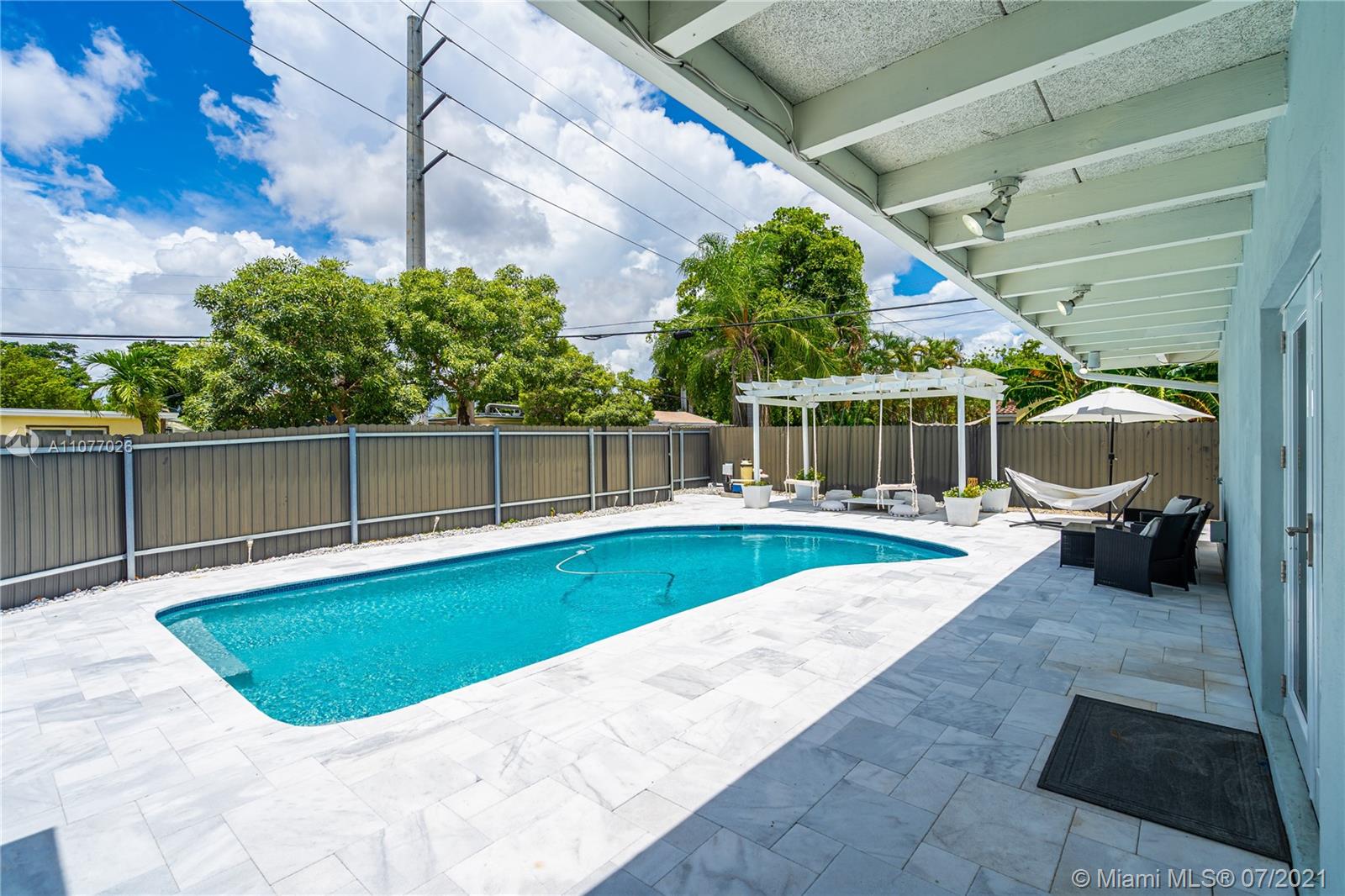Immaculate single family Hollywood home. This 3 bedroom 2 and half bathrooms is located on an oversized corner lot of 8,261sqft. This house offers a backyard space where you can easily park a large boat and a circular driveway that fits multiple cars. Almost brand new roof that is only 3-5 years old. Upgraded kitchen with stainless steel appliances. House offers a separate laundry room located inside as well as a bonus storage room. This home offers a private paradise in your backyard, enjoy a barbecue, a dip in your salt water pool, and cool off under your pergola. Property is located within 10 minutes from Hollywood Beach, 5 minutes from I-95, 15 minutes from Fort Lauderdale Airport, and close to many shopping centers and entertainment.