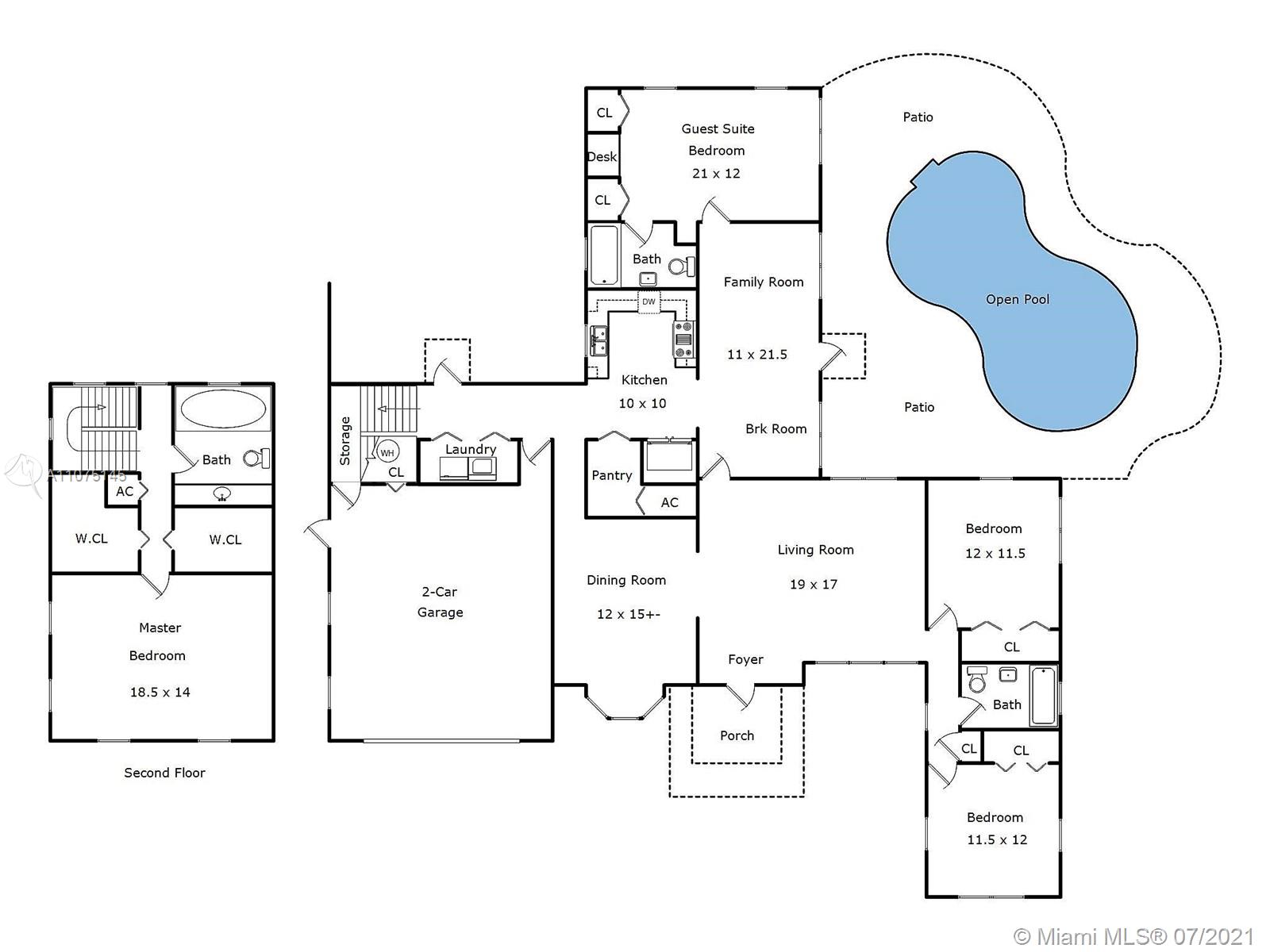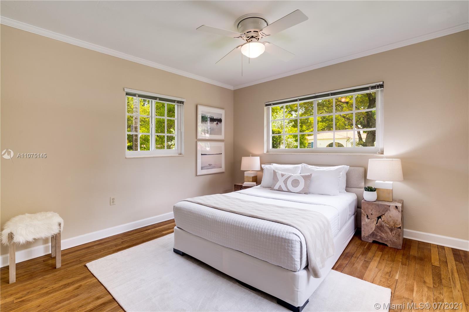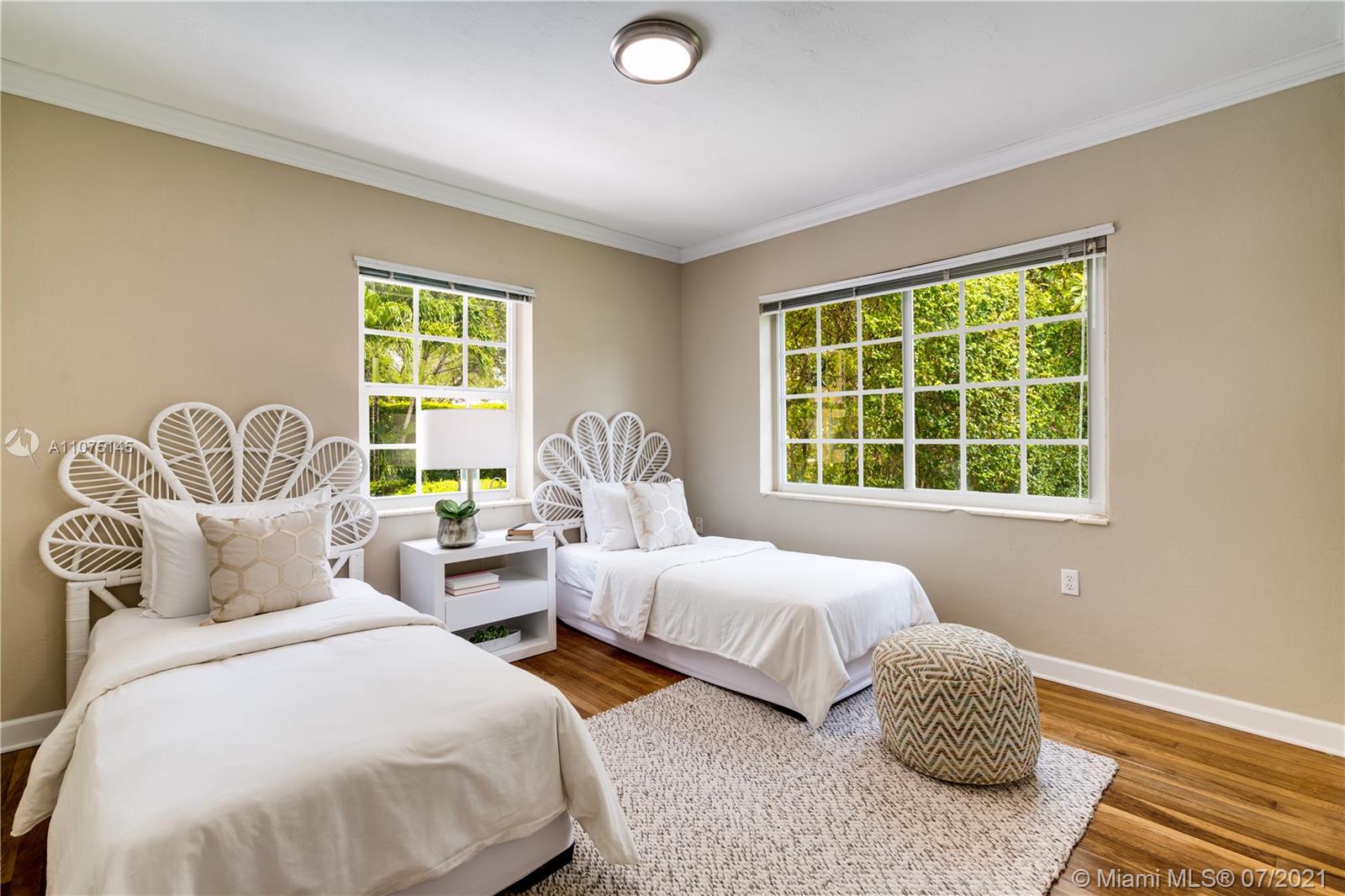 Urban living with the benefits of suburban space! Less than a 1/4 mile from Miracle Mile & all its restaurants & shops, lies this beautifully maintained & updated Coral Gables home on a 12,000 sf lot. Elegant brick circular driveway & front porch invite you in. A true split floor plan, there is an upstairs private primary suite w/free-flowing natural light, 2 walk-in closets, & a jacuzzi tub. There is a second en-suite bed/bathroom downstairs. Another 2/1 bedroom wing has original hardwood floors & plenty of windows for your vitamin D fix! There are family & living rooms w/impact doors/windows overlooking sizable yard w/free-form pool & deck. Spacious 2 car garage w/plenty of storage, & interior laundry. Lovingly cared for home ready for new family to make memories! A Very Special Home.
