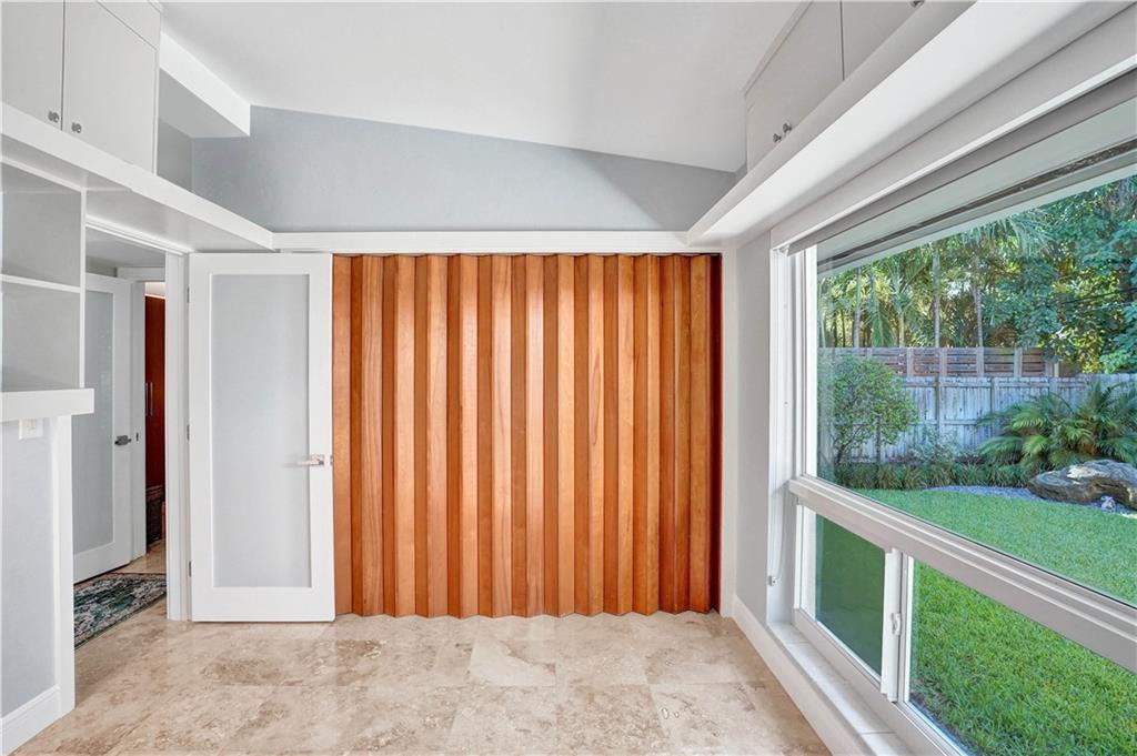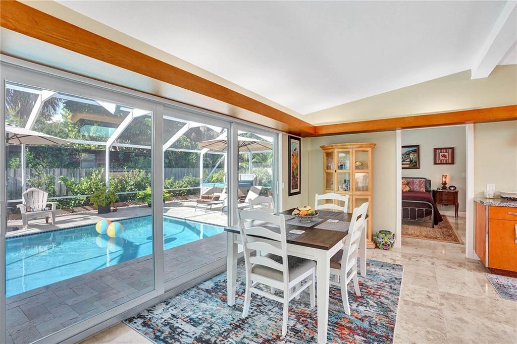 Mid-Century modern 3 bedroom 2 bath home located East of Bayview in Coral Ridge. Impact windows and doors, roof 2017, vaulted ceilings, tons of natural light, wood details throughout, split bedroom floorplan and more. Gourmet kitchen boasts ample cabinetry and stainless steel appliances. Spacious master suite with sauna in master bath. Large backyard with screened-in pool and patio plus separate grass area. Beautifully landscaped front and backyard. Located in Bayview Elementary school district.