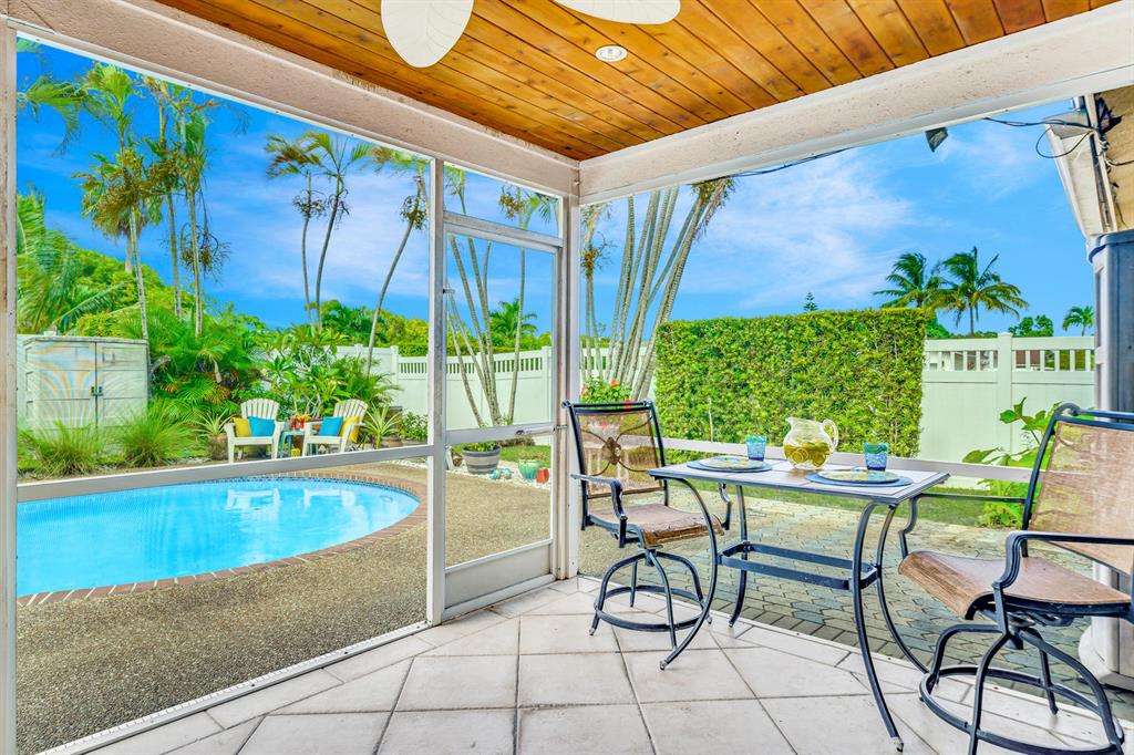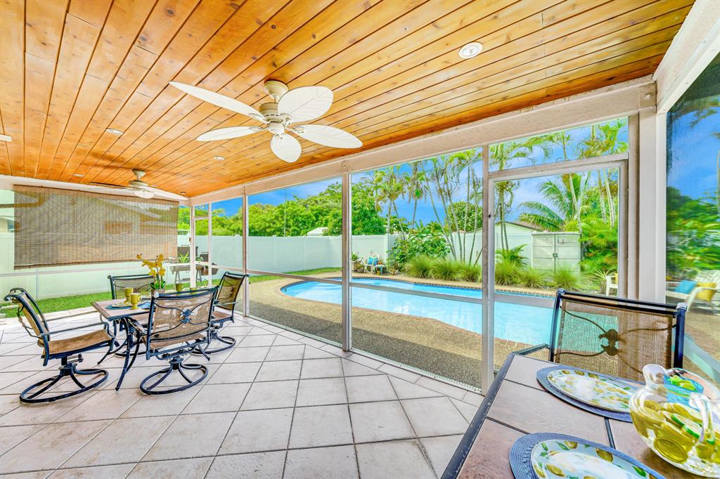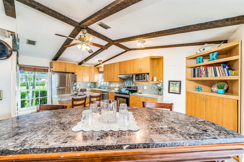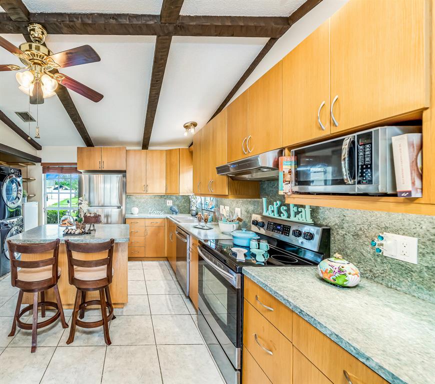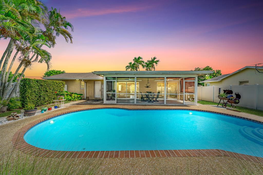 WOW!!! True 3 bedroom, 2 bath, POOL Home on a private corner lot w/2 driveways. Home features an open & spacious floor plan w/huge vaulted/cathedral ceilings w/faux wood beams in living-room & kitchen. Impact windows & front door. Custom gourmet kitchen w/stainless appliances, center island, sunny breakfast area, lots of counter space/many cabinets, plus large pantry. Tile throughout living areas and 1 bedroom. Laminate flooring in the other bedrooms. Large screened in/covered patio with access from kitchen and living room through sliding doors. New PVC Fenced in tropical retreat backyard. Sparkling pool was recently diamond brighten & has new shiny blue tile. Tons of beautiful landscaping. Covered/screened in patio w/ceiling that is tongue & groove cedar wood w/recessed lighting