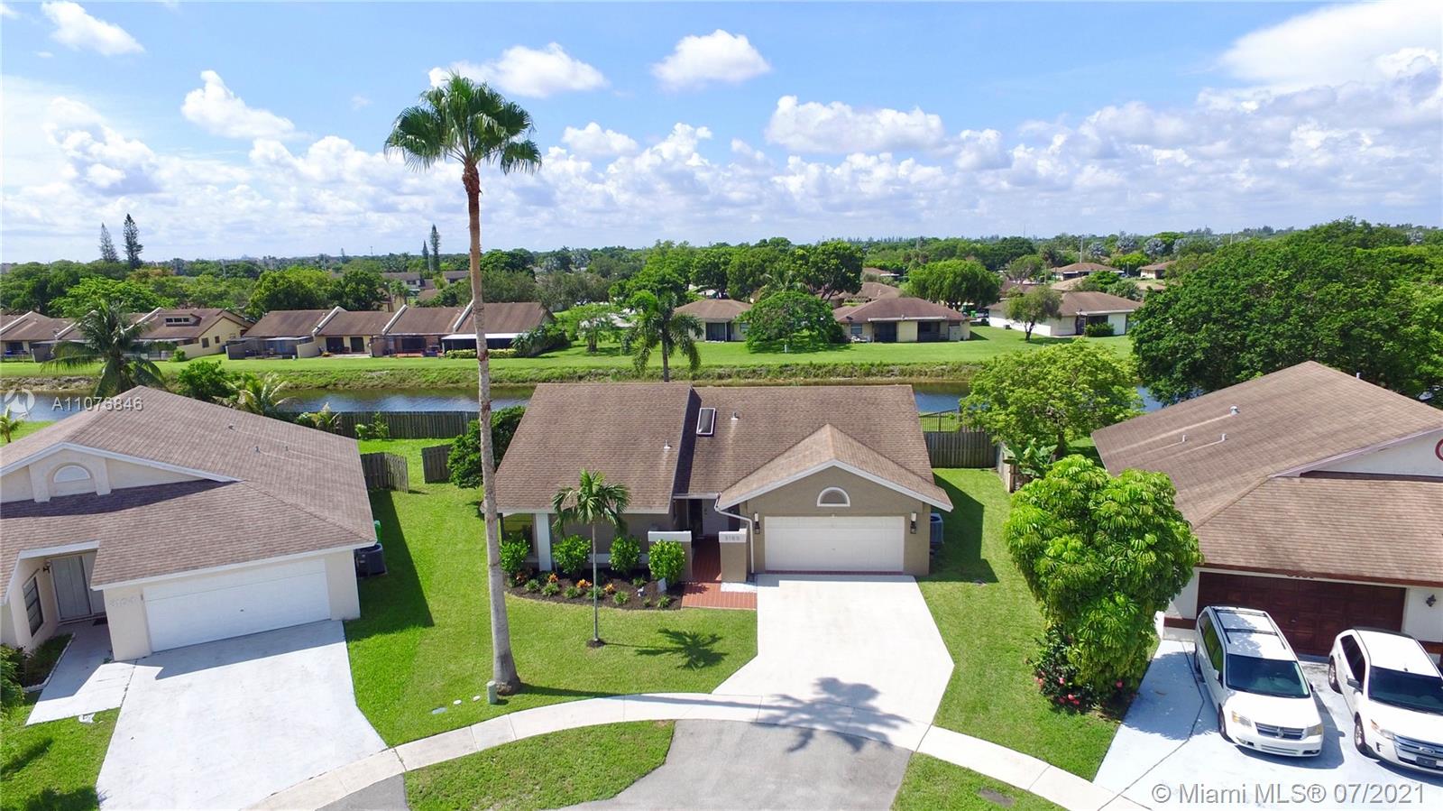 Resting on a quiet cul-de-sac, Casa de Palma features a floor plan that flows organically from one room to the next. The welcoming foyer is infused with natural light. This spacious waterfront home is both chic and charming and features three bedrooms, two bathrooms plus a den. The kitchen is outfitted with stainless steel appliances and granite countertops. The oversized master bedroom has a walk in closet, dual sinks and a step down shower. The interior merges seamlessly with the outdoors. The large fenced backyard creates a tranquil setting that is also great for entertaining and has room for a pool. Located in West Sunrise this excellent neighborhood has low HOA fees, a community pool and is in close proximity to Sawgrass Mills Mall, entertainment, dining and schools!