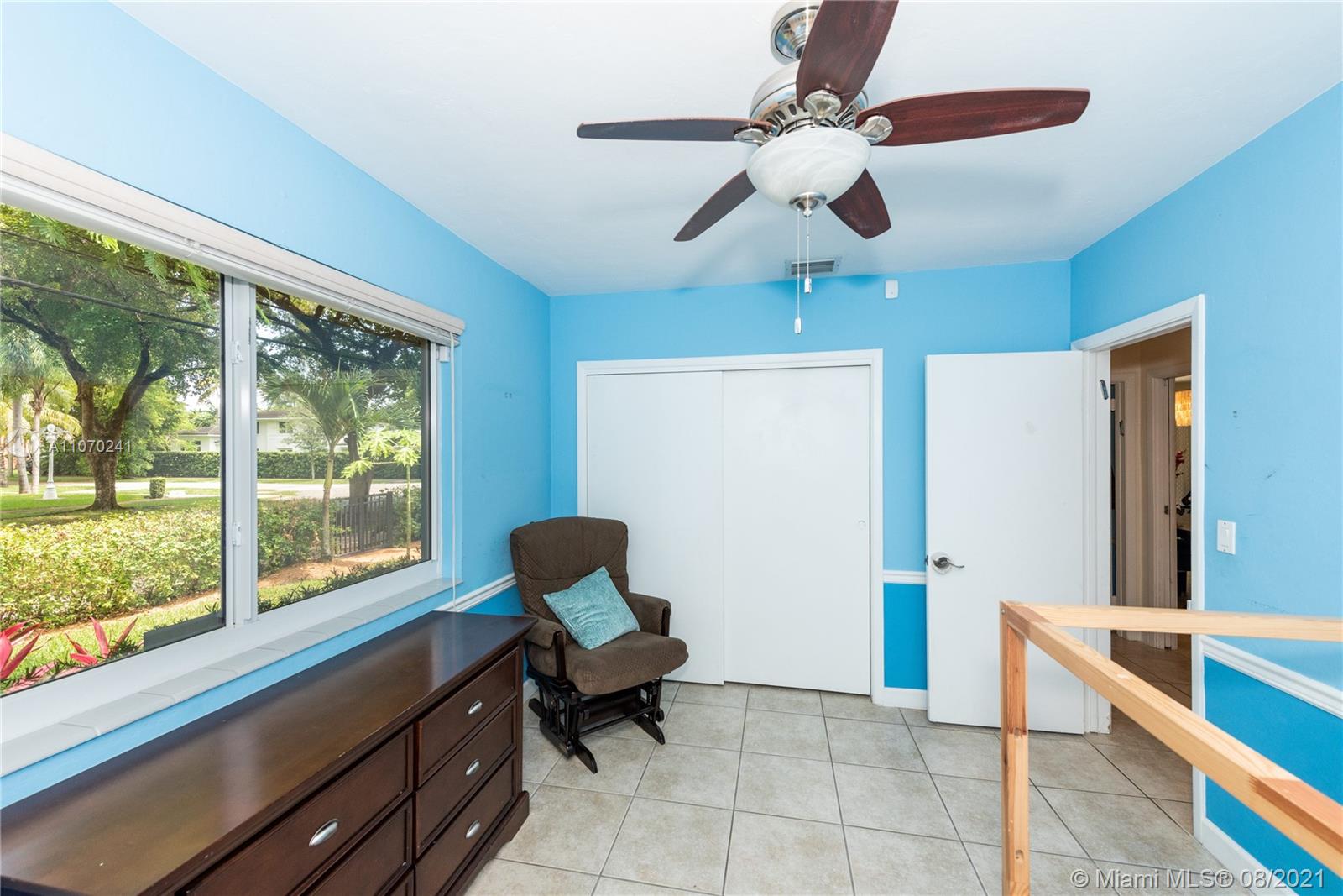 Quiet location on a tree-lined street in north Gables. Updated 4 bdrm/2 bath home on a large corner lot just off Venetian Terrace from Granada.. impact windows. Large living rm with French doors to patio and yard. Lots of light throughout. Master bedroom/bath south off Dining Room. Two bedrooms and bath off the front hall. The fourth bedroom has double Fr doors at one end of the Family room; Newer, all-white kitchen with Italian cabinetry flows to the breakfast area with many more cabinets. Oversized one-car garage. 2014 Adj. sq. ft. on almost an 8000 sq. ft. lot. Lovely side yard but no room for a pool as the home is on a corner. Open floor plan. Easy to show. One of the best-priced homes in the Gables and a great value for this choice location west of Columbus.