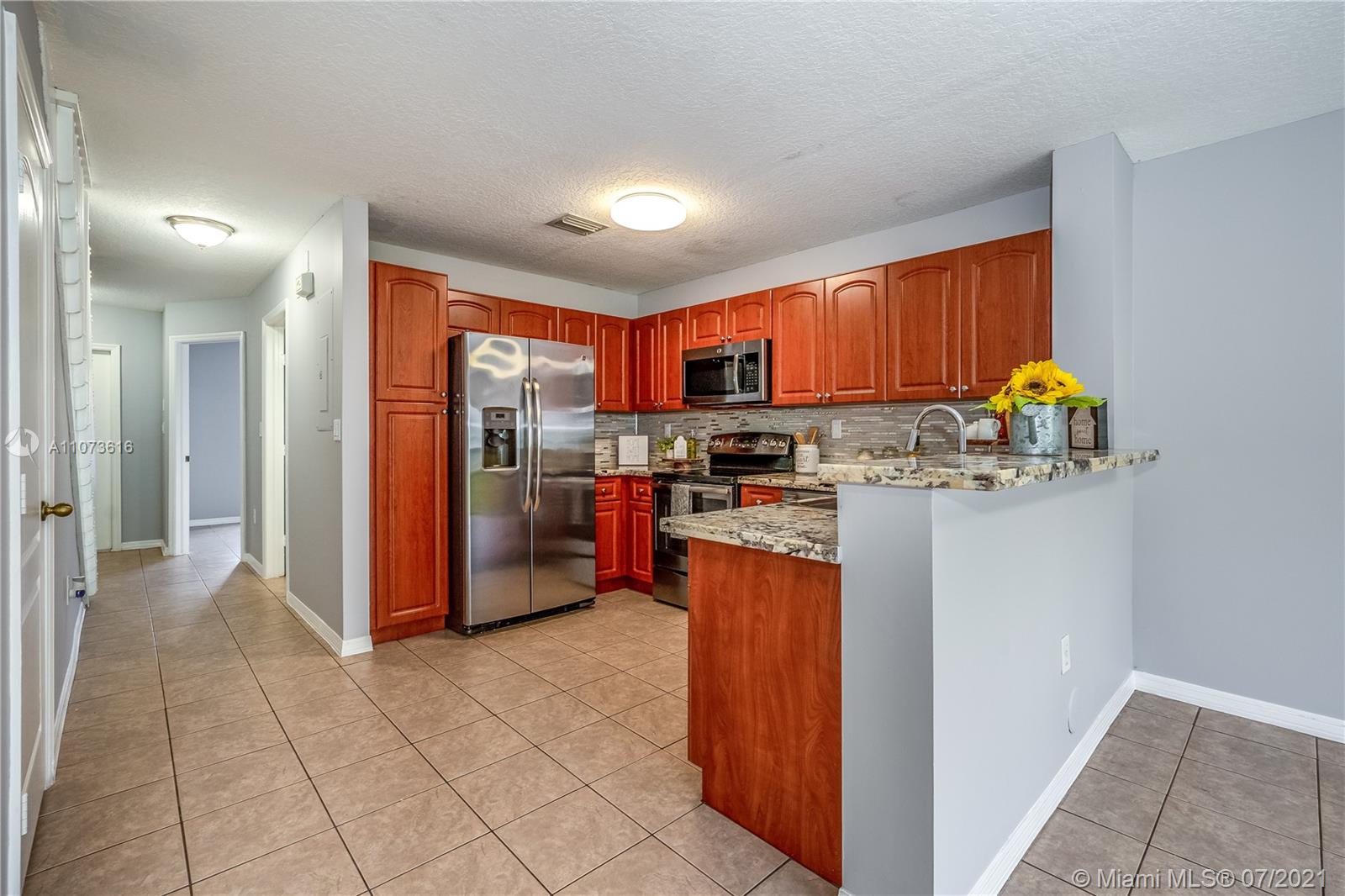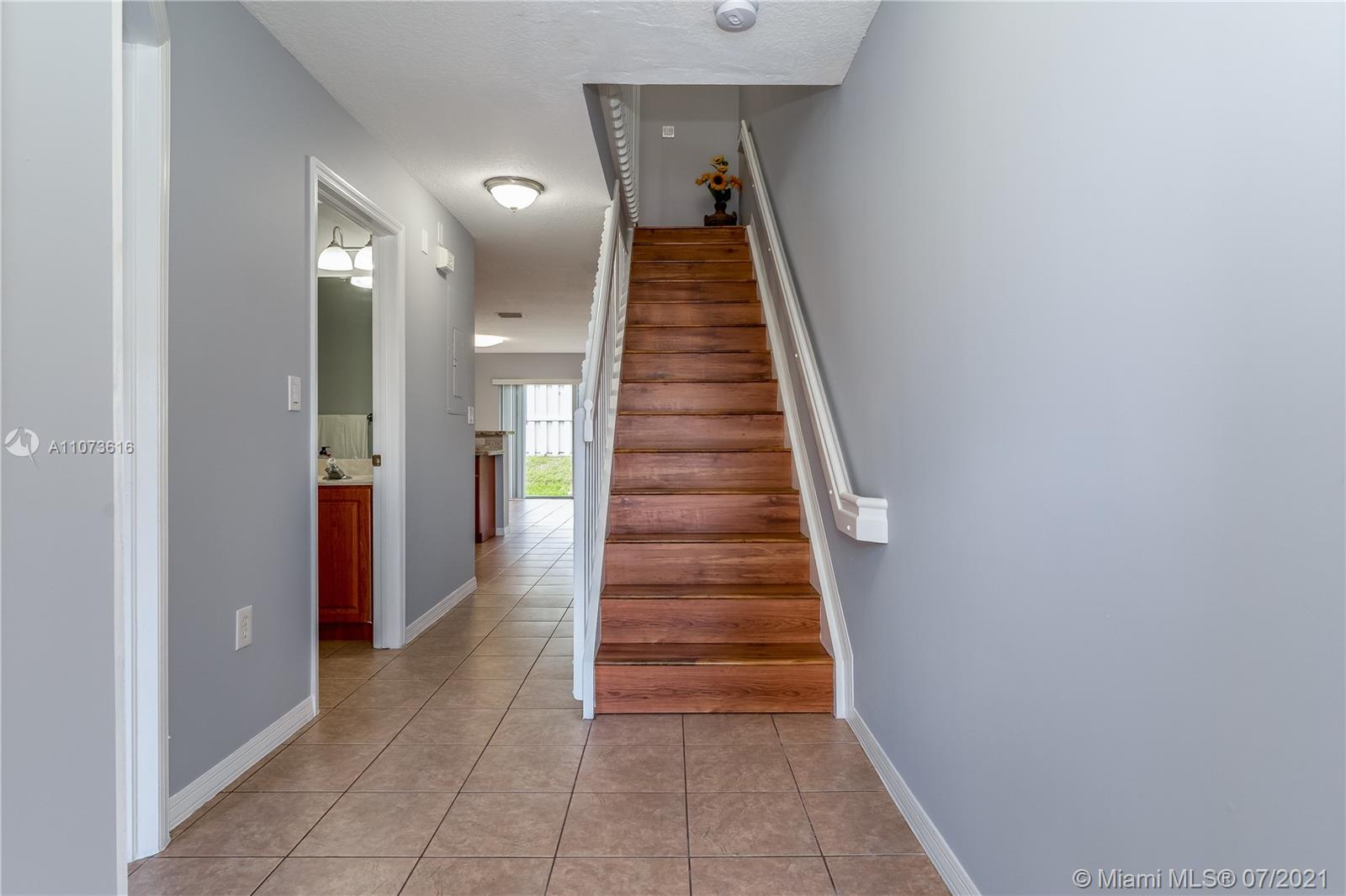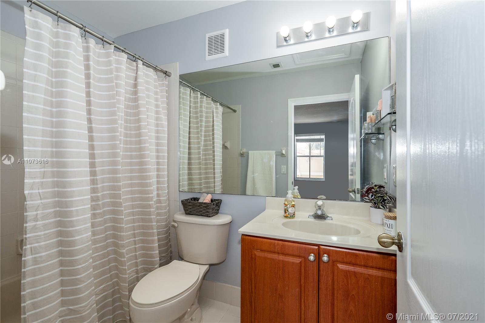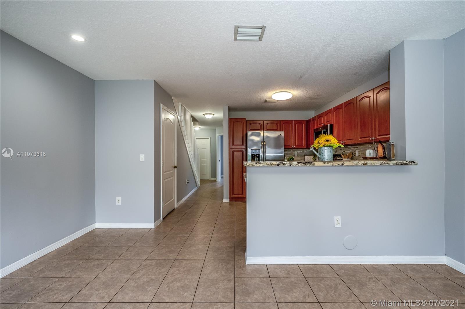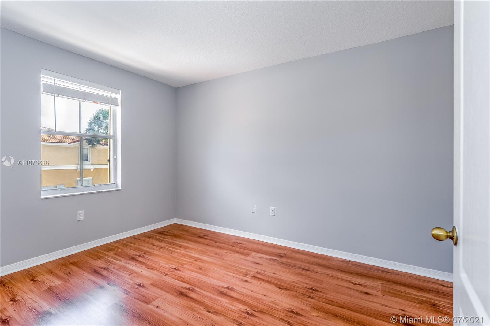 Amazing 2-story townhouse with 3 bedrooms and 3 full bathrooms located in one of Miramar's premier gated communities, Melrose Point at Monarch Lake. This beautiful home features an open kitchen w/ granite countertops and has one bedroom and one full bath located on the 1srt floor for your convenience. Master bedroom features his/her closets & a private balcony. Very well-maintained home with lots of light, ceramic tiles downstairs and laminate floor upstairs. Entire unit is freshly painted. Full-size washer & dryer conveniently located inside the unit. Community offers maintained lush landscaping with plenty of amenities: pool, gym, child play area, tennis court and conference room. Great location close to I-75, Turnpike, school and shopping in the heart of Miramar. This won't last long!!