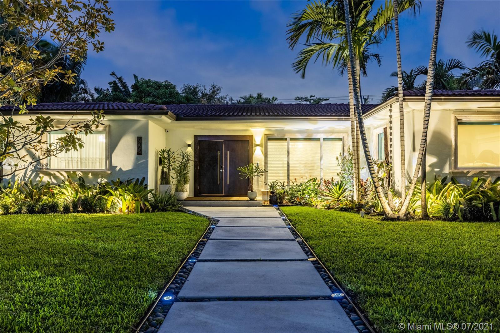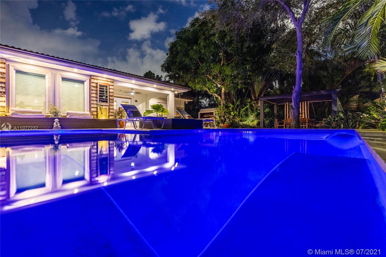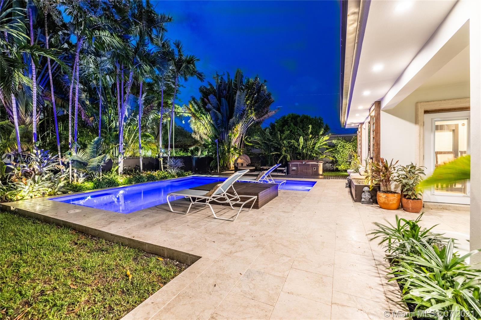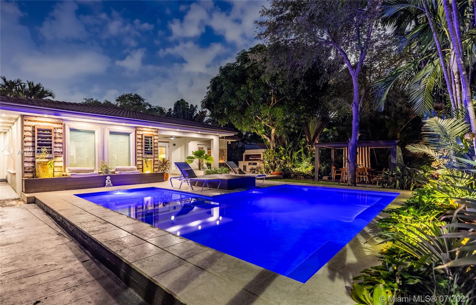 Welcome to Moondance! Awaken your inner zen in this updated spacious modern home—a tranquil retreat and entertainer’s delight, with amazing lush gardens, spectacular waterfall pool, hot tub, veranda, custom marble deck and grill. Inside, enjoy expansive triple-stacked open flow living and dining with huge media room. Home chefs will love the updated eat-in oversized kitchen. Four split bedrooms for extra privacy with triple en-suites, including one with its own fireplace and French doors opening to the pool deck—perfect for slipping out on a marvelous night for a moondance! Great features: modern baths, new AC, impact windows-doors, new gutters, electronic blinds, sprinkler system and outdoor lighting to illuminate the spectacular selection of orchids, bromeliads and other tropical plants.