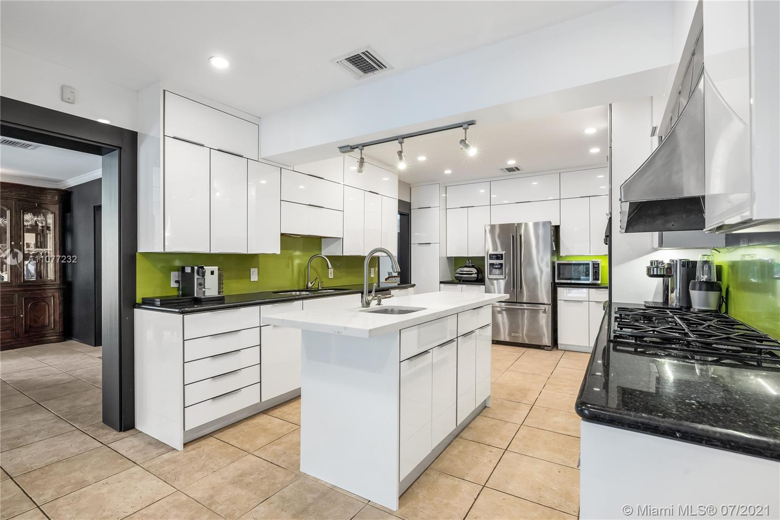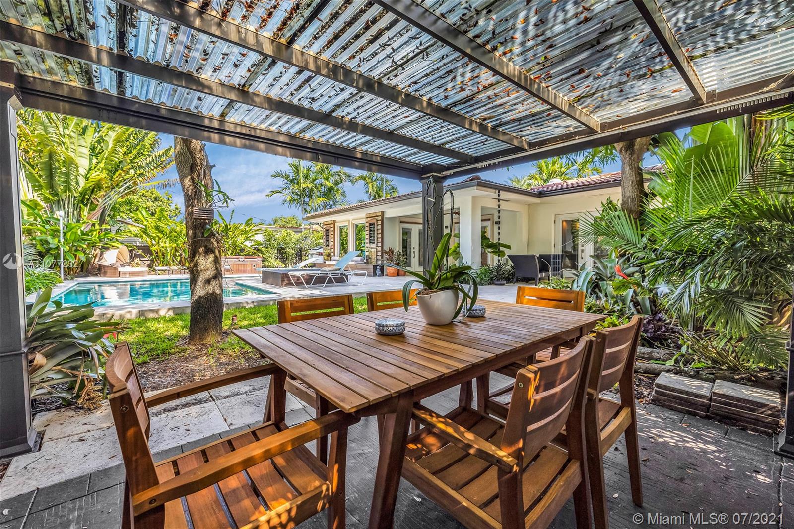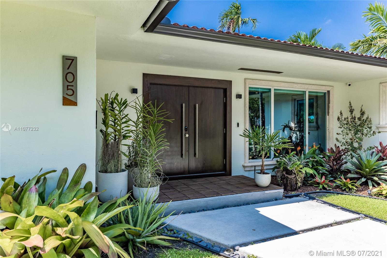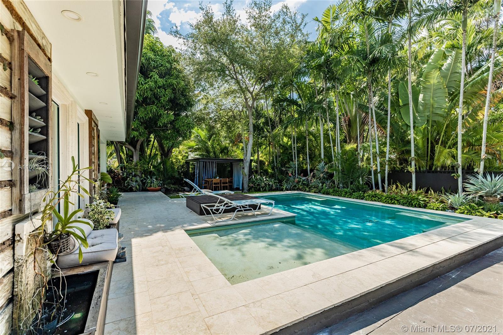 Welcome to Moondance! Awaken your inner zen in this updated spacious modern home—a tranquil retreat and entertainer’s delight, with amazing lush gardens, spectacular waterfall pool, hot tub, veranda, custom marble deck and grill. Inside, enjoy expansive triple-stacked open flow living and dining with huge media room. Home chefs will love the updated eat-in oversized kitchen. Four split bedrooms for extra privacy with triple en-suites, including one with its own fireplace and French doors opening to the pool deck—perfect for slipping out on a marvelous night for a moondance! Great features: modern baths, new AC, impact windows-doors, new gutters, electronic blinds, sprinkler system and outdoor lighting to illuminate the spectacular selection of orchids, bromeliads and other tropical plants.