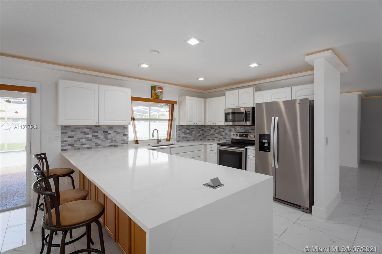 Fall in love with this beautifully updated house! In-direct lighting in every room. 2500 sq ft new tile. Gorgeous living area and formal dining space, with separate space for family room. Lovely patio with in-ground pool for relaxing. Marvelous Kitchen upgrade featuring new quartz countertops, tile back splash and under cabinet lighting. Bathrooms have been remodeled, double sinks and mirrors and rain shower in master. New 5 ton AC unit, Impact windows and doors, new smart thermostat, electrical panels, smart devices linkable to Alexa. Solid wood bedroom doors and custom made barn door in master. Come and make this home yours today!