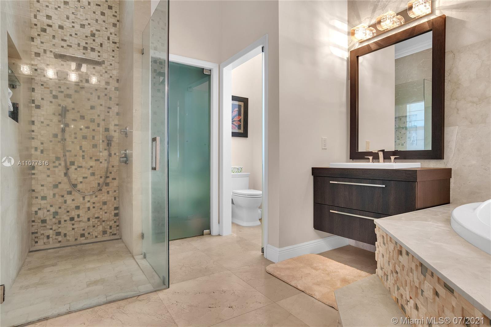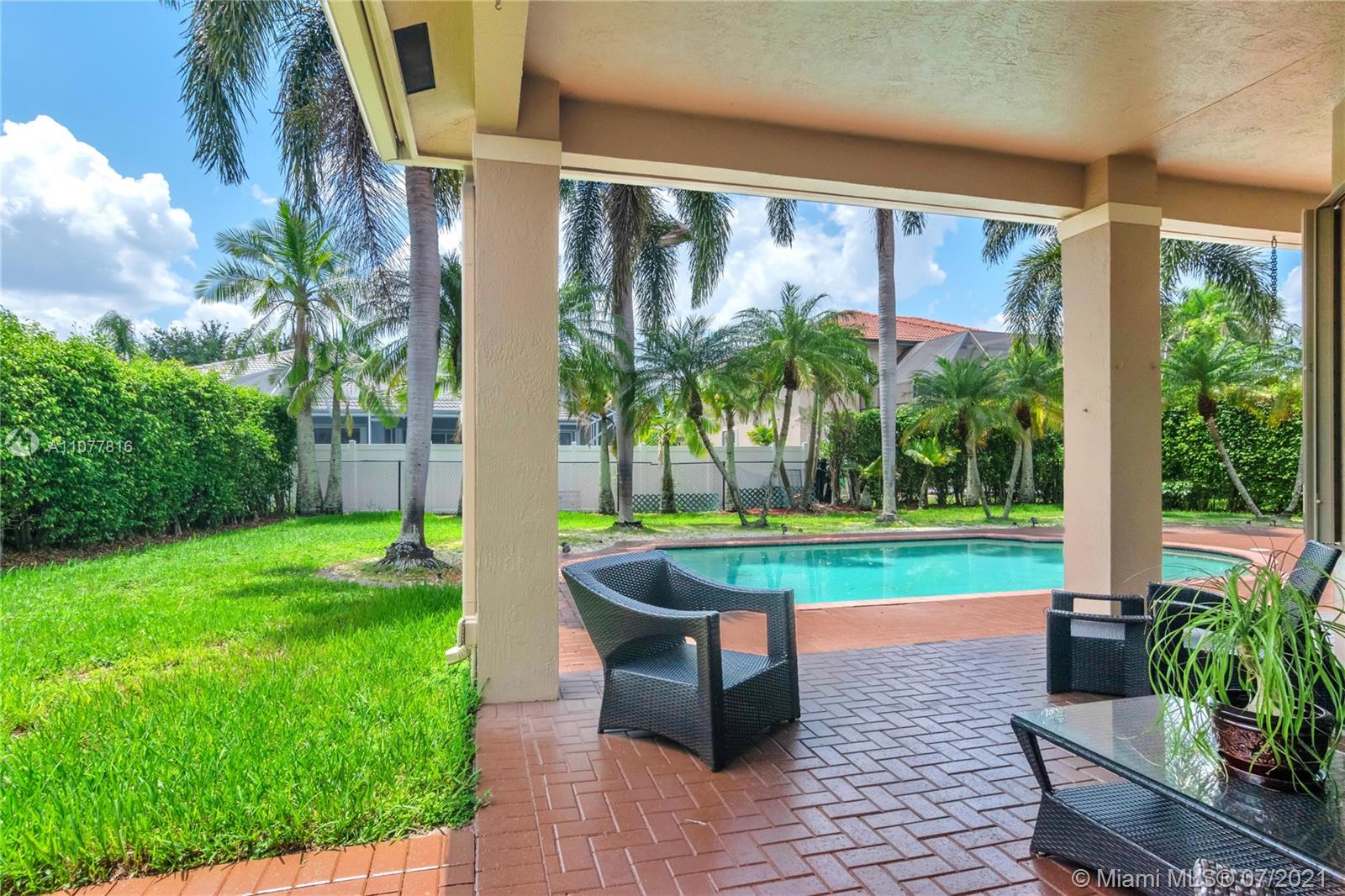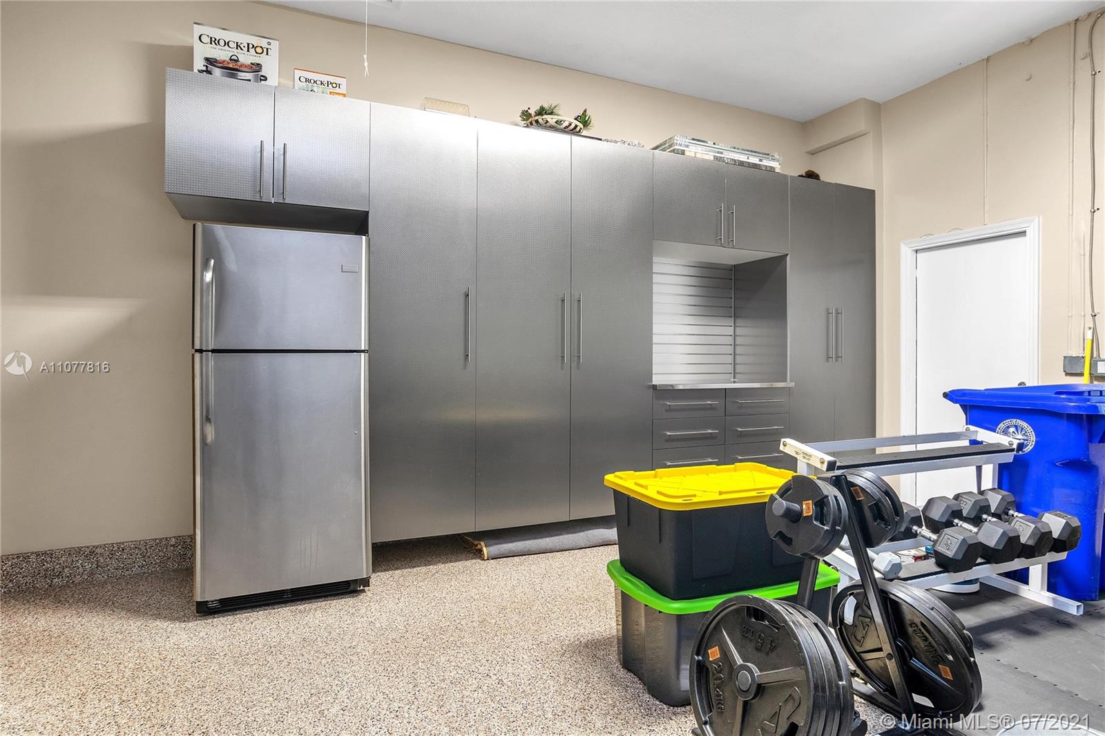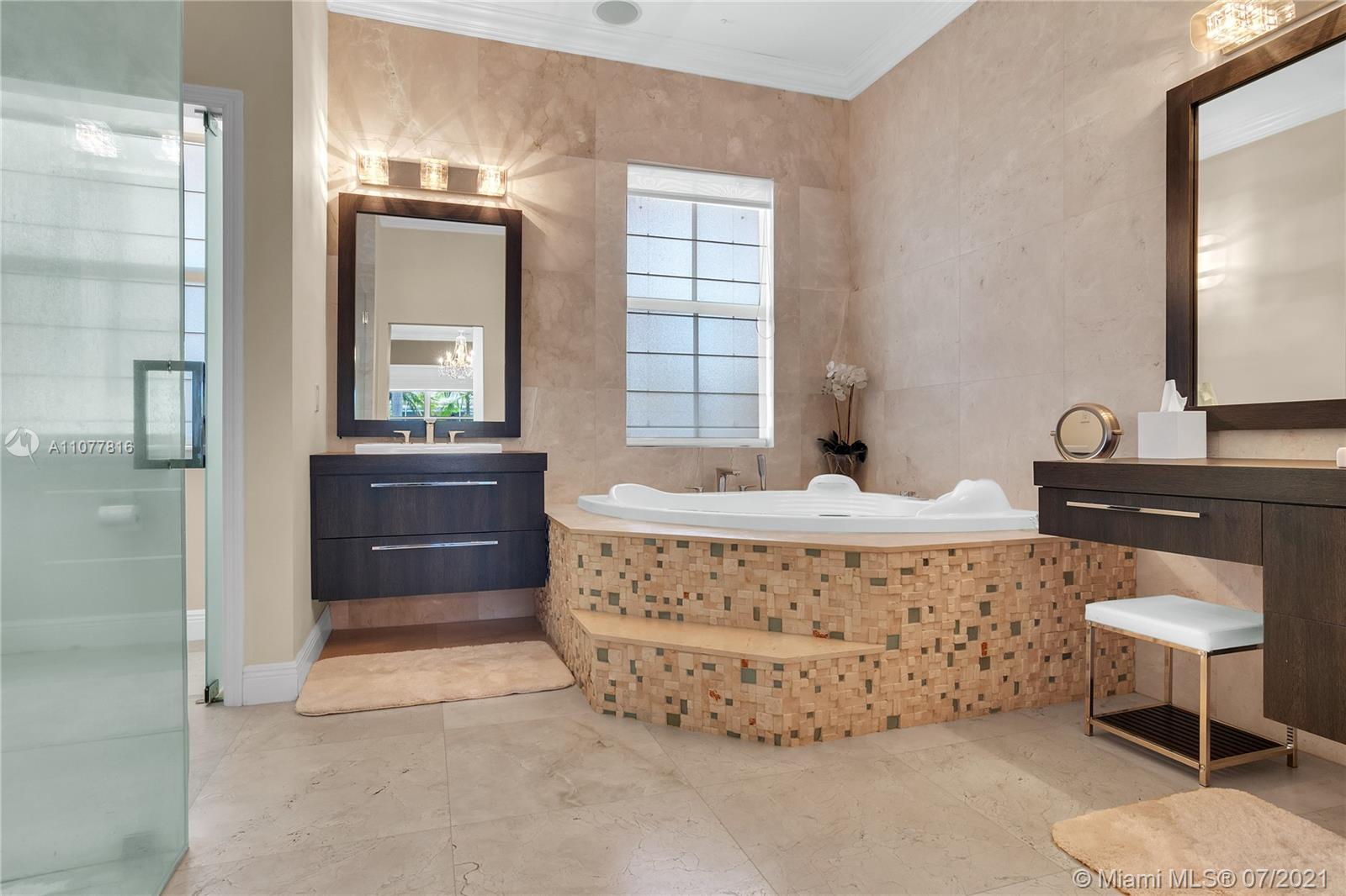 HERE IS THE PERFECT HOME waiting for you! nSingle Story house, gated community, upgraded kitchen espresso cabinets with quartz countertop, Kitchen aid stainless steel appliances, 4 door refrigerator, range hood, microwave, glass cooktop oven, wine cooler, gorgeous accent backsplash, walk-in pantry. Enjoy the spacious living room, dining room, and family room and connect through the covered patio and pool area. 3 car garage dress with Poxy flooring and Cabinets to storage, cameras, accordion shutters, UNIQUE lighting fixtures from Farrey's and ZGallerie all included. Crown molding covering every corner, and a lot more details to appreciate it every day. Large Master bedroom, bathroom with Jacuzzi Tub, 2 walk-in closets, marble floor, and unique details inside the shower. (NO Dishwasher)