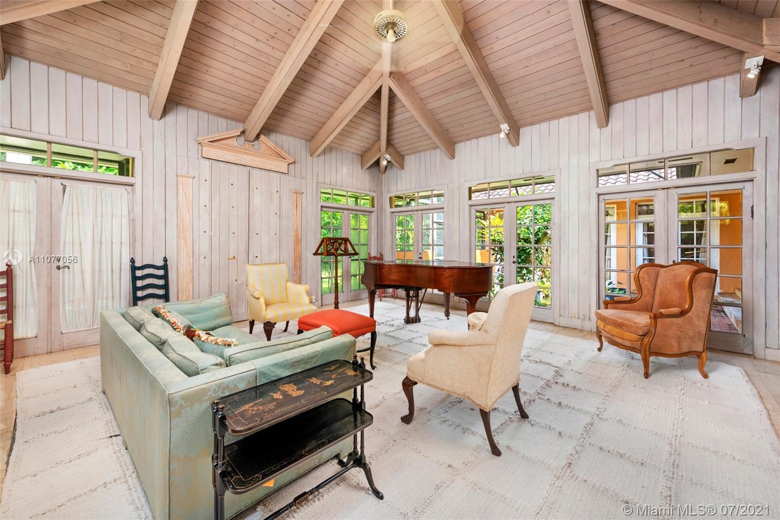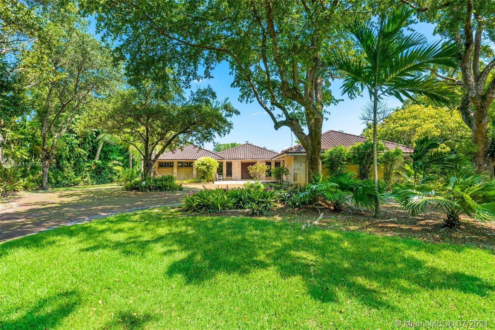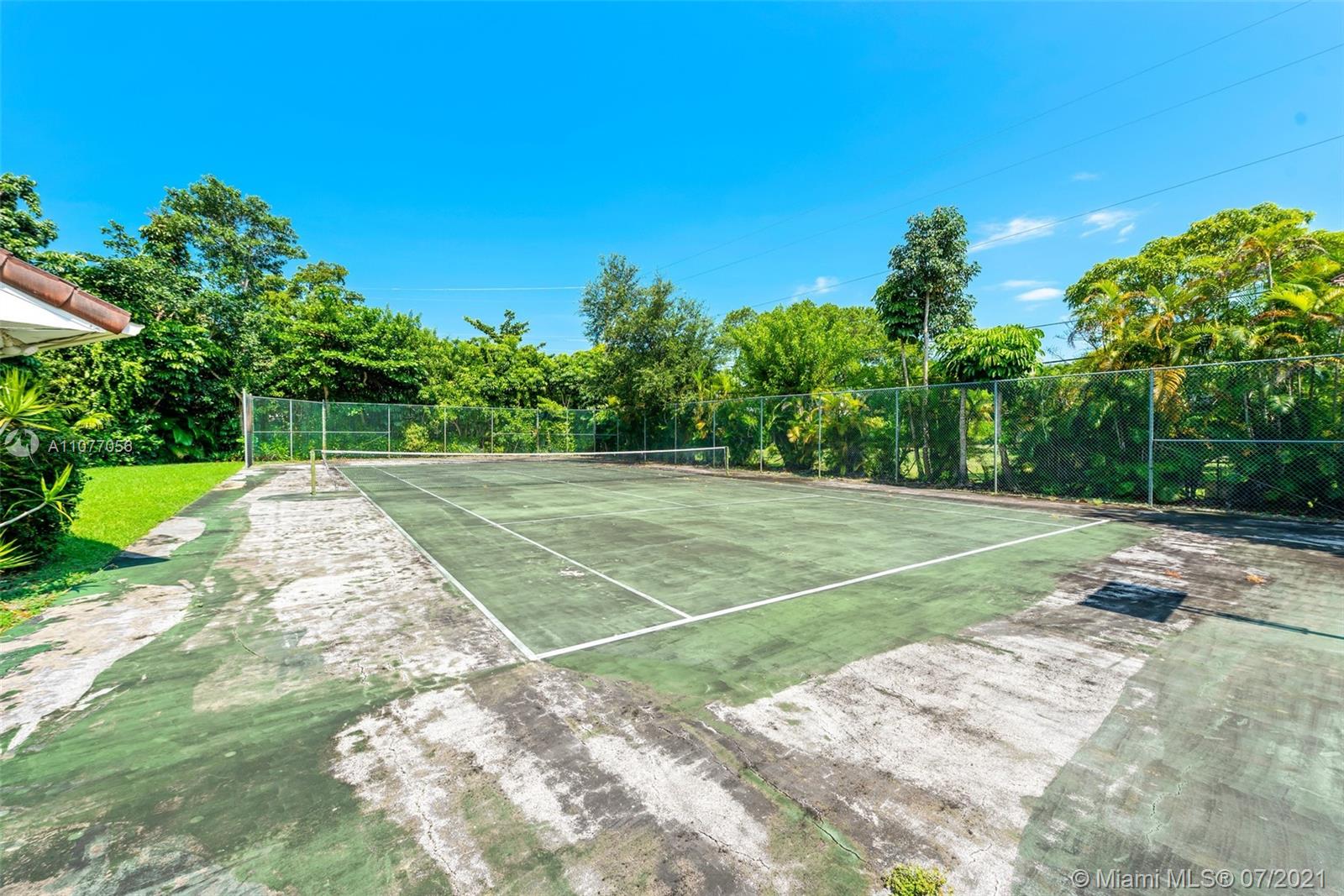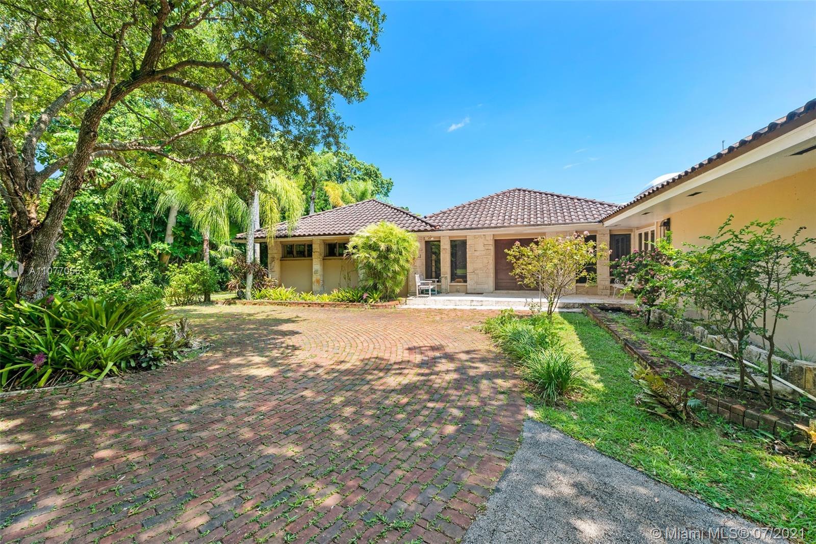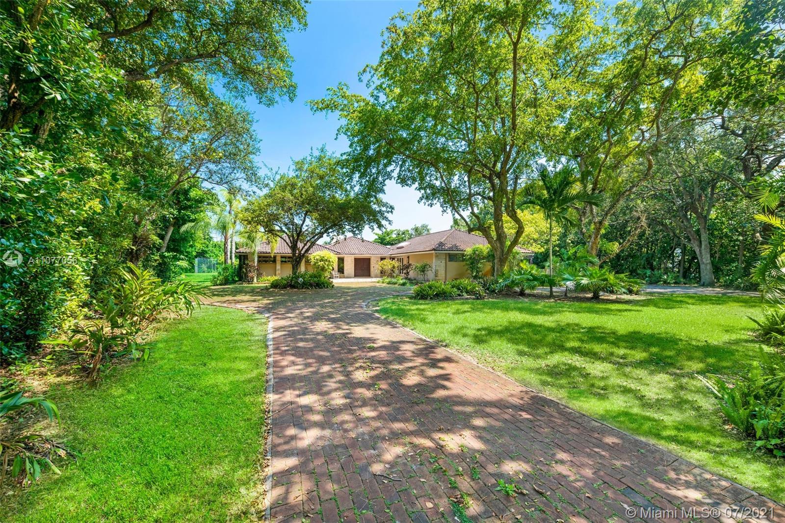A wonderful home on one of the most beautiful streets of Pinecrest is on the market for the very first time since it was constructed. The home was built like a fortress and is ready for a fantastic upgrade. Beautiful natural light pours into the home throughout its ceiling skylights found all around the home. The grand primary suite features an impressive double-height fireplace, vaulted ceilings, a romantic wall of French doors leading to a courtyard with greenery, oversized master bath and WI closets. Marble stone flooring and cathedral wood ceilings add a timeless elegance. There is also a library, Florida room, sun room, formal dining and living, tennis court and a gorgeous sunny screened pool deck. Wonderful lush grounds. Laundry and staff quarters. Newer AC system and roof.