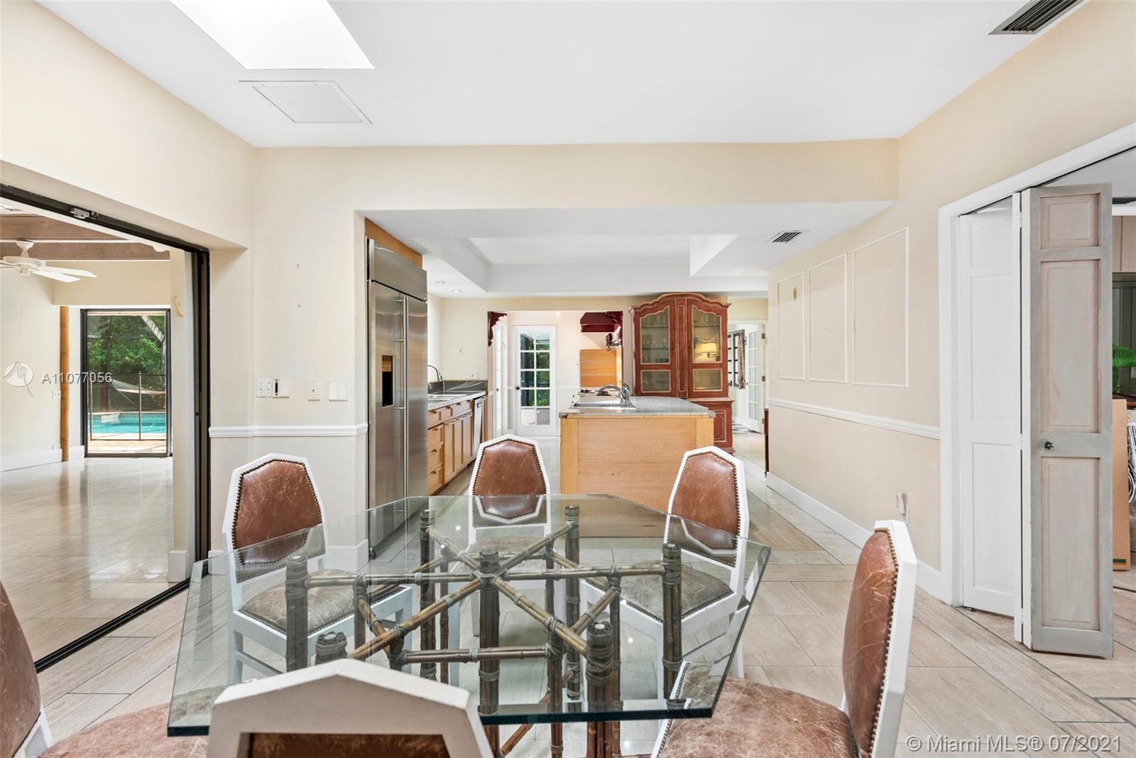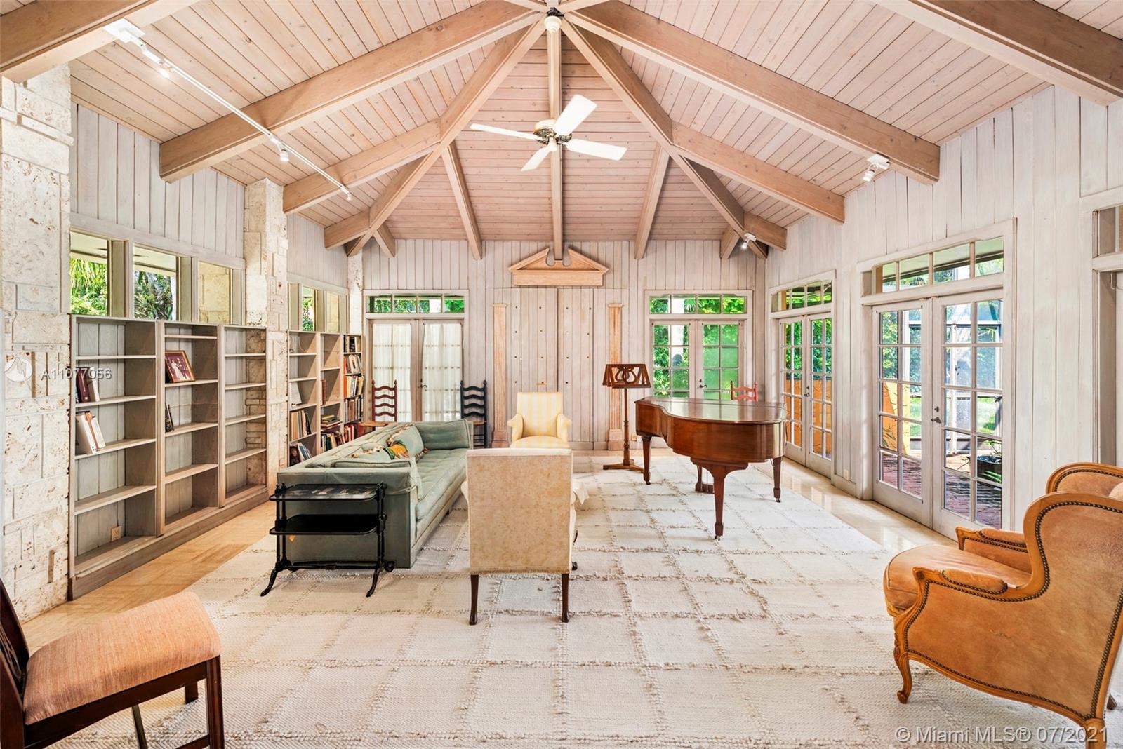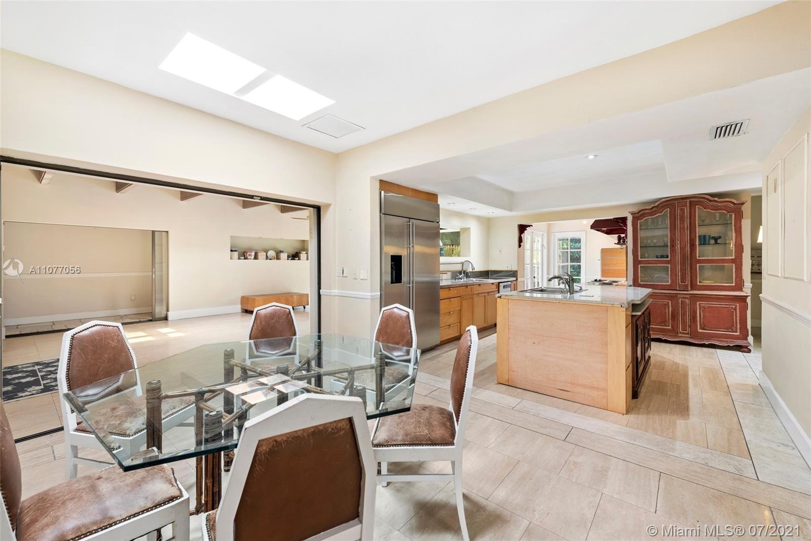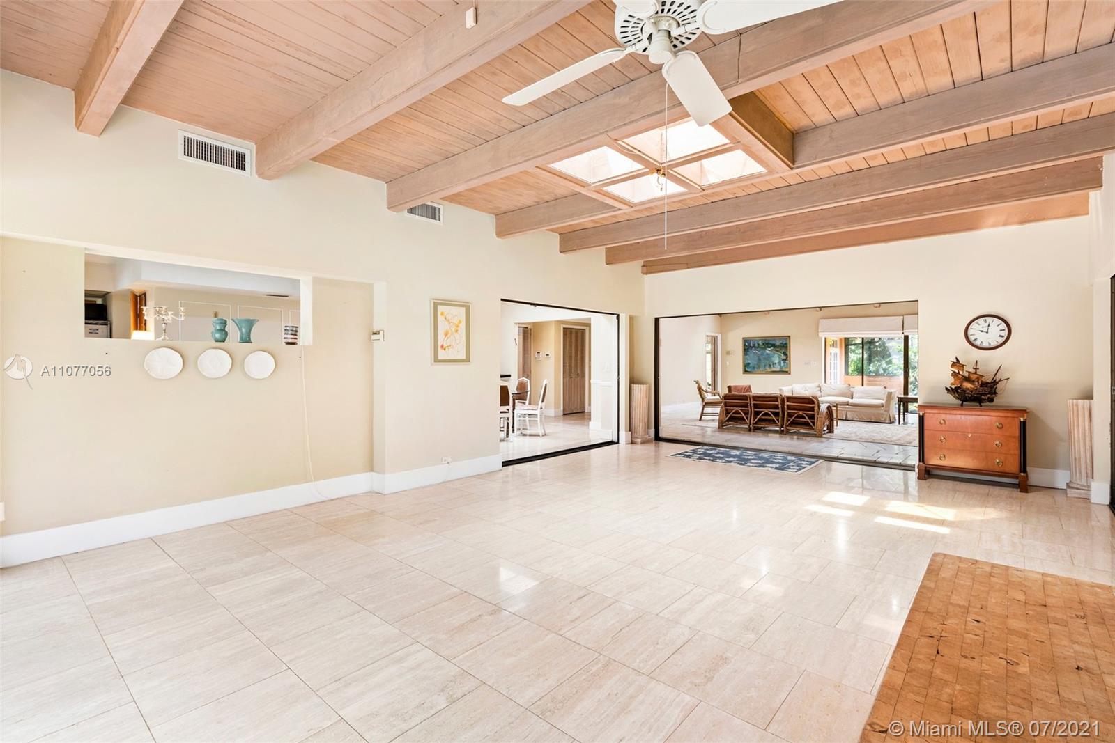 A wonderful home on one of the most beautiful streets of Pinecrest is on the market for the very first time since it was constructed. The home was built like a fortress and is ready for a fantastic upgrade. Beautiful natural light pours into the home throughout its ceiling skylights found all around the home. The grand primary suite features an impressive double-height fireplace, vaulted ceilings, a romantic wall of French doors leading to a courtyard with greenery, oversized master bath and WI closets. Marble stone flooring and cathedral wood ceilings add a timeless elegance. There is also a library, Florida room, sun room, formal dining and living, tennis court and a gorgeous sunny screened pool deck. Wonderful lush grounds. Laundry and staff quarters. Newer AC system and roof.