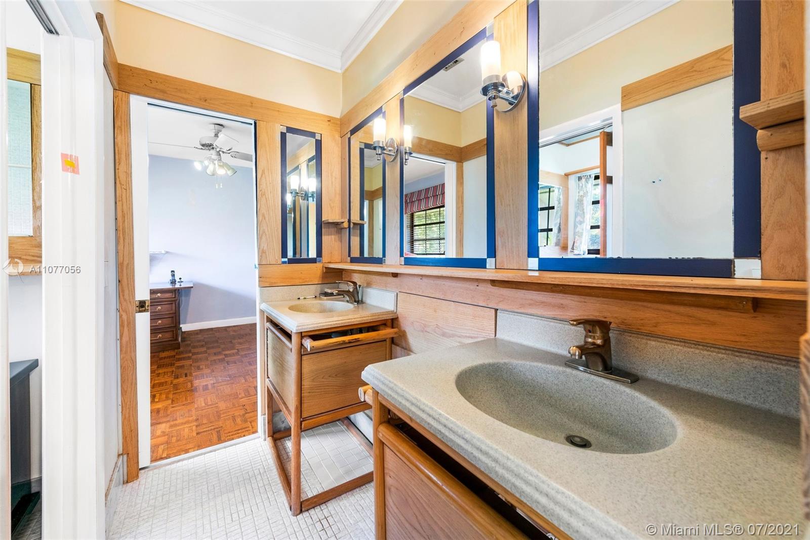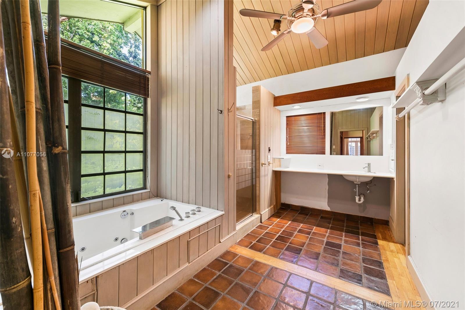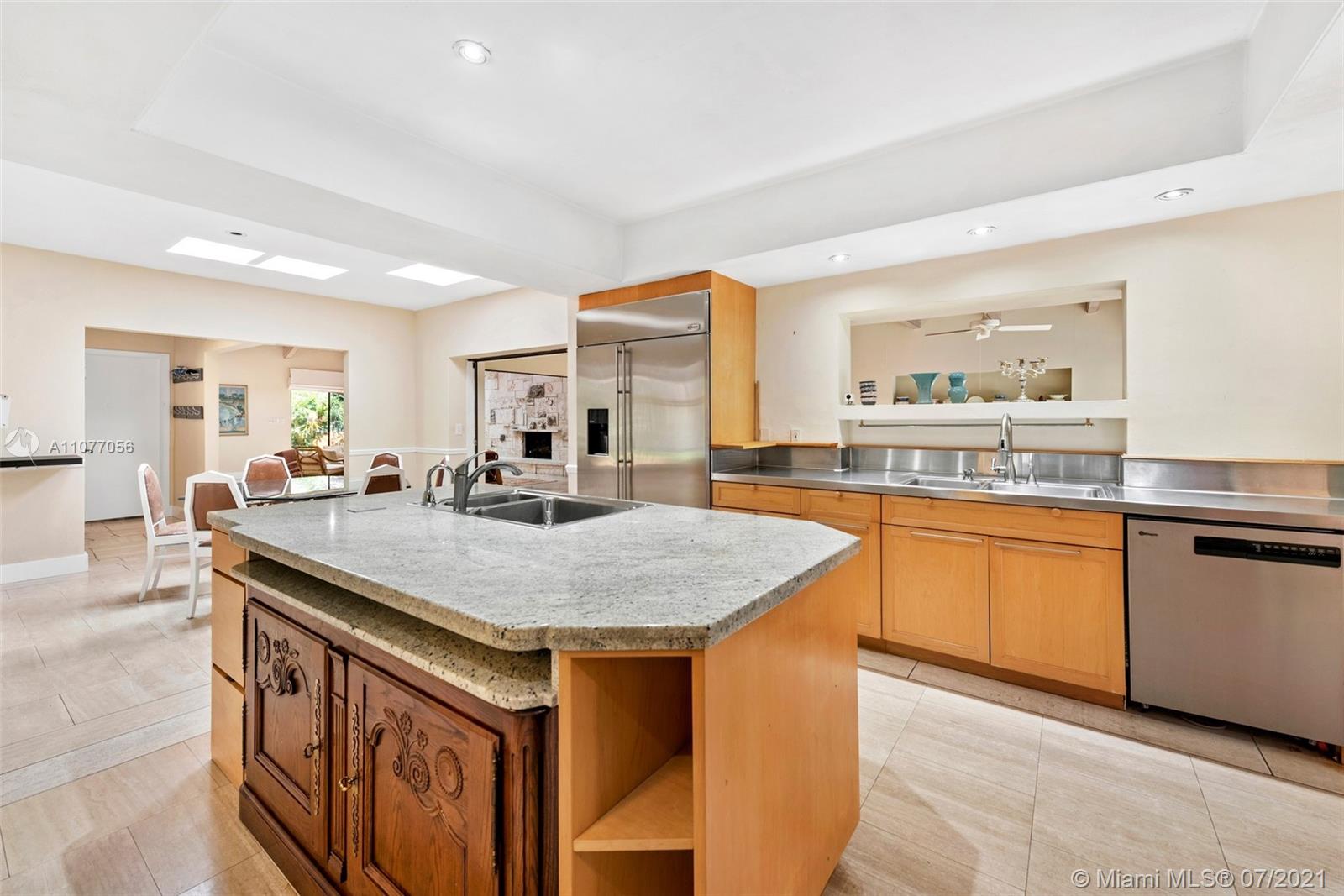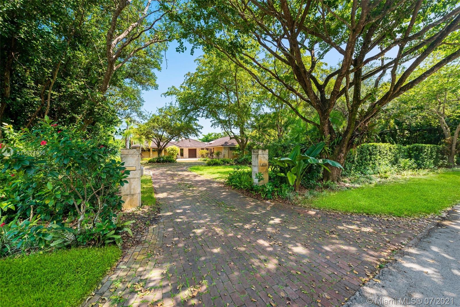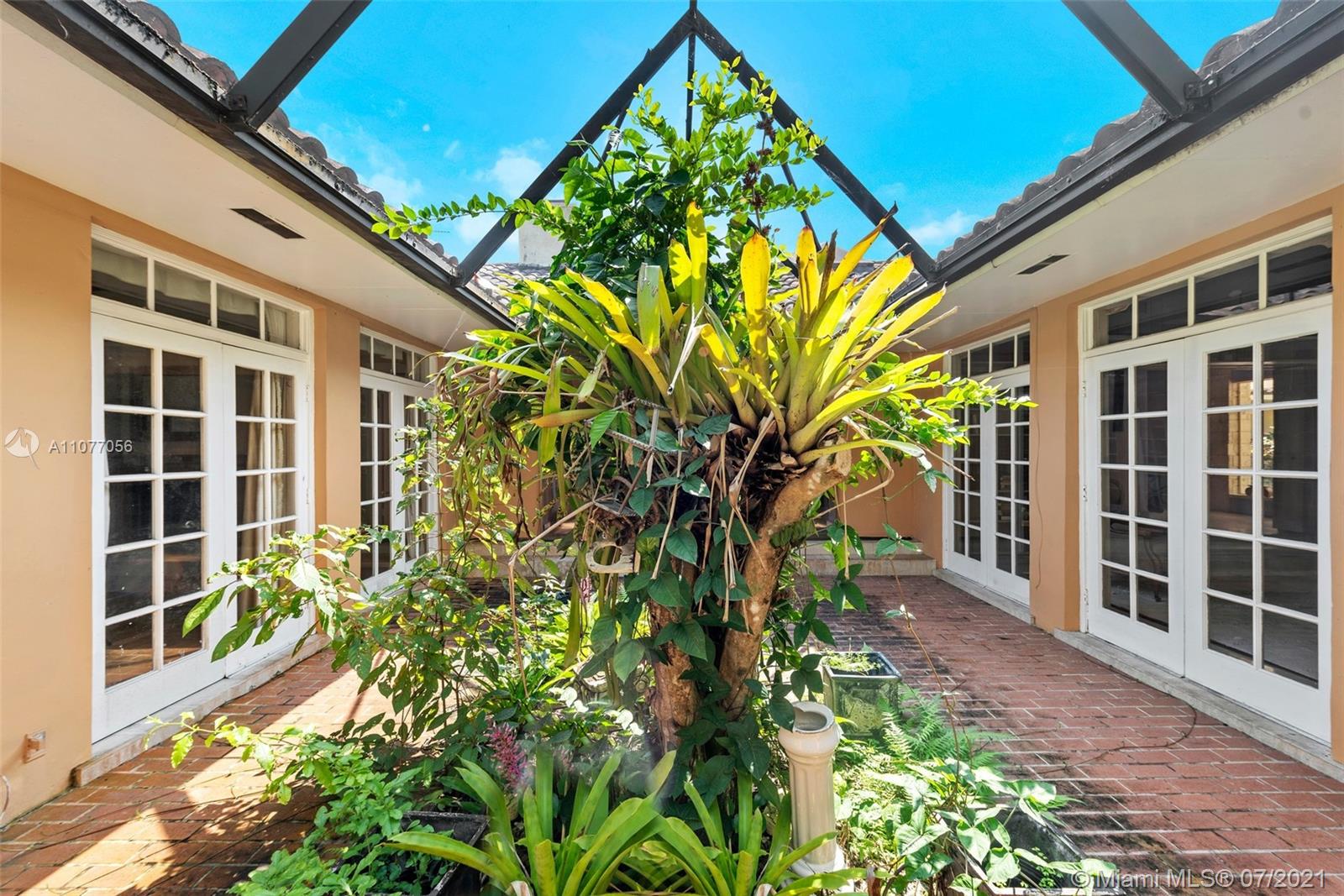A wonderful home on one of the most beautiful streets of Pinecrest is on the market for the very first time since it was constructed. The home was built like a fortress and is ready for a fantastic upgrade. Beautiful natural light pours into the home throughout its ceiling skylights found all around the home. The grand primary suite features an impressive double-height fireplace, vaulted ceilings, a romantic wall of French doors leading to a courtyard with greenery, oversized master bath and WI closets. Marble stone flooring and cathedral wood ceilings add a timeless elegance. There is also a library, Florida room, sun room, formal dining and living, tennis court and a gorgeous sunny screened pool deck. Wonderful lush grounds. Laundry and staff quarters. Newer AC system and roof.