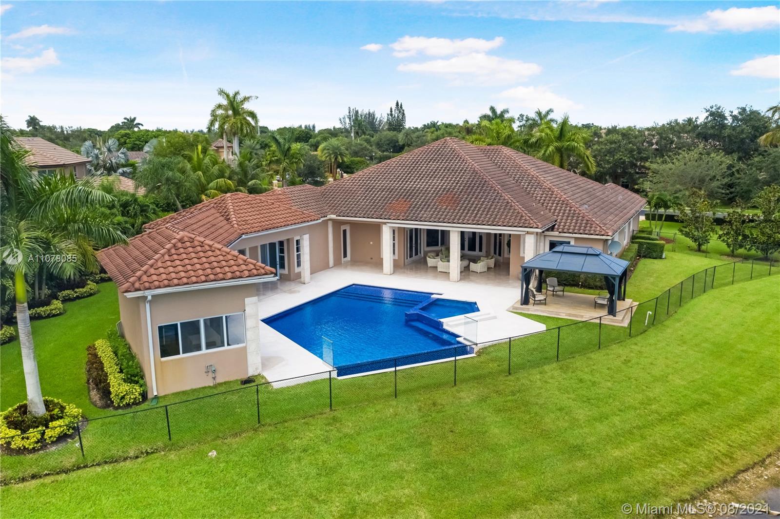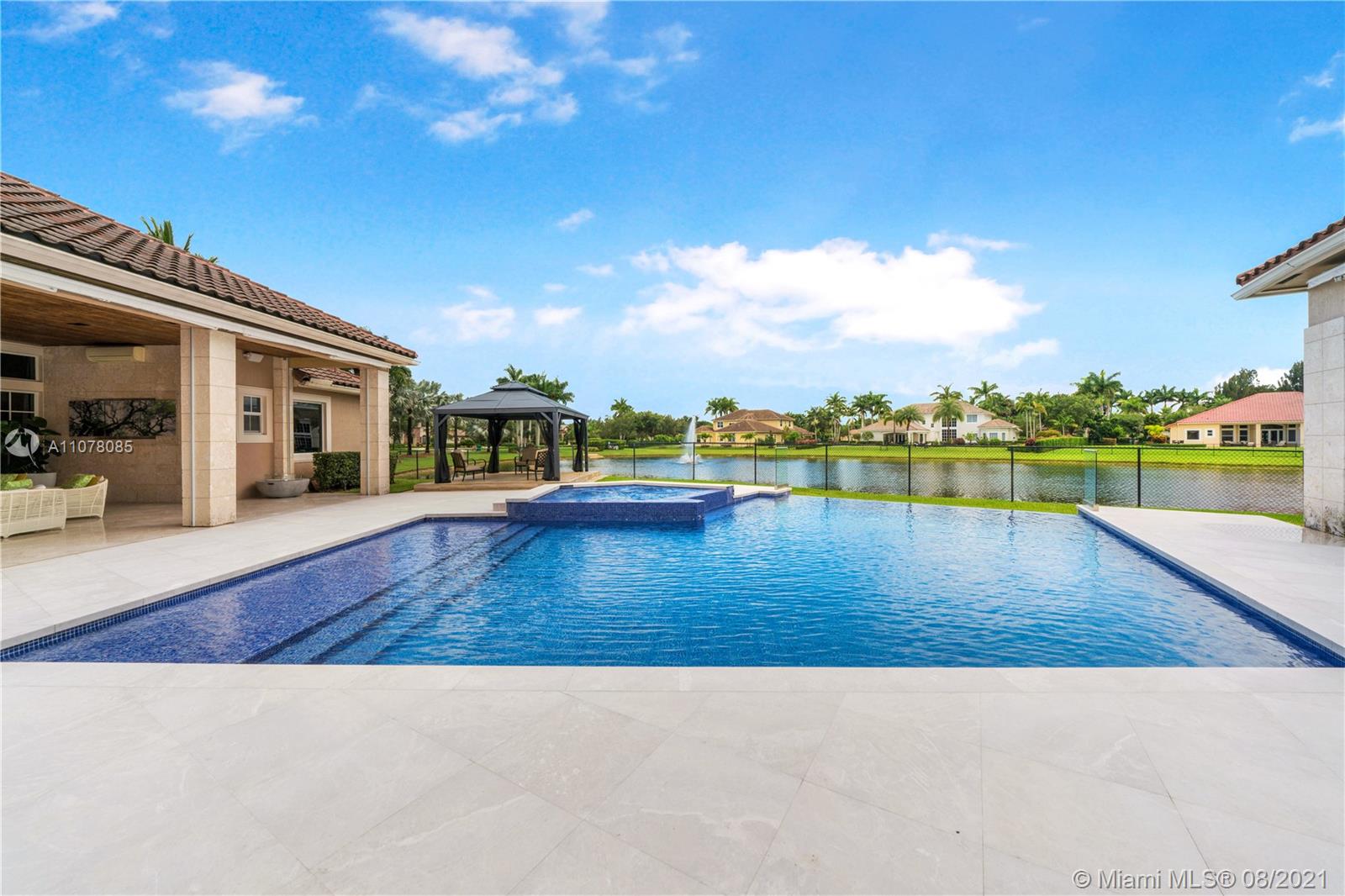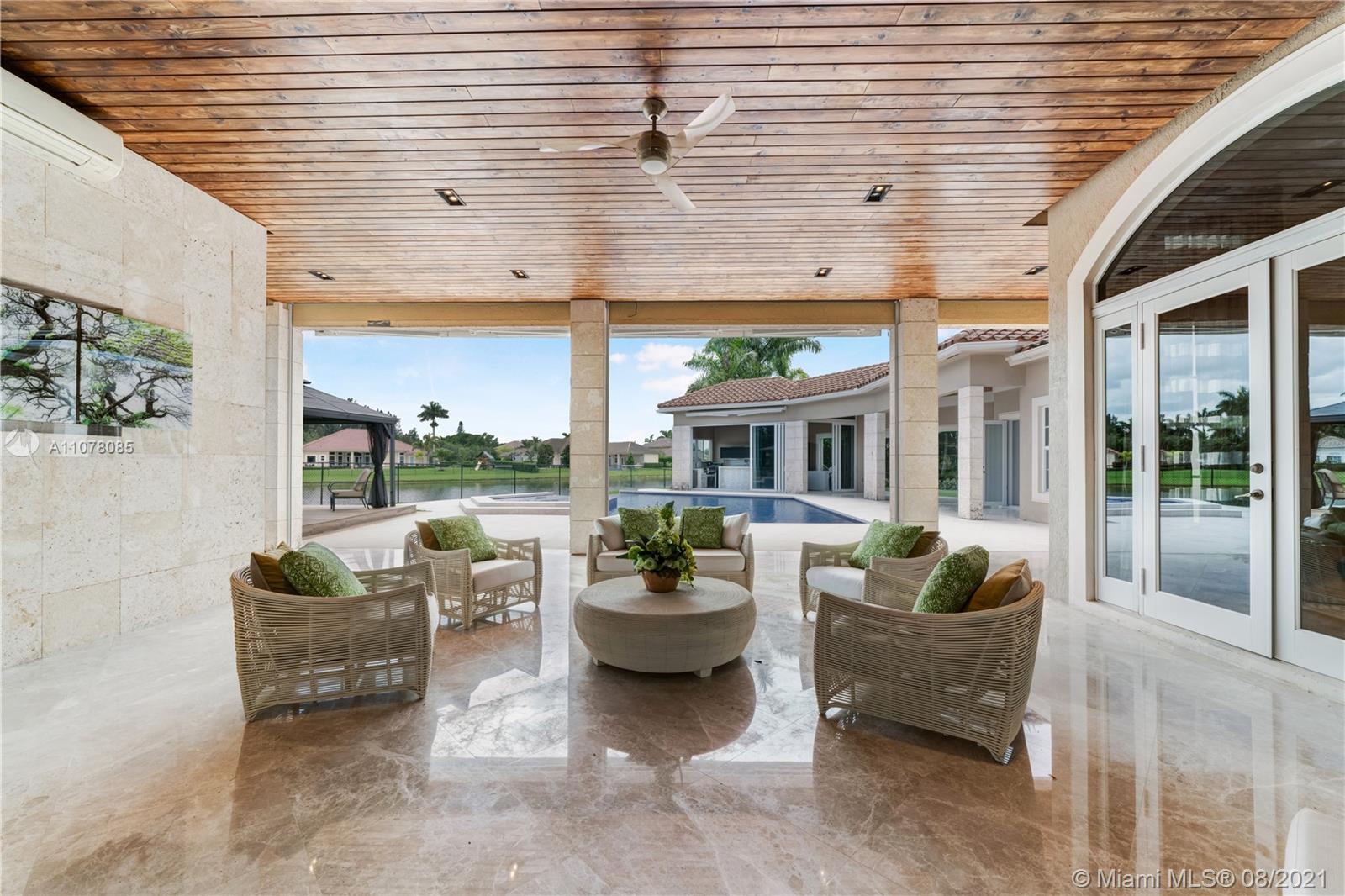 Amazing opportunity to live life in a spectacular home. Ready to move in, modern house professionally decorated and designed with 7 bedrooms, 8 full bathrooms, 1 half bathroom plus office. All Italian wooden doors, lamps, sofas, and Fendi rugs, surround sounds system, communication system throughout the house, alarm with face recognition system, and movement sensors, inside and outside the house, High electric curtain system impact windows, modern Dana Armani kitchen, marble floors, marble bathrooms, Molteni Closets, swimming pool, and jacuzzi with heater and hydromassage system, retractable awnings in the pool area. The house is perfect for families who are looking for an outstanding outdoor area. Professional gazebo, wood deck, and summer kitchen area with grill.