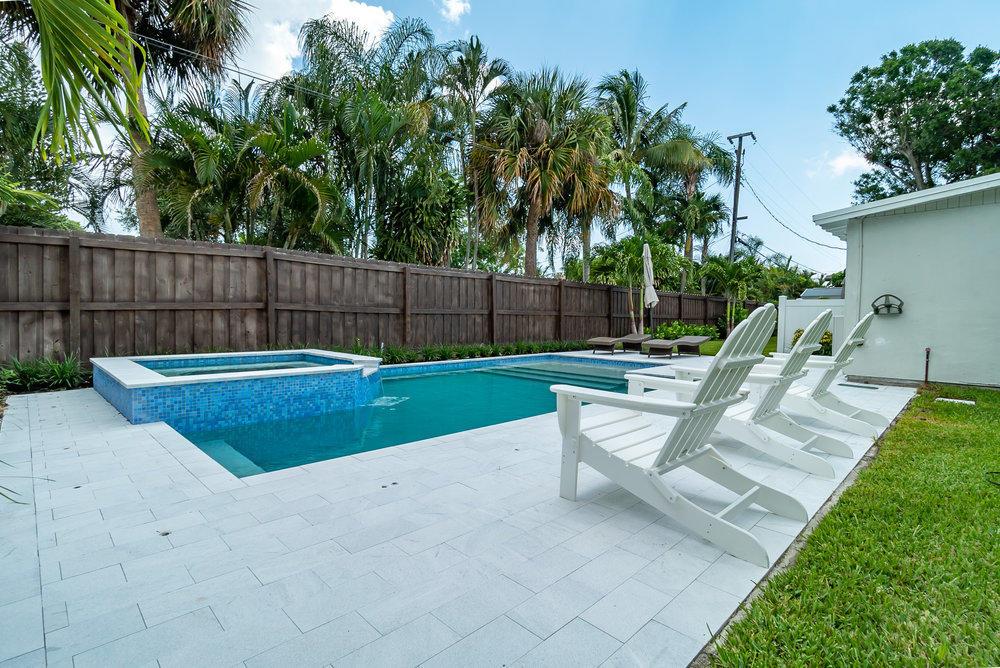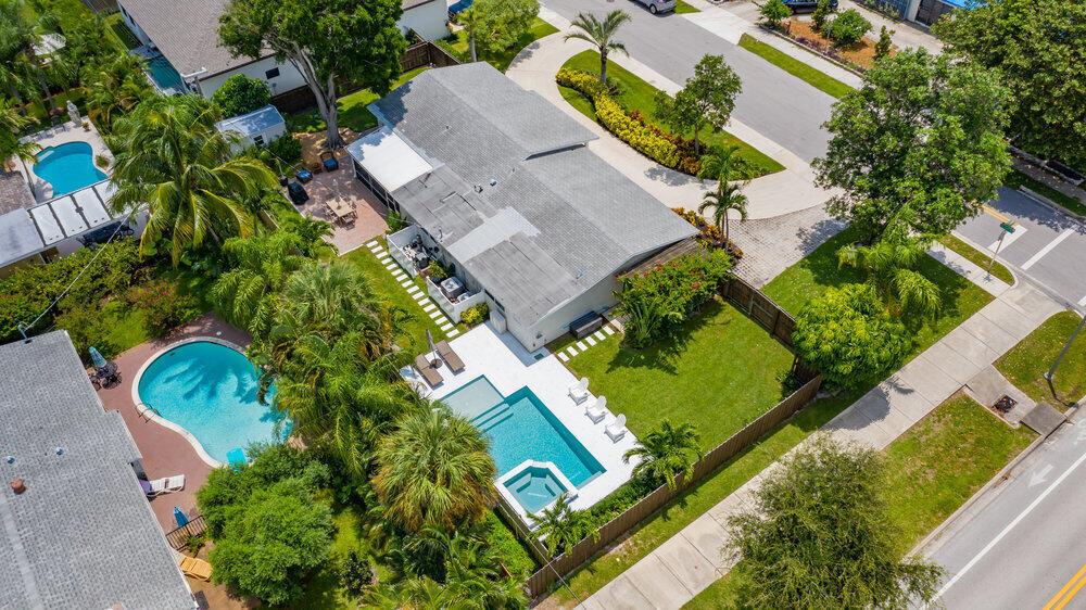 Location, Location, Location. Newly RENOVATED 3 bedroom, 2 bath POOL HOME east of Olive Avenue and 2 blocks from Flagler. Over $175,000 in upgrades in the last 3 years including NEW wood look TILE FLOORS, interior/exterior paint, electrical panel, SCREENED PATIO, hurricane impact windows, POOL AND SPA, Bathrooms AND Kitchen.This home has it all with a FULL KITCHEN RENOVATION that includes new cabinets, QUARTZ counters, tile backsplash, STAINLESS STEEL APPLIANCES, including a gas stove and pass through window to the screened patio. The 20X15 master suite is incredible with his/her walk in closets, FRENCH doors leading to a covered patio and a master bath with double vanities, stand alone tub, large shower with glass surround, water closet and huge storage closet.