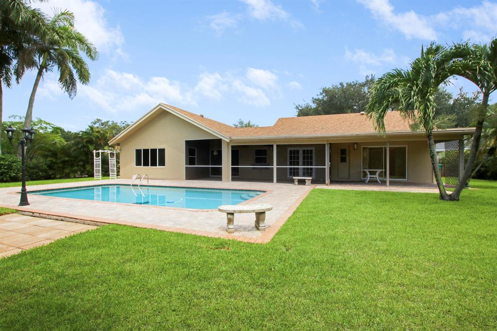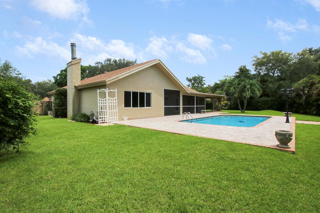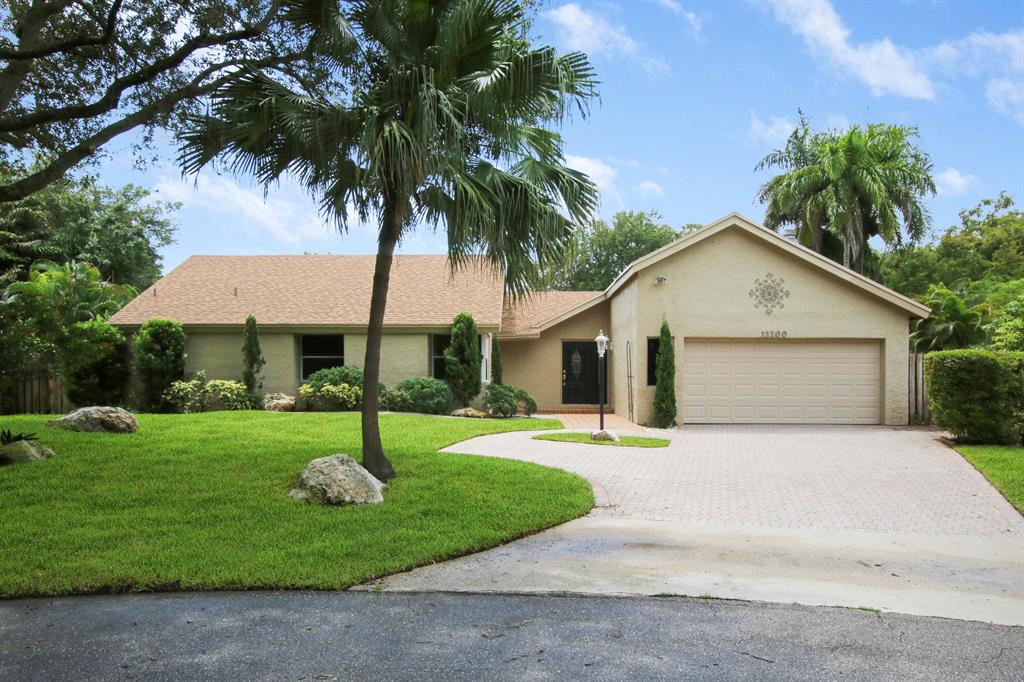 Beautiful well maintained pool home in the highly sought after community of Rock Creek. Situated on a spacious fully fenced 1/3 acre cul-de-sac lot. The home also backs up to a park-like greenbelt area that is surrounded by lush tropical landscaping (added privacy). Great home for entertaining! Huge outdoor space with cover screened patio overlooking the pool. In-ground pool with full paver decking that surrounds pool and patio areas. Main Living area has neutral 16'' ceramic tile, vaulted ceilings, high-hat lighting, and a natural brick fireplace! Great views of pool and back yard from all rooms! Spacious Kitchen area with granite countertops and French doors. Roof is only 3 years old! Great location with in the community near parks and Cooper City pool and tennis center! Low Hoa Fee