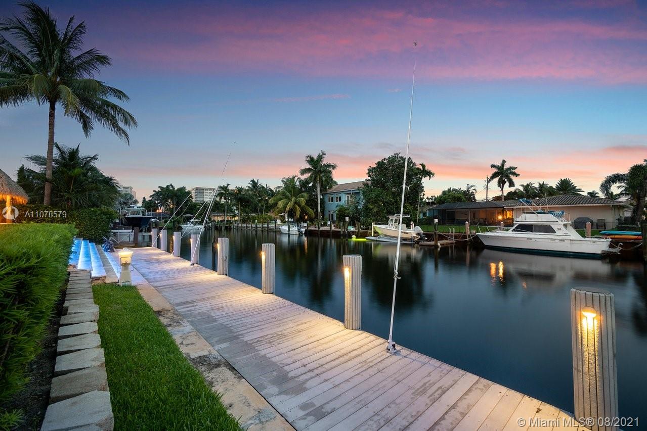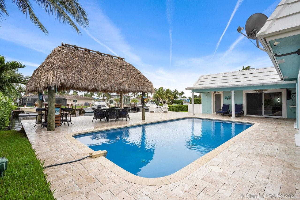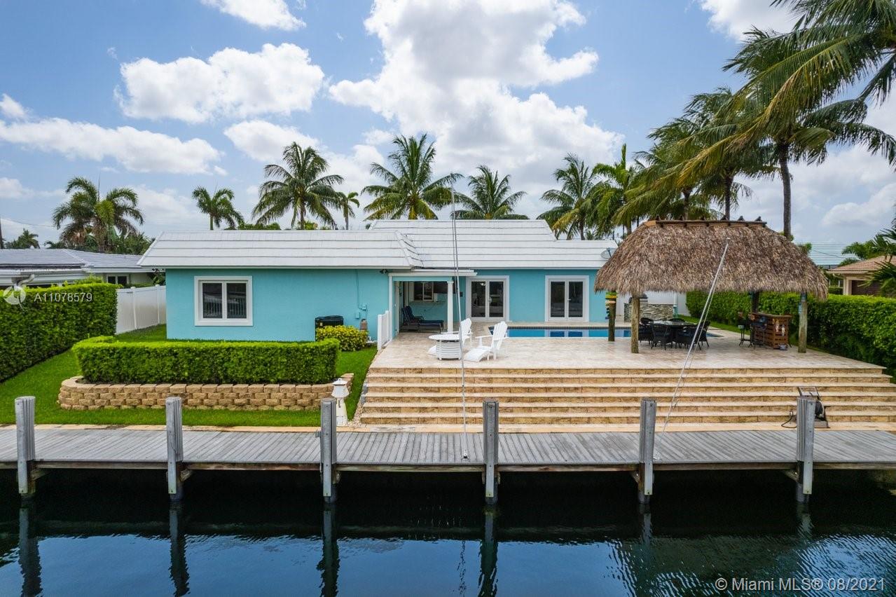 A boater's dream home with a private dock 90ft on the water and just minutes from the Hillsboro inlet and the open ocean with No Fixed Bridges. The property is Completely Remodeled and Move-in Ready. Featuring hurricane impact windows & doors, a spacious layout with wood floors throughout, beautifully upgraded kitchen and bathrooms. A work of art backyard offering a private Pool, an Outdoor Kitchen with a Tiki hut all overlooking the dock and water. Great curb appeal with tropical landscaping, circular paved driveway and a 2 car garage.