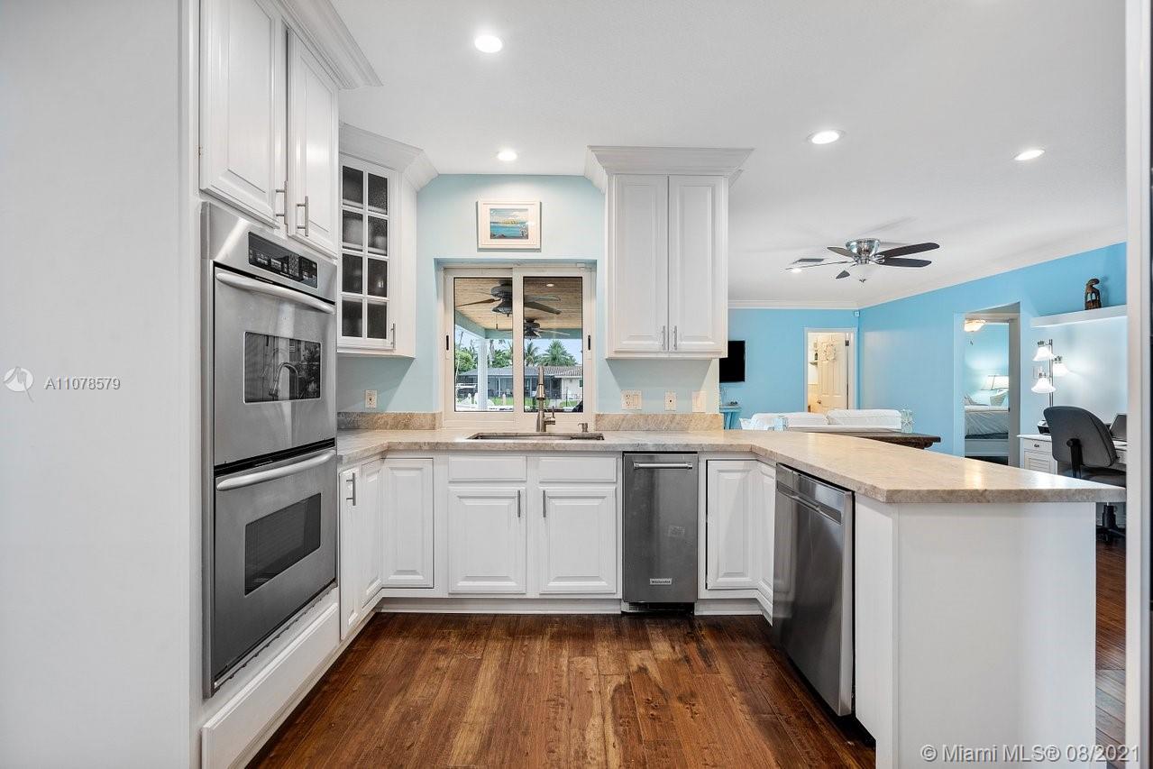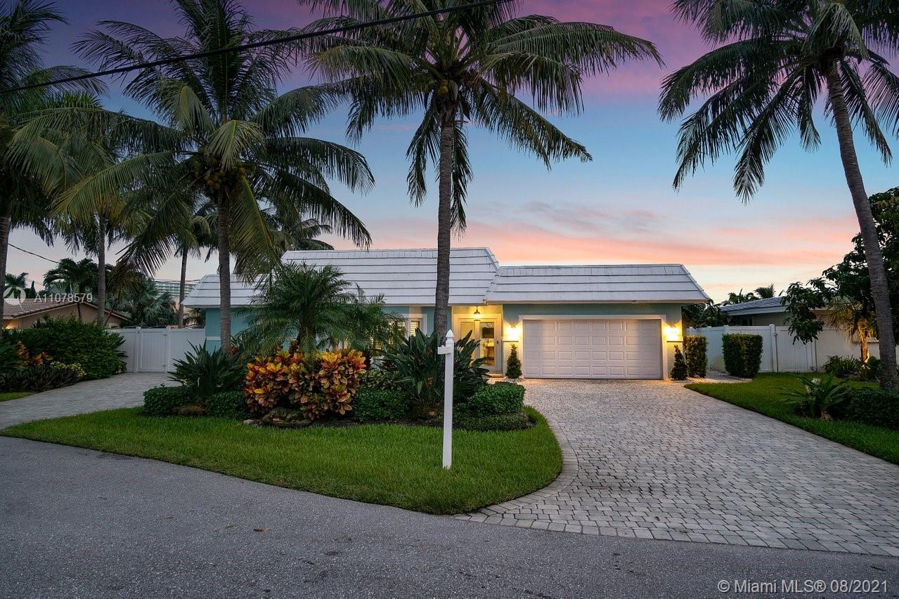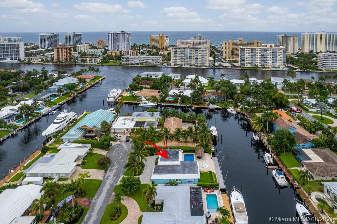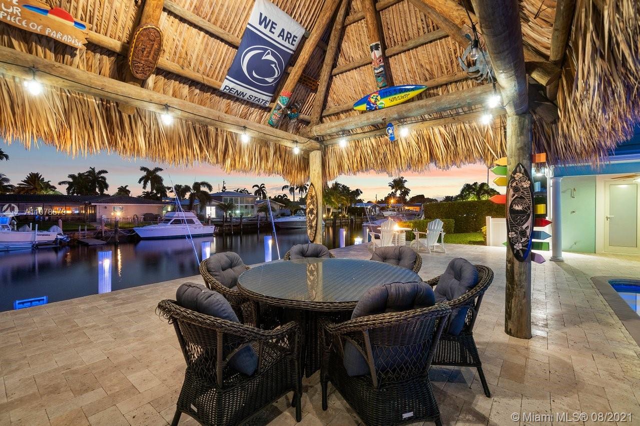 A boater's dream home with a private dock 90ft on the water and just minutes from the Hillsboro inlet and the open ocean with No Fixed Bridges. The property is Completely Remodeled and Move-in Ready. Featuring hurricane impact windows & doors, a spacious layout with wood floors throughout, beautifully upgraded kitchen and bathrooms. A work of art backyard offering a private Pool, an Outdoor Kitchen with a Tiki hut all overlooking the dock and water. Great curb appeal with tropical landscaping, circular paved driveway and a 2 car garage.