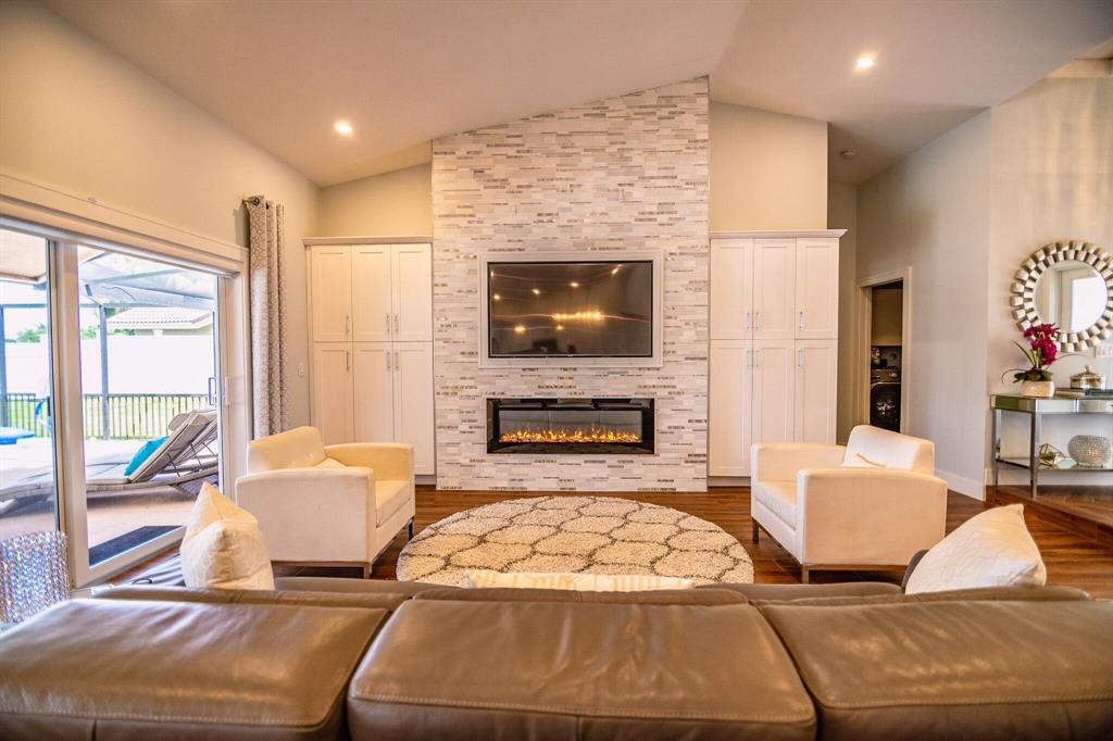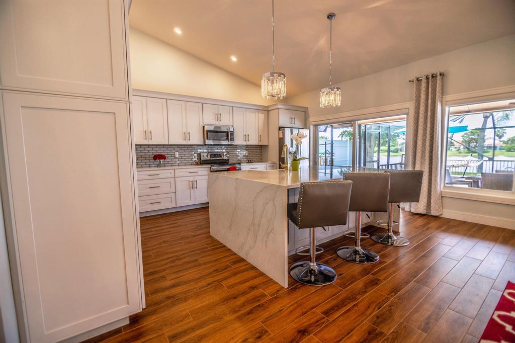 No membership, no rental restrictions, low HOA dues. Fully renovated 4-bedroom home in gated lakefront community & cul-de-sac. Property has beautiful, expansive views of lake.Dividing wall in living room has been removed creating an open floor plan. New GCI Sentinel impact windows and motorized shades. Kitchen and baths fully renovated with quartz countertops/solid wood cabinetry. Extended pull-thru driveway, fully screened-in patio, new Veranda vinyl fencing for full privacy, perfect for entertaining indoors & out!