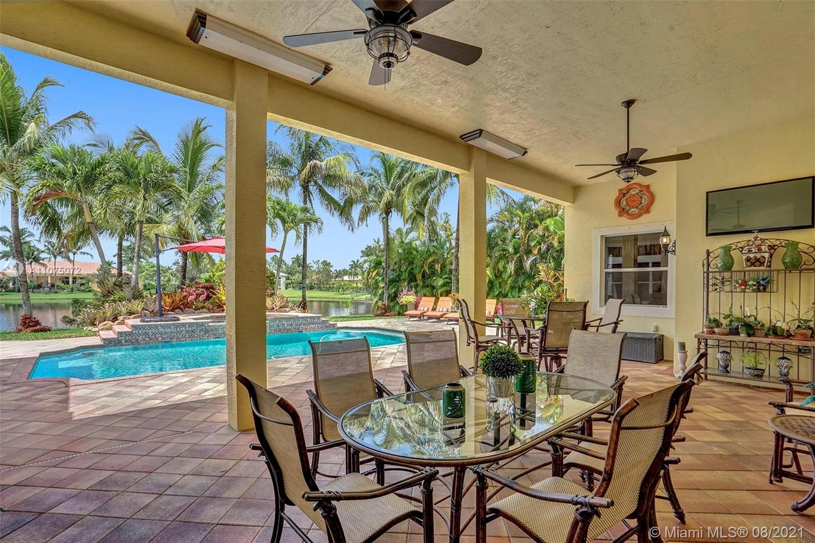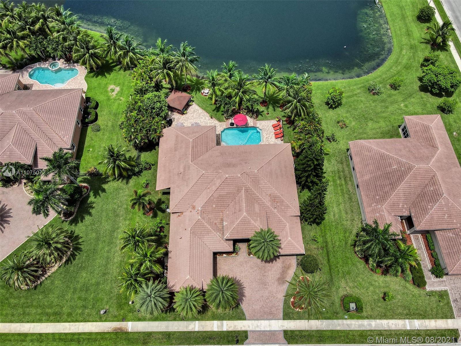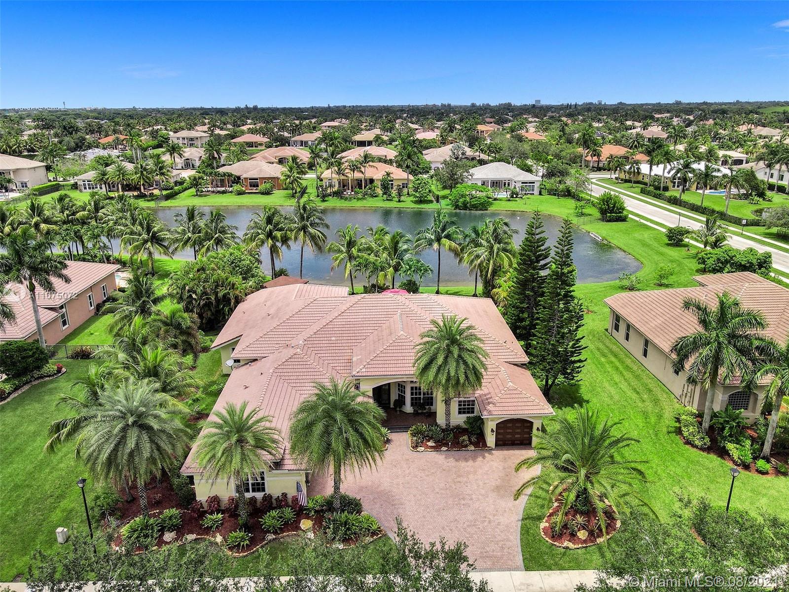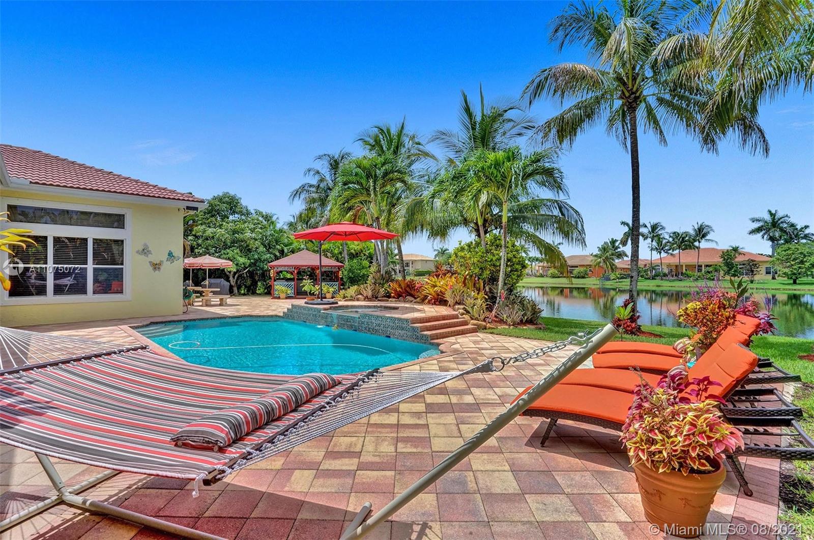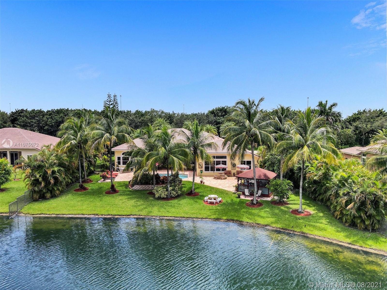 Stunning 5bed/4.5bath +den & bonus room w/3 car garage (largest model) in Riverstone on a builder's acre. Consider this hidden gem w/privacy in the front & back the perfect place to call home. Features high volume celling, formal dining, 3 bedroom split plan w/large master suite with his/her bathrooms & closets, large kitchen, S.S. appliances, wood cabinetry, M&S speaker system, fenced backyard, extended kitchen island overlooking the family room w/amazing outside views of your private Paradise. Family room has custom floor to ceiling wall unit & bar with plenty of cabinets made from Oak. Backyard is your little private resort with heated spa/pool, updated Gazebo, built in kitchen for any chef overlooking panoramic water views perfect for peace, relaxation & entertaining family & friends.