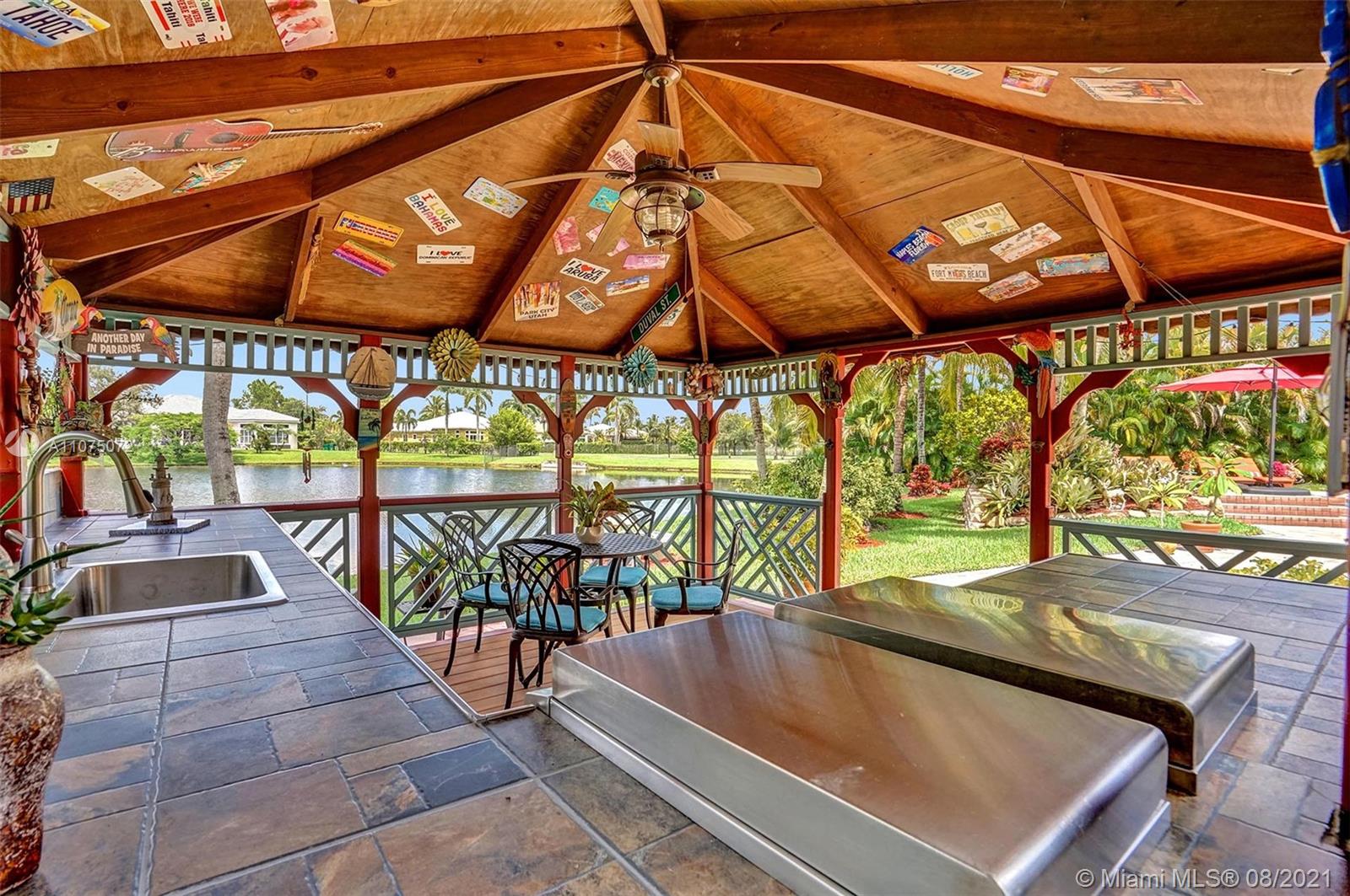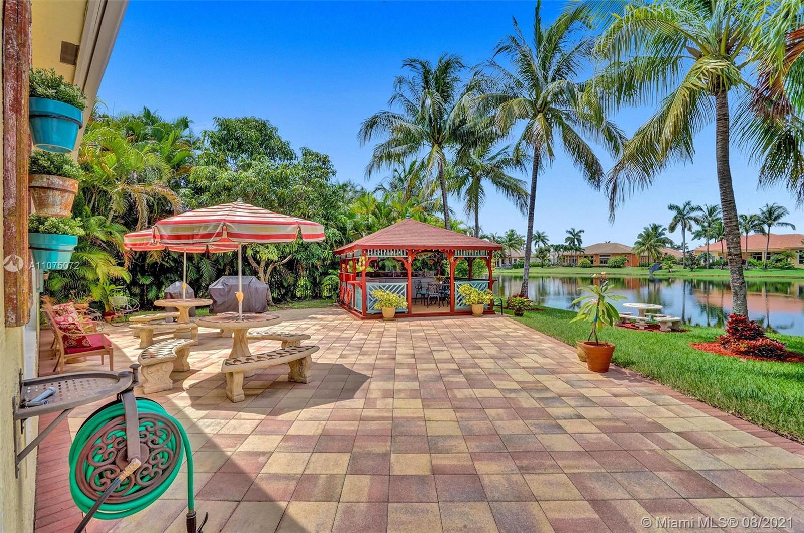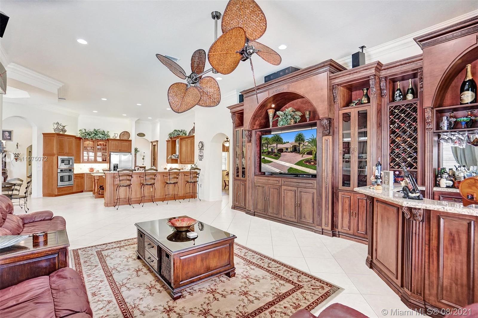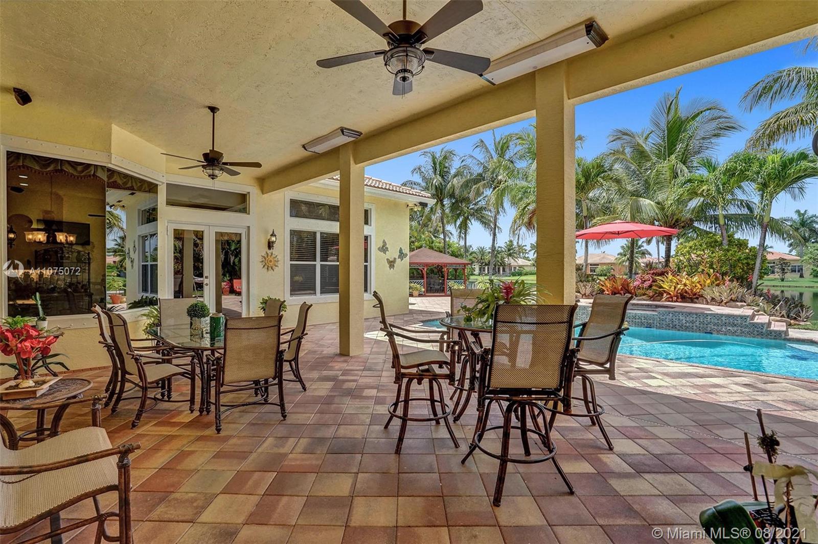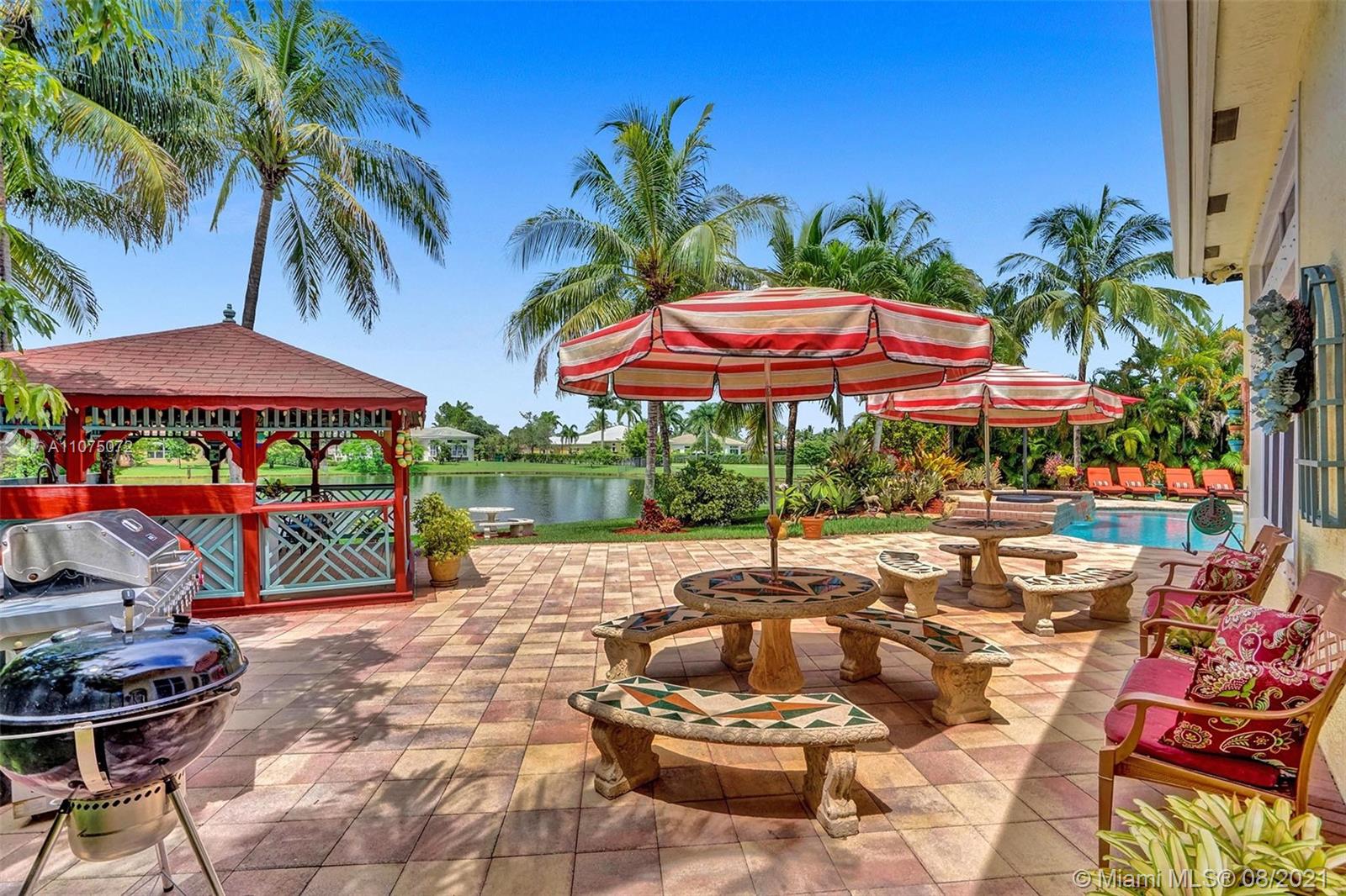 Stunning 5bed/4.5bath +den & bonus room w/3 car garage (largest model) in Riverstone on a builder's acre. Consider this hidden gem w/privacy in the front & back the perfect place to call home. Features high volume celling, formal dining, 3 bedroom split plan w/large master suite with his/her bathrooms & closets, large kitchen, S.S. appliances, wood cabinetry, M&S speaker system, fenced backyard, extended kitchen island overlooking the family room w/amazing outside views of your private Paradise. Family room has custom floor to ceiling wall unit & bar with plenty of cabinets made from Oak. Backyard is your little private resort with heated spa/pool, updated Gazebo, built in kitchen for any chef overlooking panoramic water views perfect for peace, relaxation & entertaining family & friends.