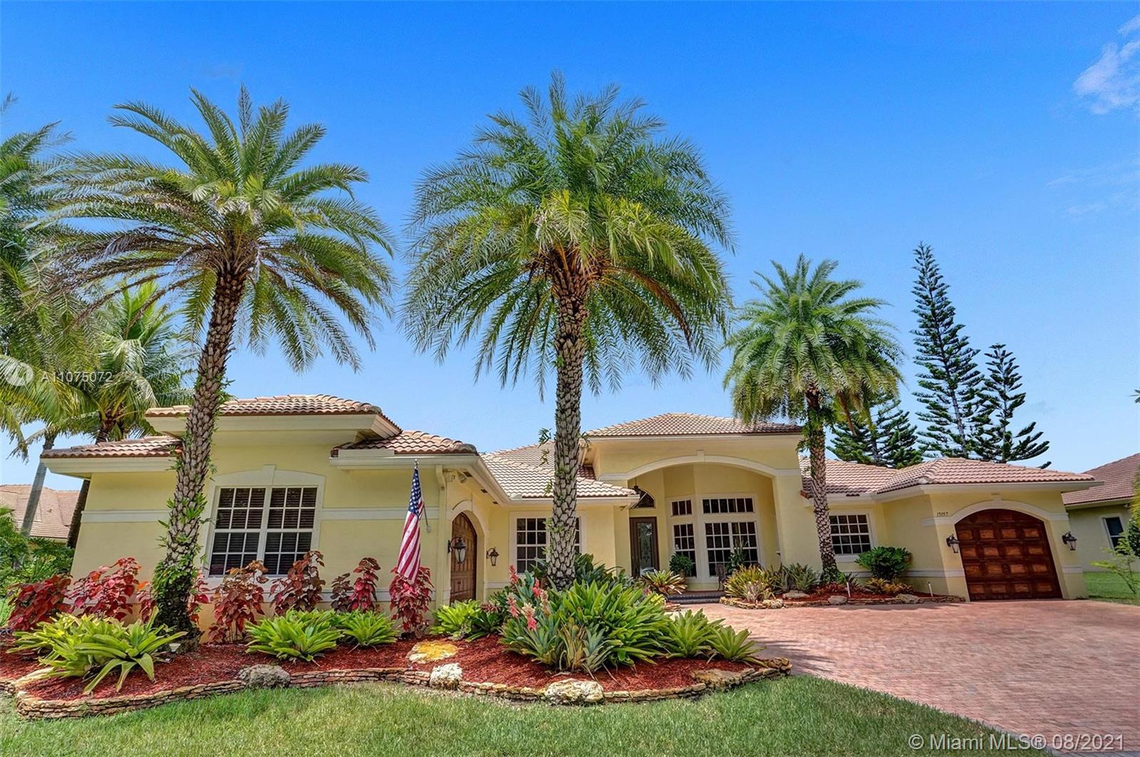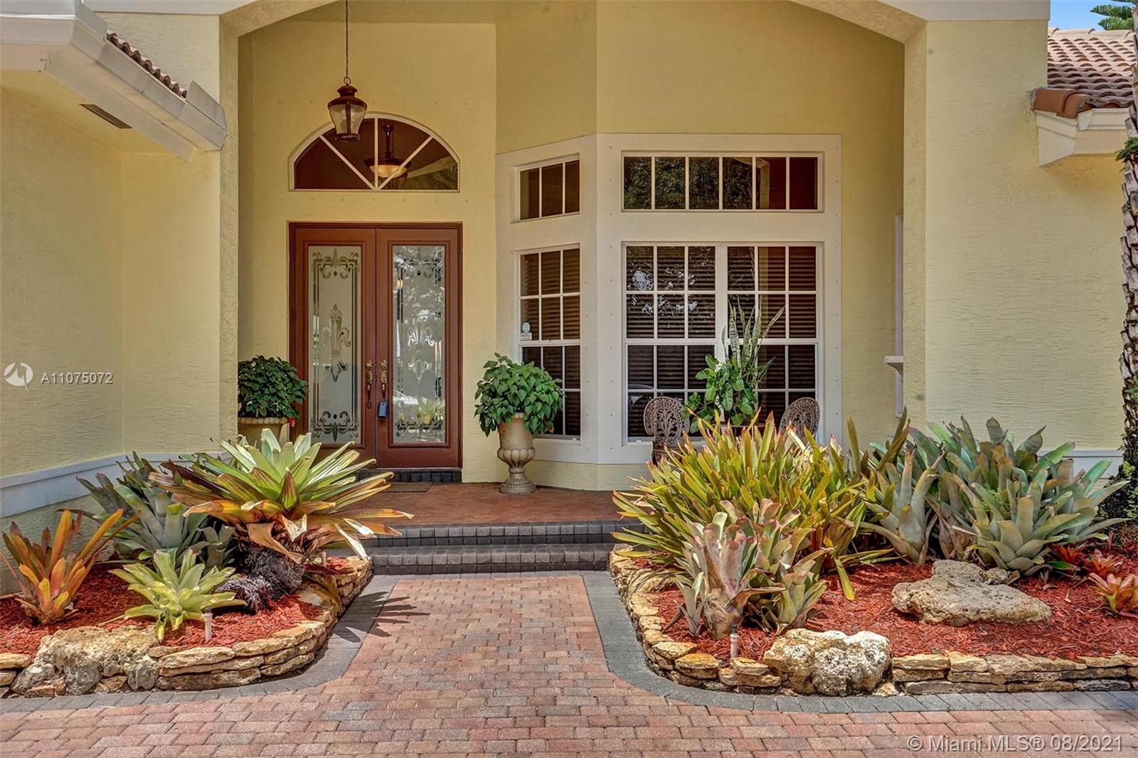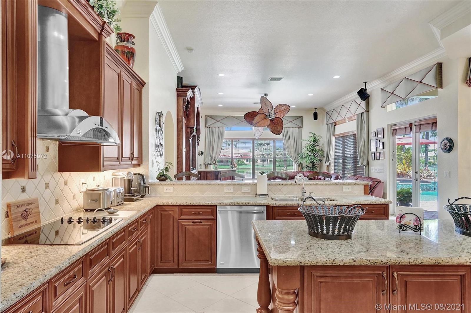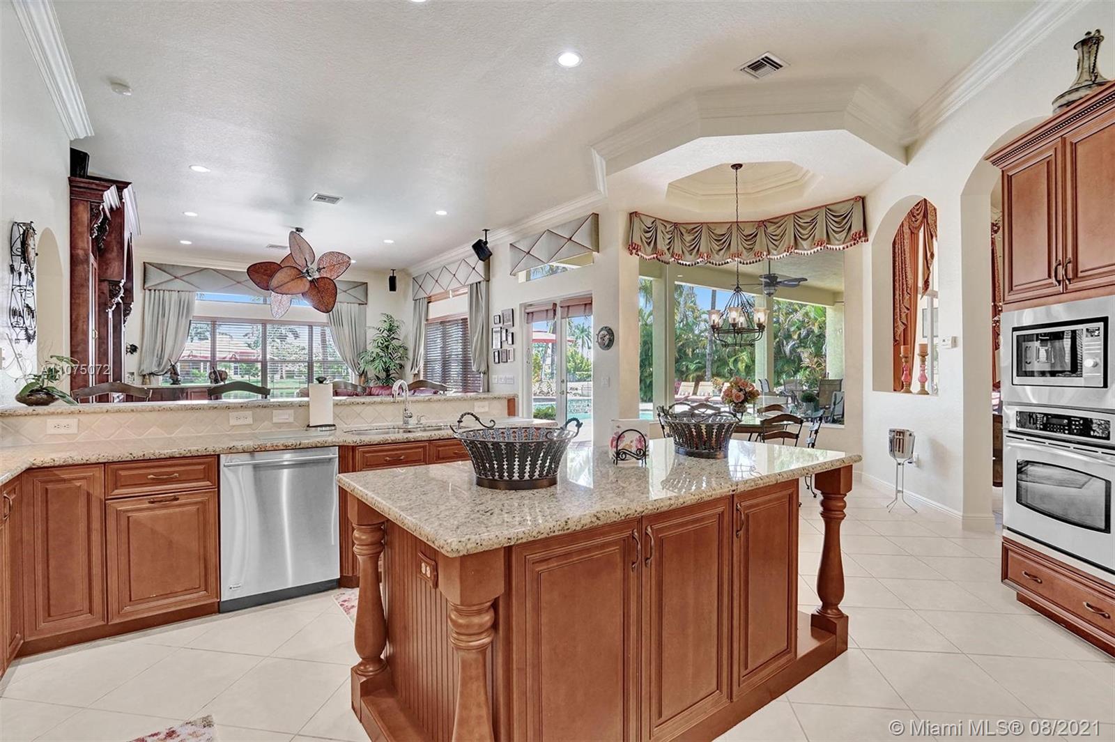 Stunning 5bed/4.5bath +den & bonus room w/3 car garage (largest model) in Riverstone on a builder's acre. Consider this hidden gem w/privacy in the front & back the perfect place to call home. Features high volume celling, formal dining, 3 bedroom split plan w/large master suite with his/her bathrooms & closets, large kitchen, S.S. appliances, wood cabinetry, M&S speaker system, fenced backyard, extended kitchen island overlooking the family room w/amazing outside views of your private Paradise. Family room has custom floor to ceiling wall unit & bar with plenty of cabinets made from Oak. Backyard is your little private resort with heated spa/pool, updated Gazebo, built in kitchen for any chef overlooking panoramic water views perfect for peace, relaxation & entertaining family & friends.