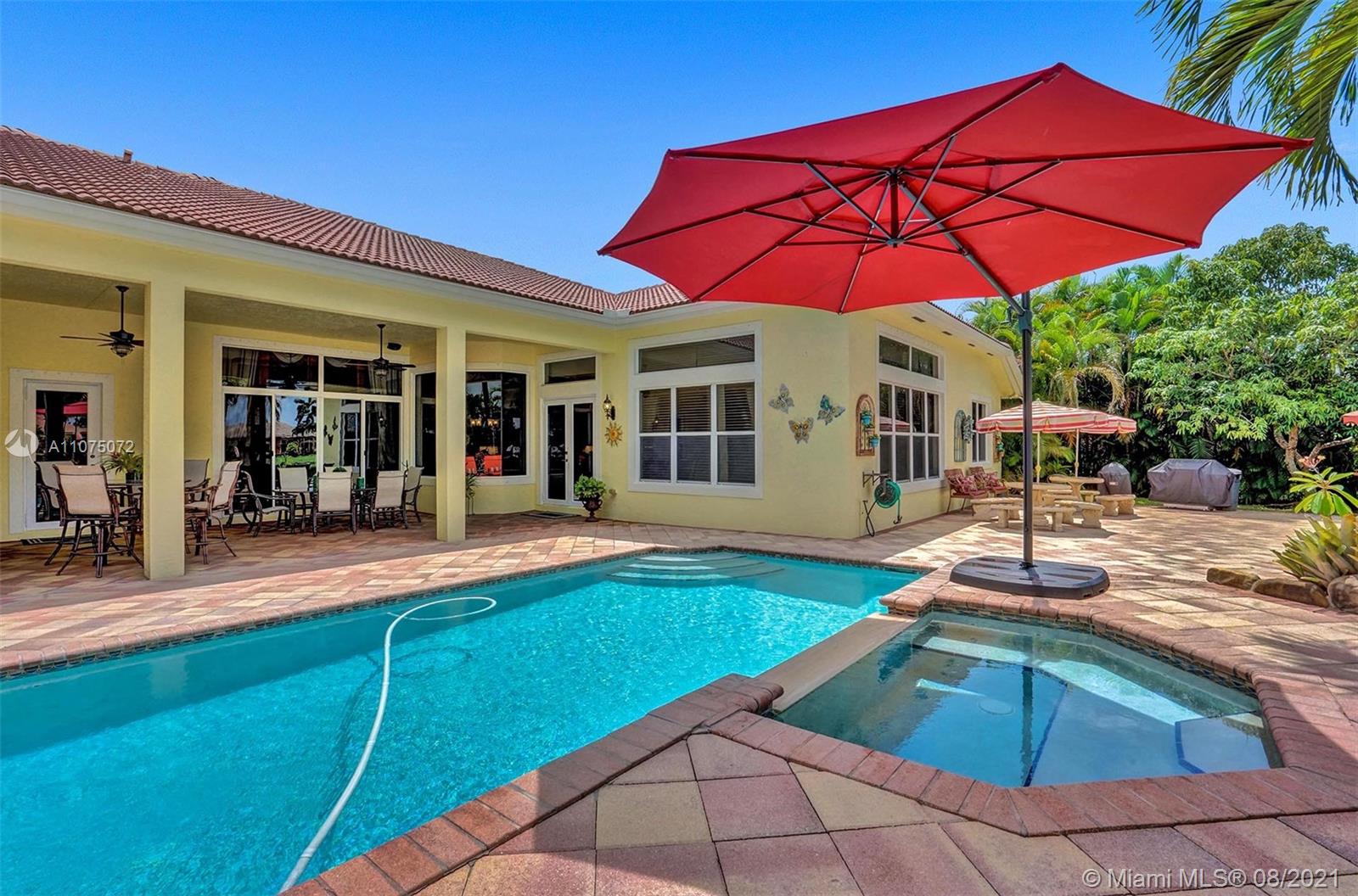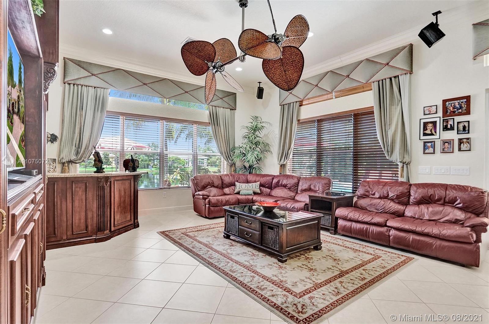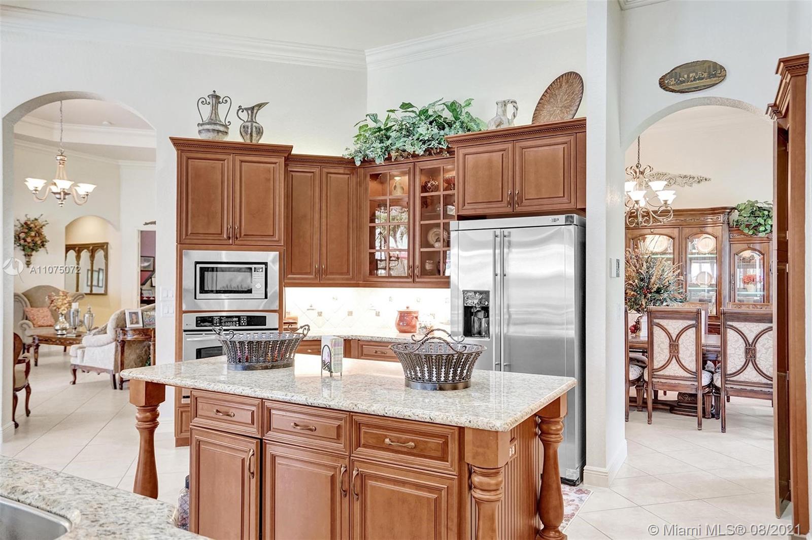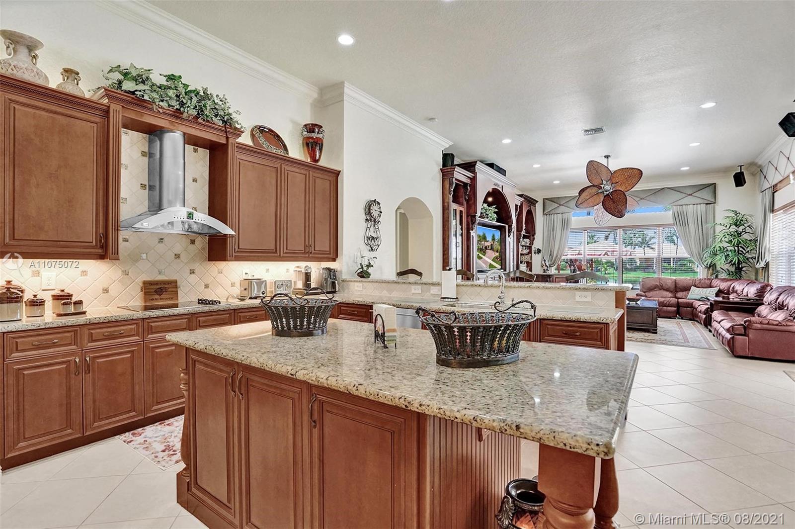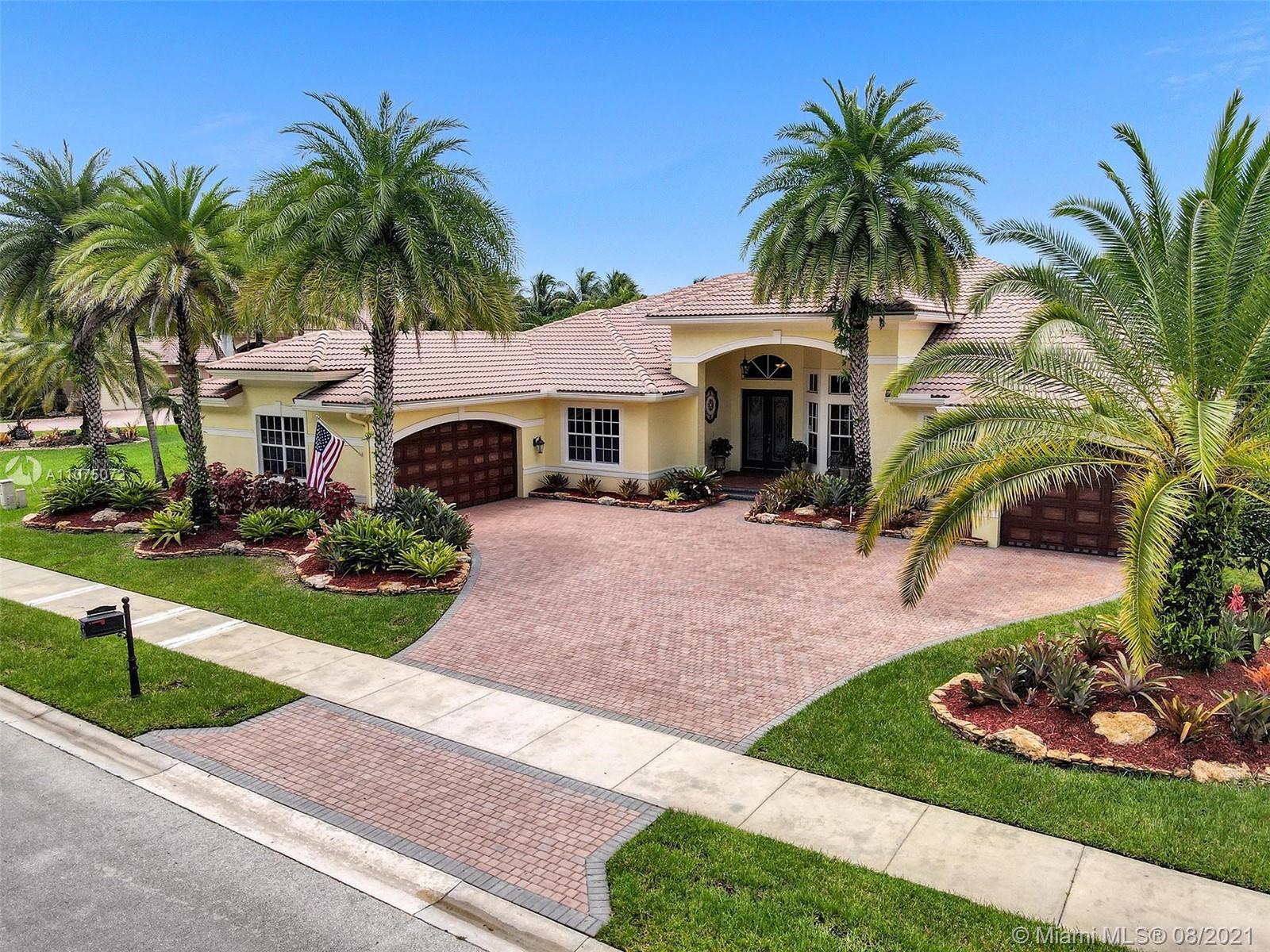 Stunning 5bed/4.5bath +den & bonus room w/3 car garage (largest model) in Riverstone on a builder's acre. Consider this hidden gem w/privacy in the front & back the perfect place to call home. Features high volume celling, formal dining, 3 bedroom split plan w/large master suite with his/her bathrooms & closets, large kitchen, S.S. appliances, wood cabinetry, M&S speaker system, fenced backyard, extended kitchen island overlooking the family room w/amazing outside views of your private Paradise. Family room has custom floor to ceiling wall unit & bar with plenty of cabinets made from Oak. Backyard is your little private resort with heated spa/pool, updated Gazebo, built in kitchen for any chef overlooking panoramic water views perfect for peace, relaxation & entertaining family & friends.