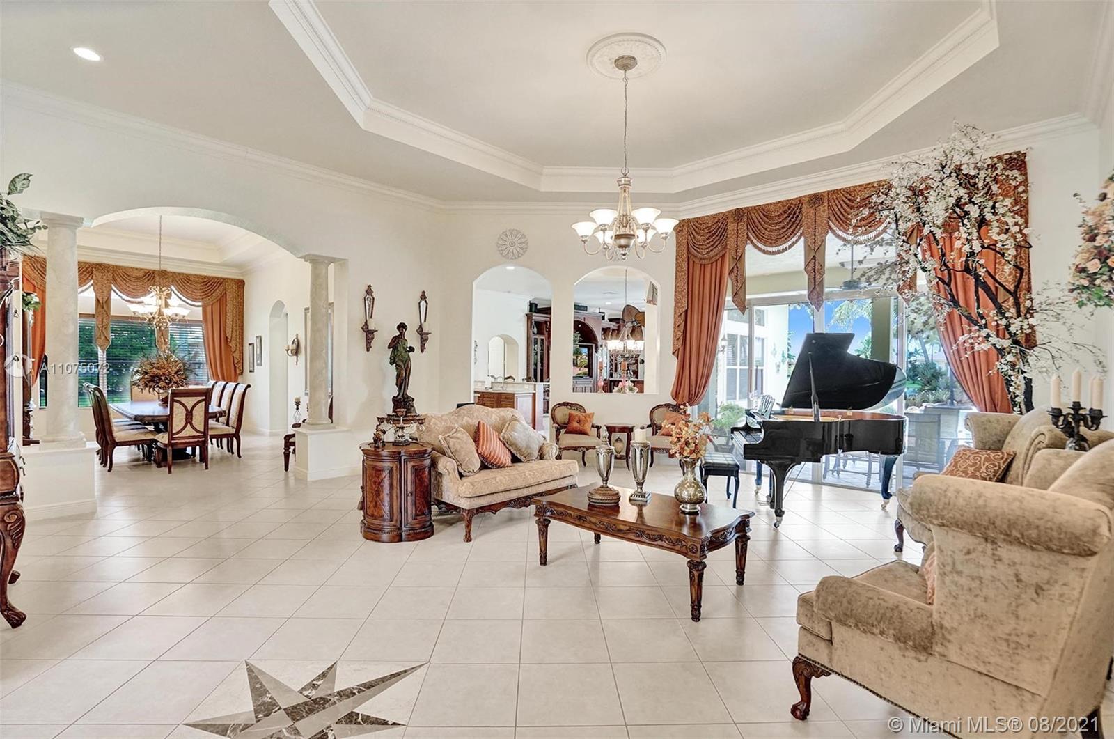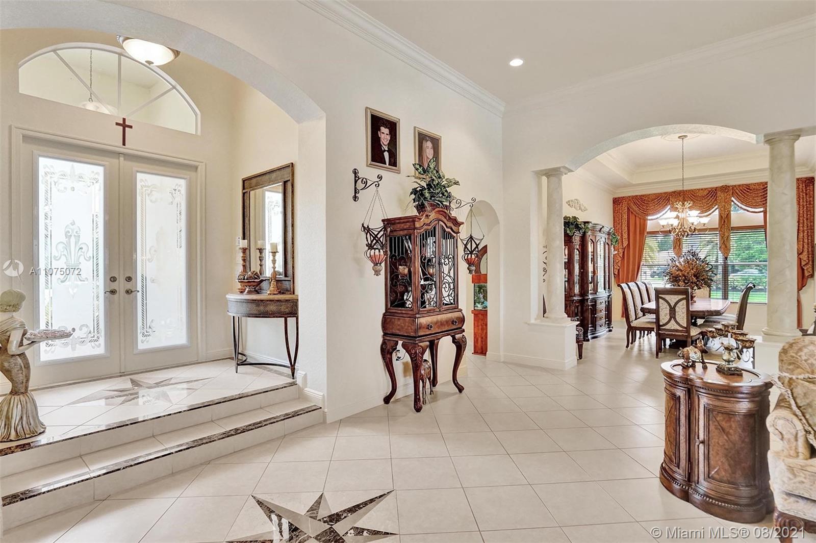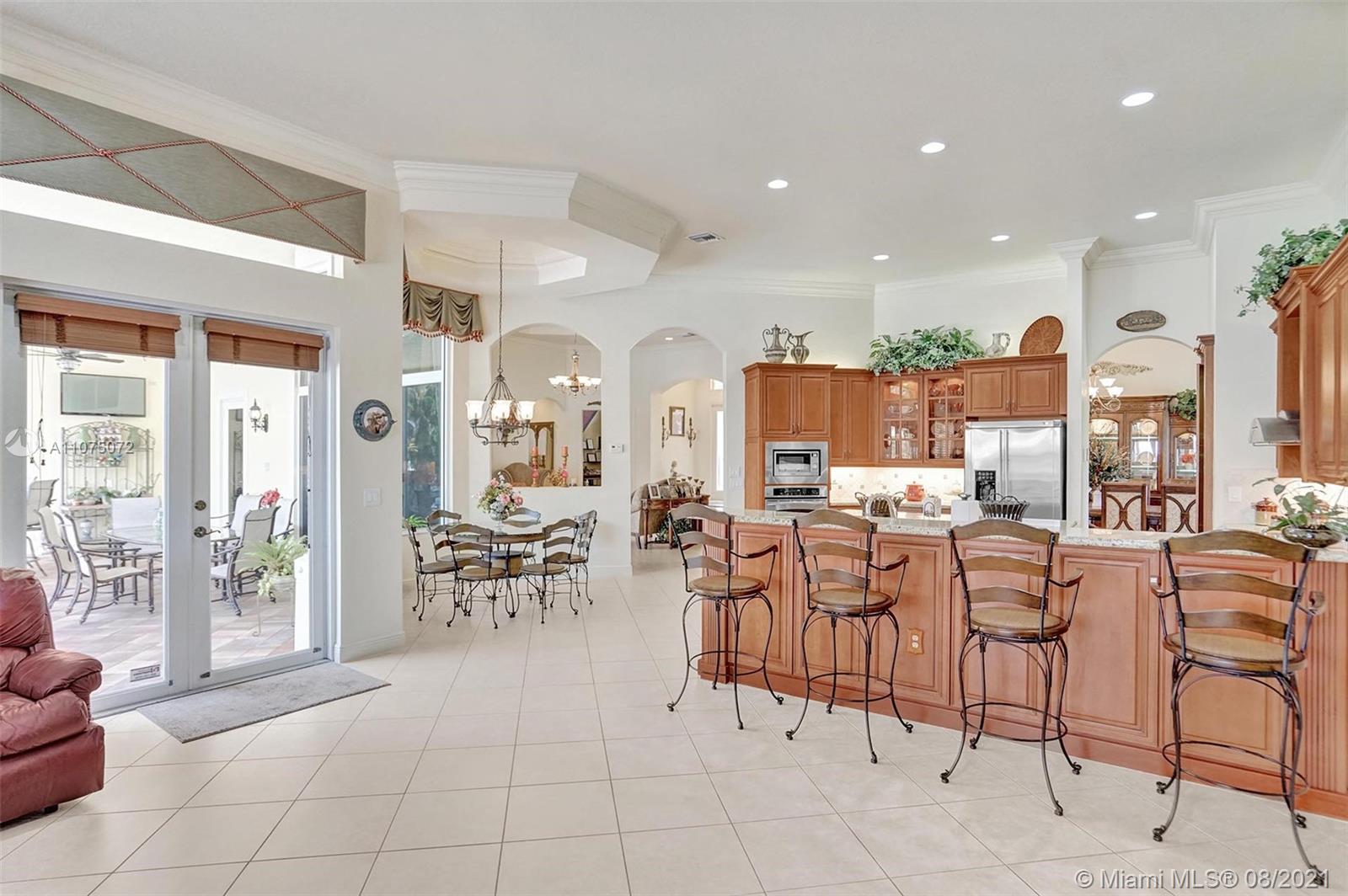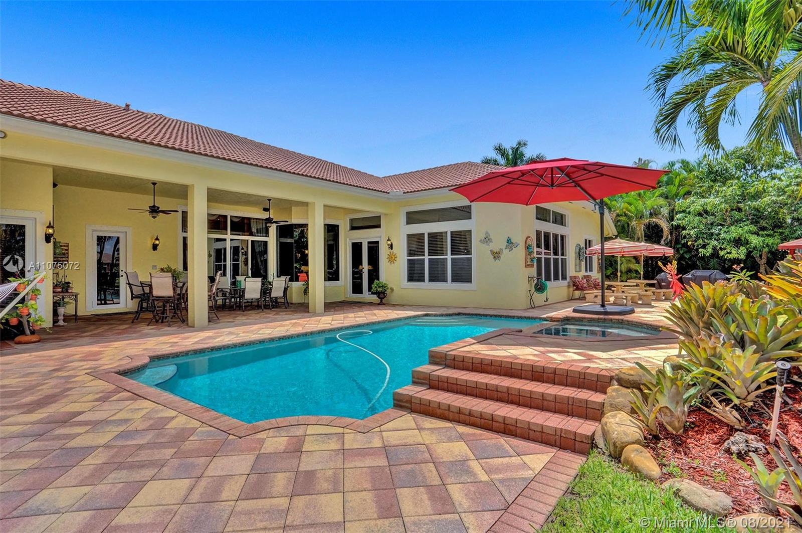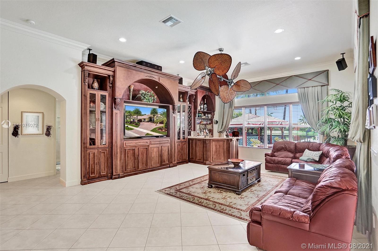 Stunning 5bed/4.5bath +den & bonus room w/3 car garage (largest model) in Riverstone on a builder's acre. Consider this hidden gem w/privacy in the front & back the perfect place to call home. Features high volume celling, formal dining, 3 bedroom split plan w/large master suite with his/her bathrooms & closets, large kitchen, S.S. appliances, wood cabinetry, M&S speaker system, fenced backyard, extended kitchen island overlooking the family room w/amazing outside views of your private Paradise. Family room has custom floor to ceiling wall unit & bar with plenty of cabinets made from Oak. Backyard is your little private resort with heated spa/pool, updated Gazebo, built in kitchen for any chef overlooking panoramic water views perfect for peace, relaxation & entertaining family & friends.